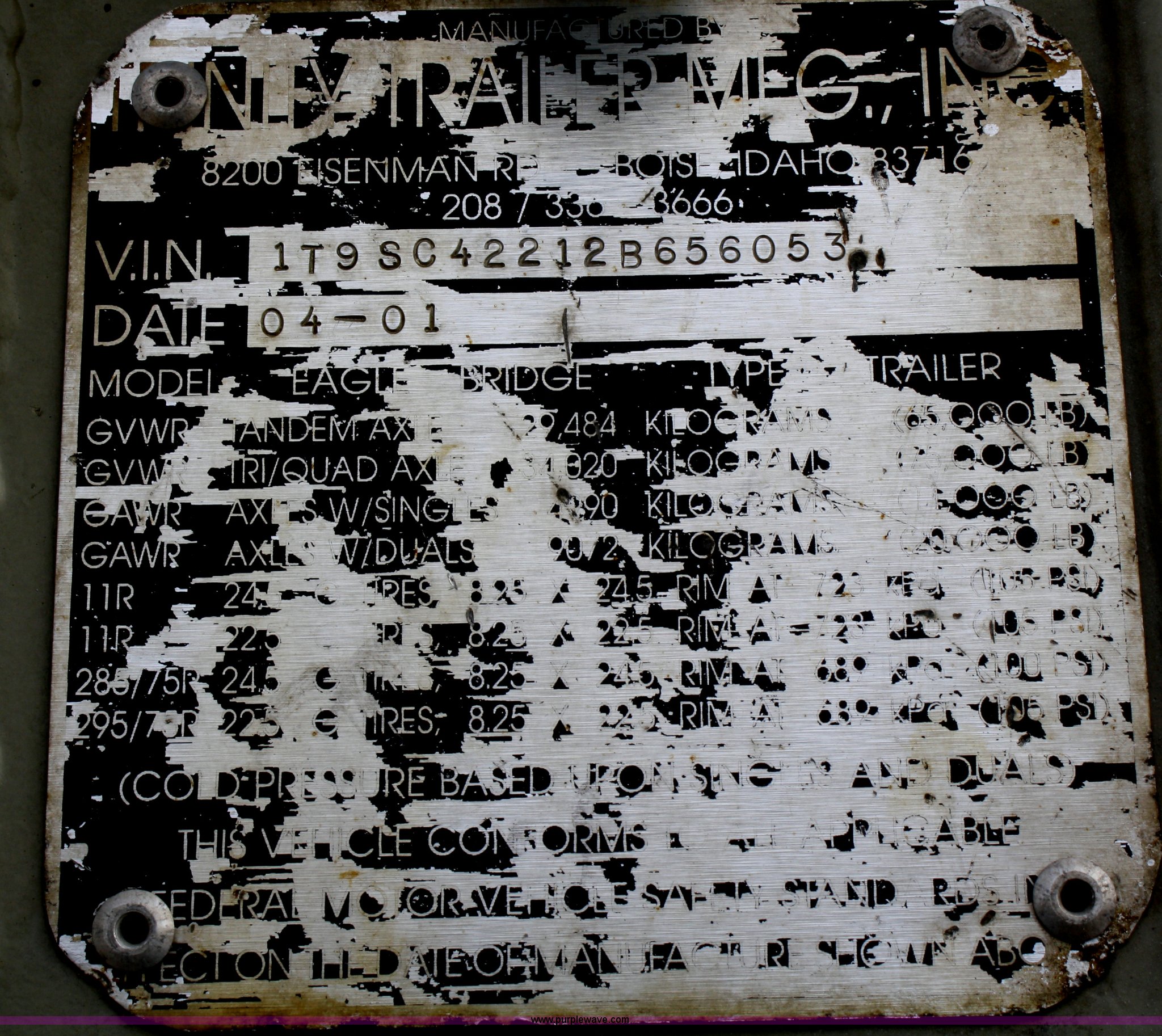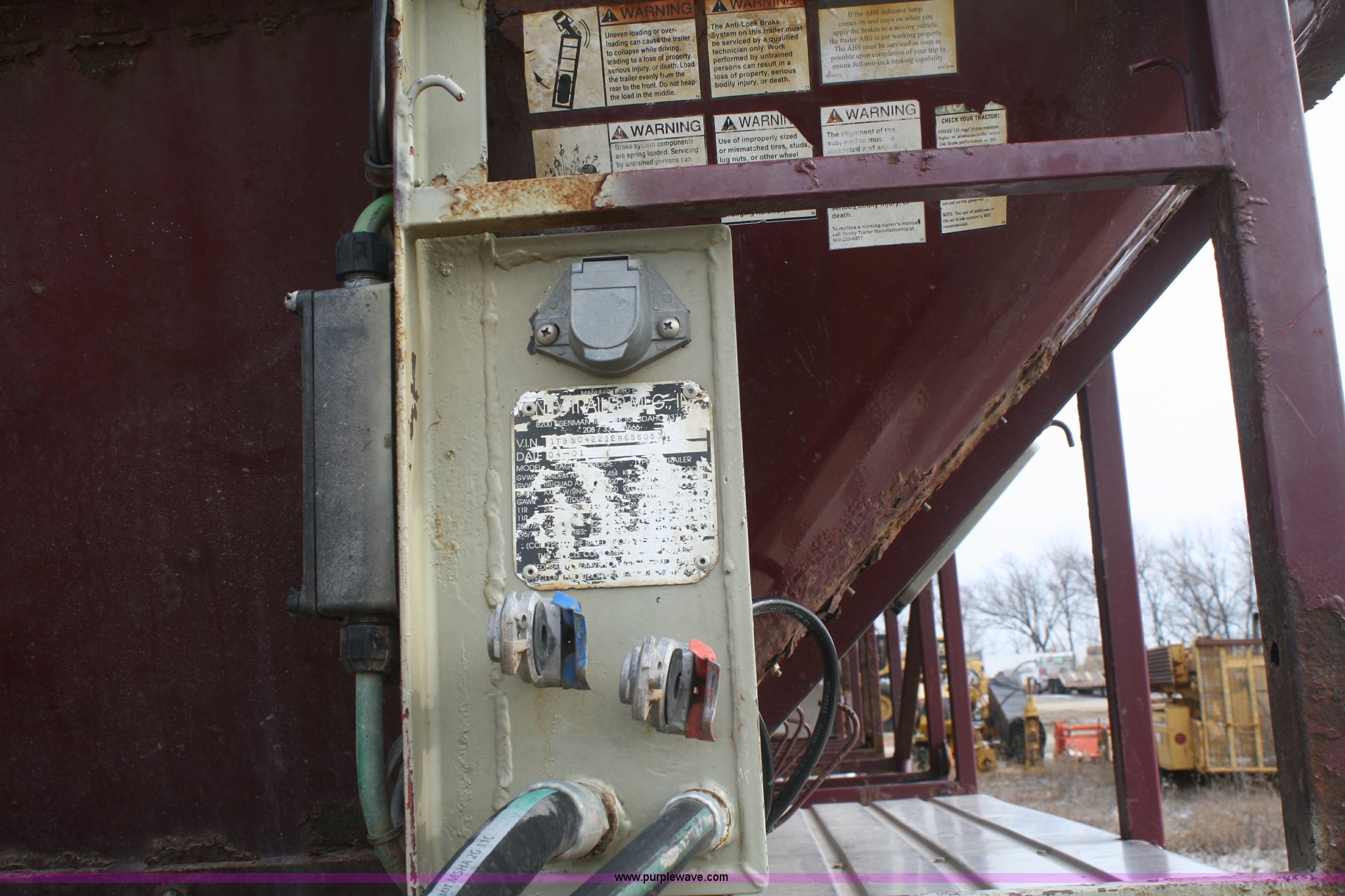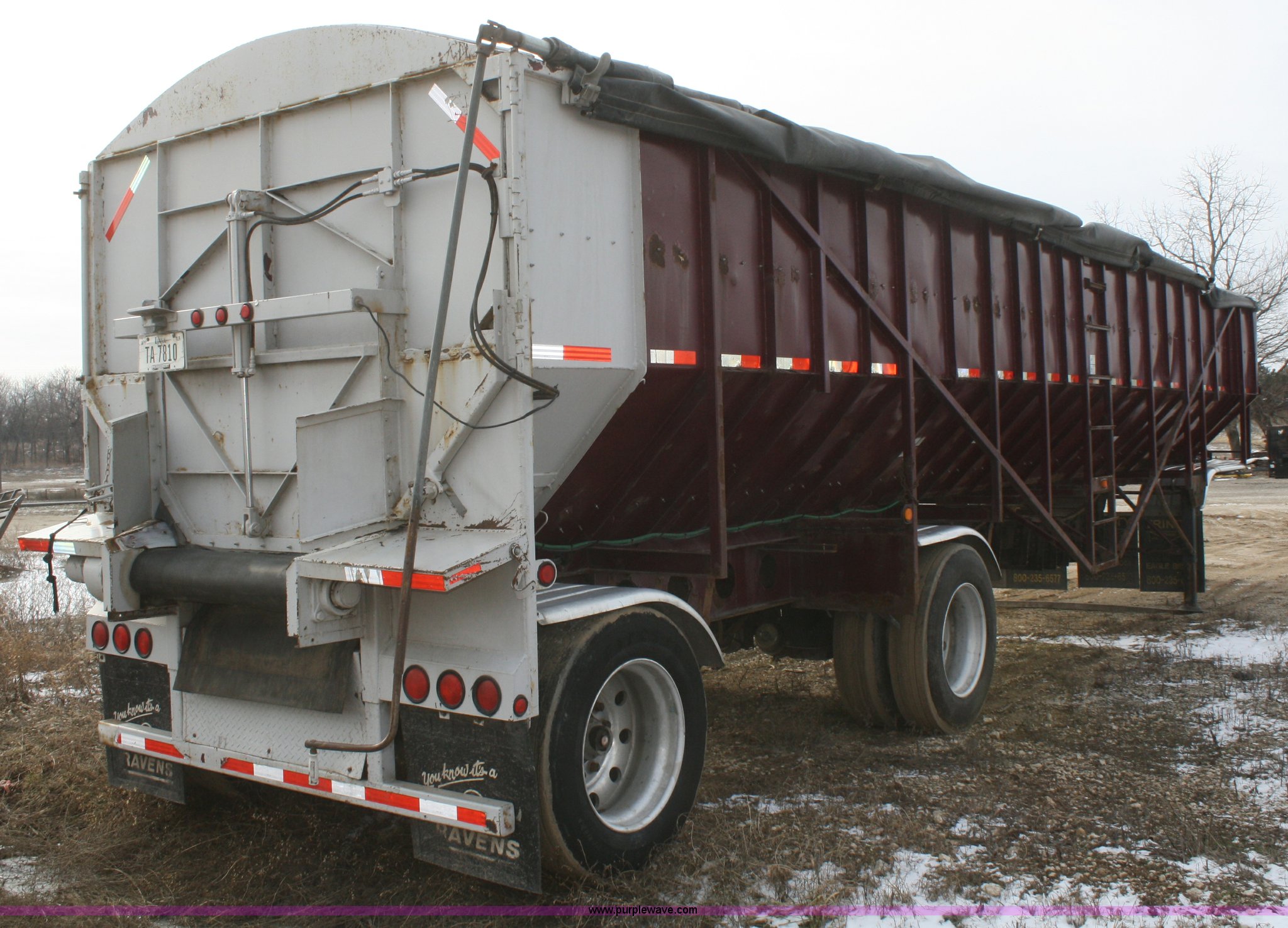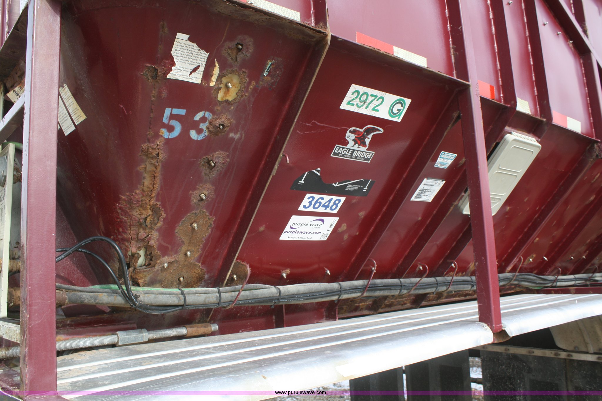 Purple Wave is selling a used Grain or Commodity Trailer in Kansas. This item is a 2002 Trinity spread axle self unloading trailer with the following: 42'L, 41"W belt, Poly bed liner, Stainless steel fenders, Air suspension, Air brakes, Aluminum wheels, 11R24.5 tires, GVWR 65,000 lbs, Rust, Tarp bow is bent, Tarp is torn