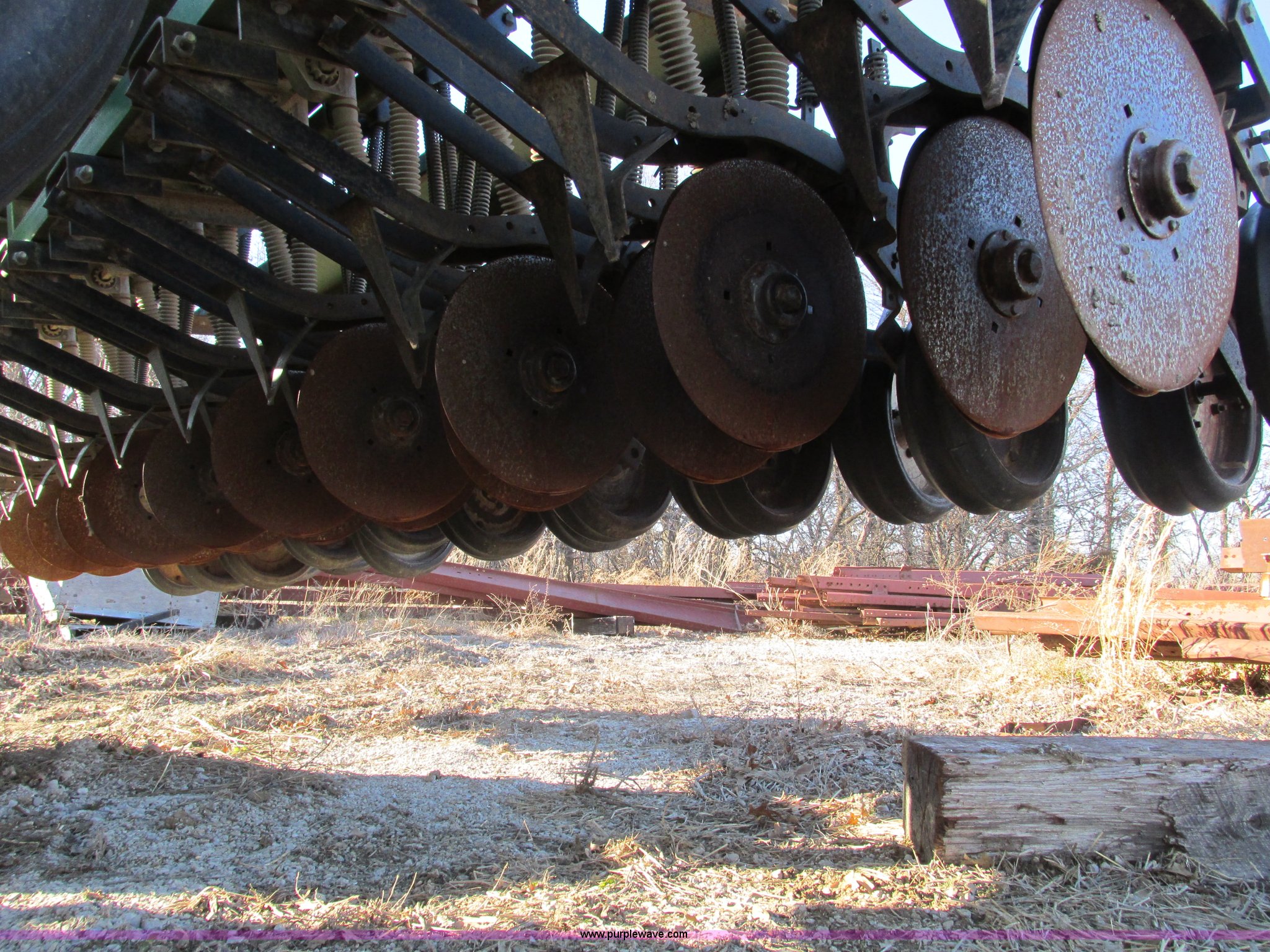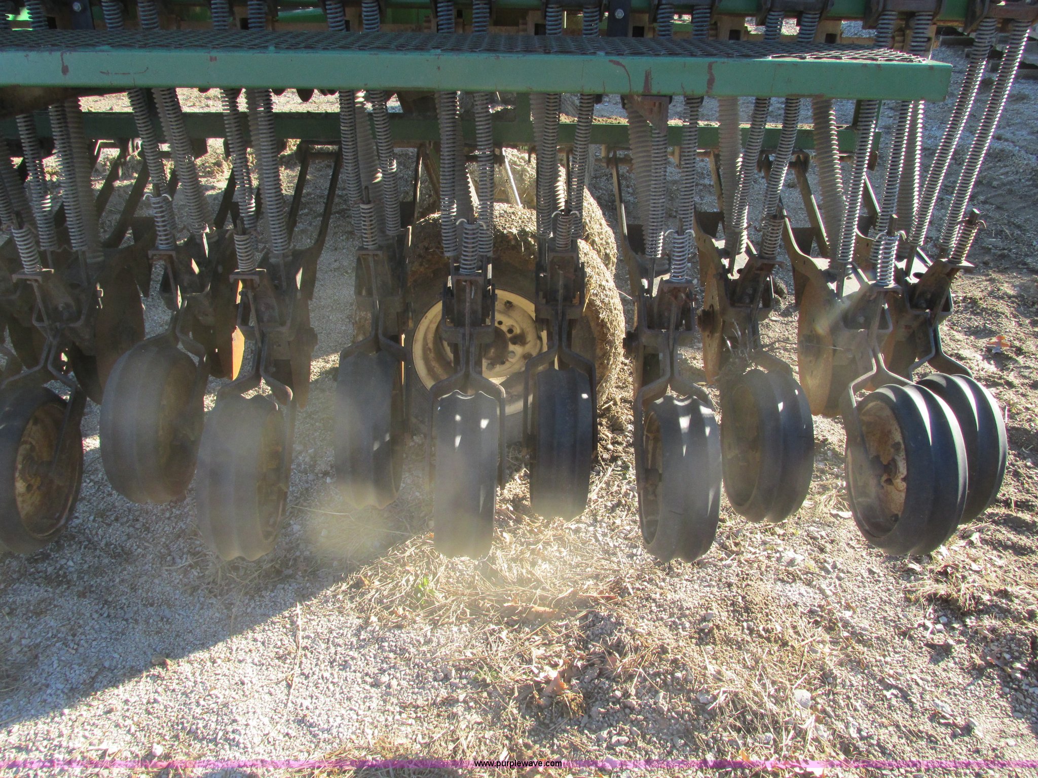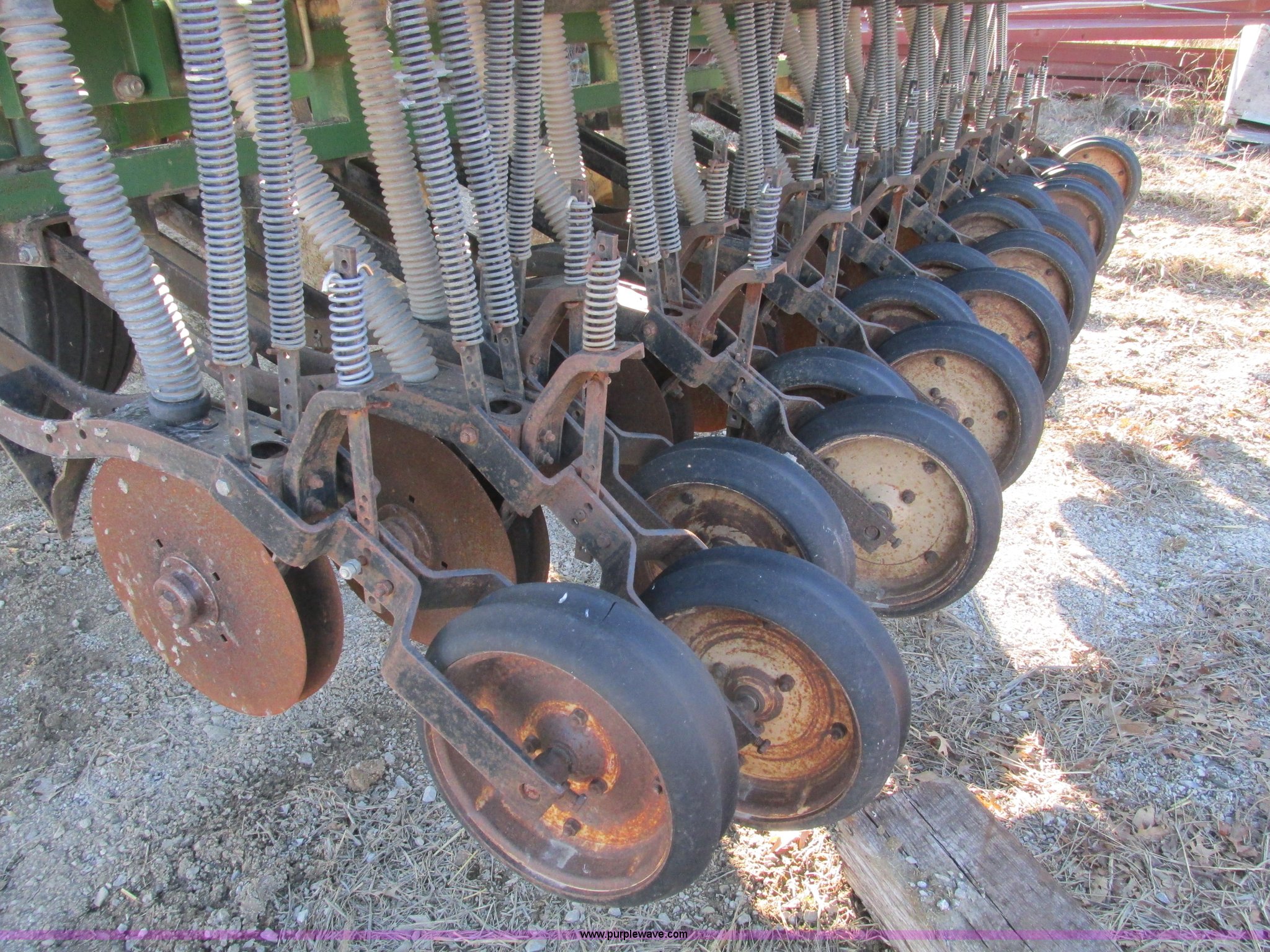 Purple Wave is selling a used Grain Drill or Seeder in Missouri. This item is a Great Plains Solid Stand 24 drill with the following: Model TS-387-582-DDF4, Manual jack, Tri-fold markers, One marker broken off, Quick connect hydraulic hose couplings, 9.5L-15 tires, Hoses show wear, Serial 1069F