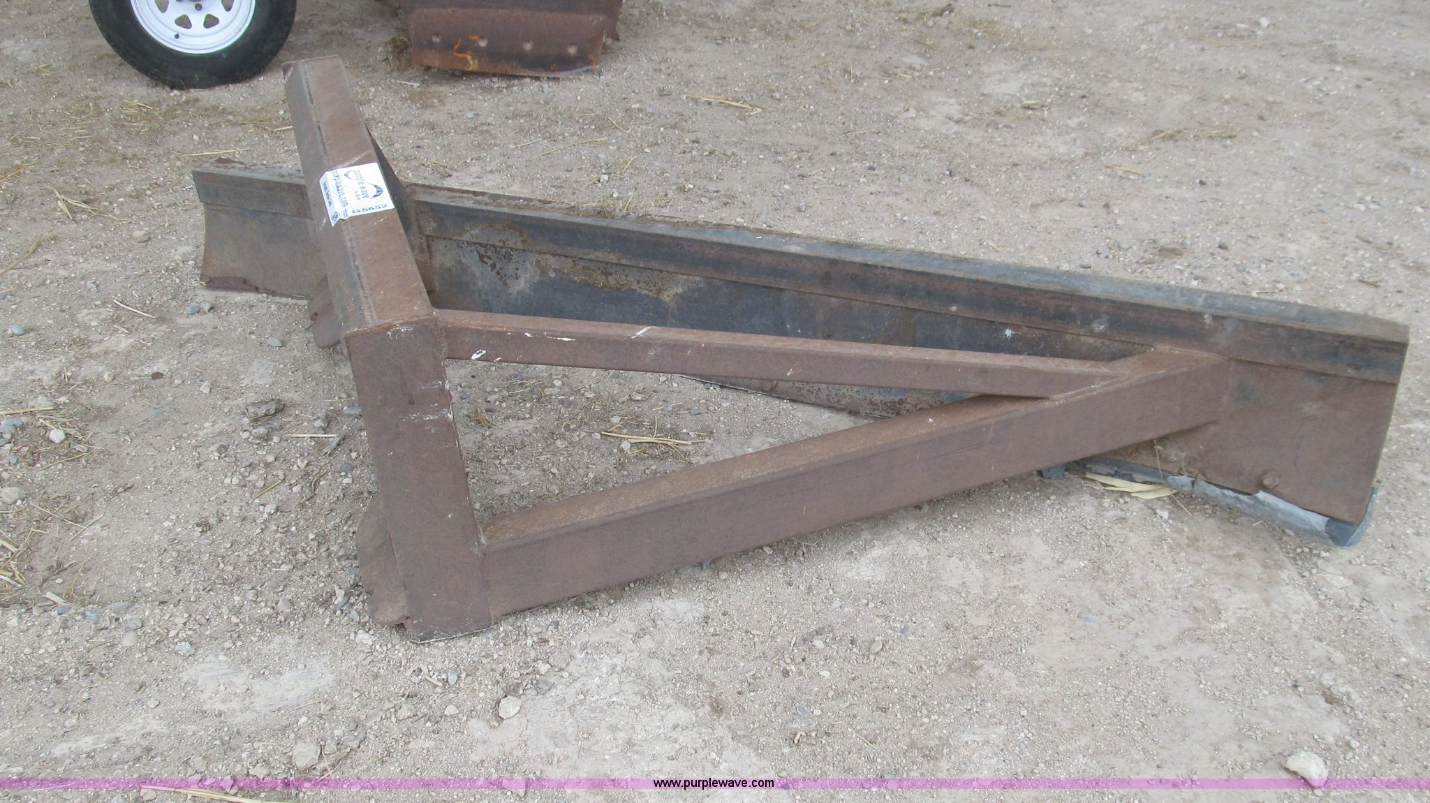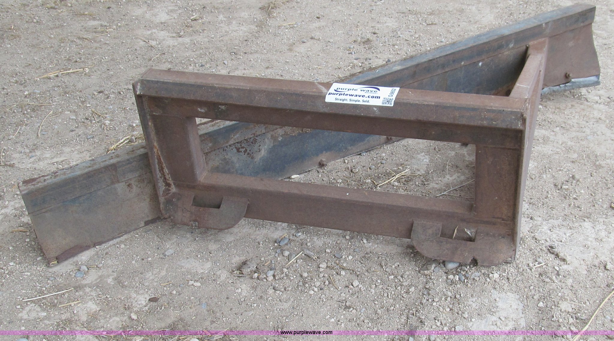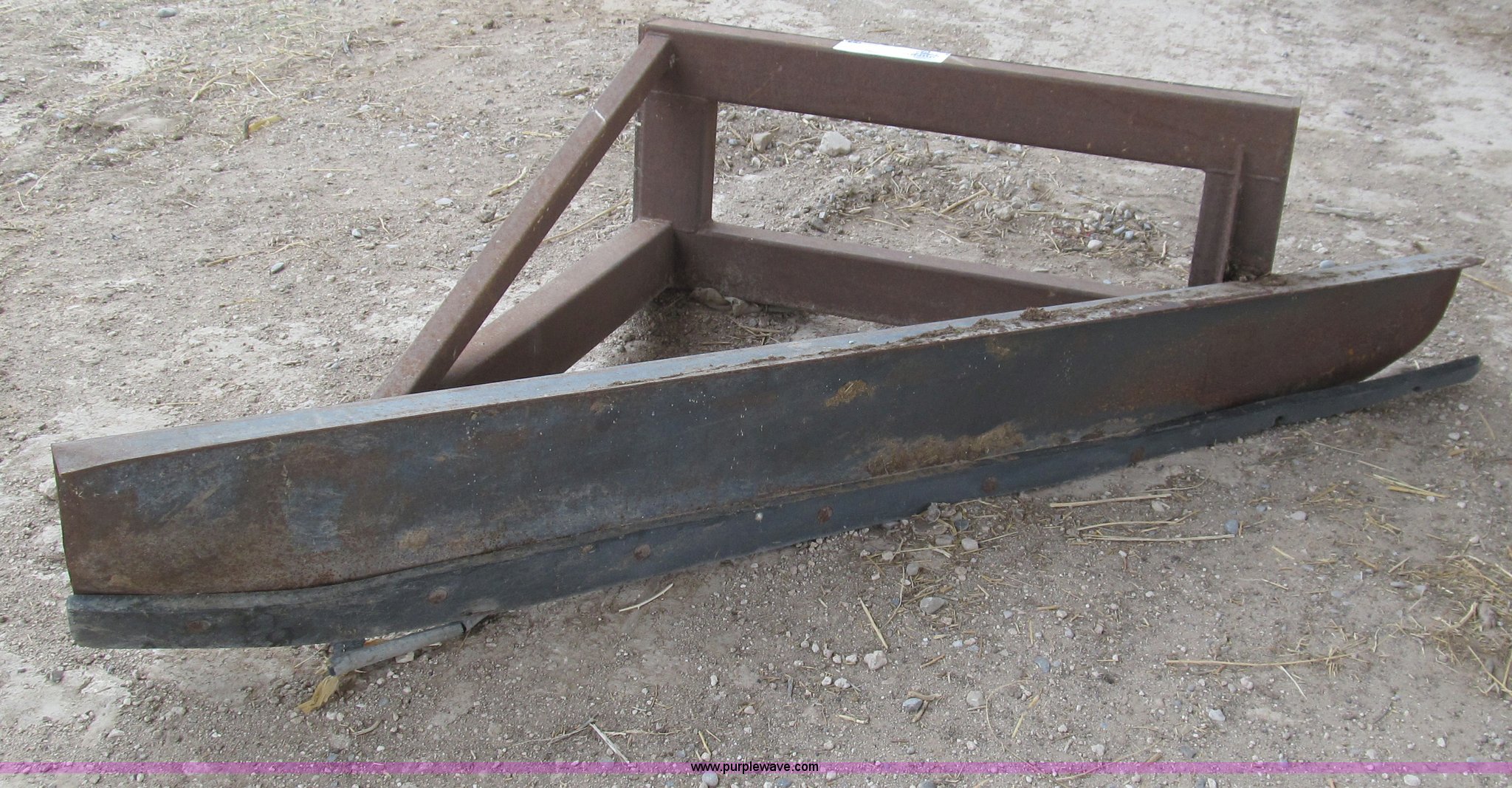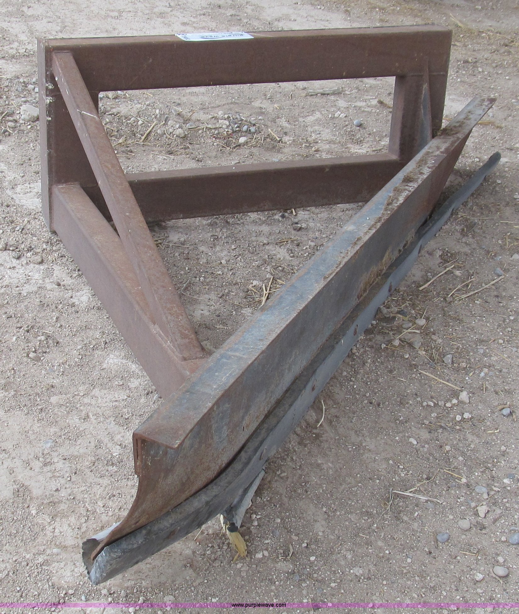 Purple Wave is selling a used Ag Tractor Loader or Attach. in New Mexico. This item is a Quick attach front feed pusher with the following: 8'W blade with 46"W quick attach hookup, Rubber bottom attachment, Corners are bent