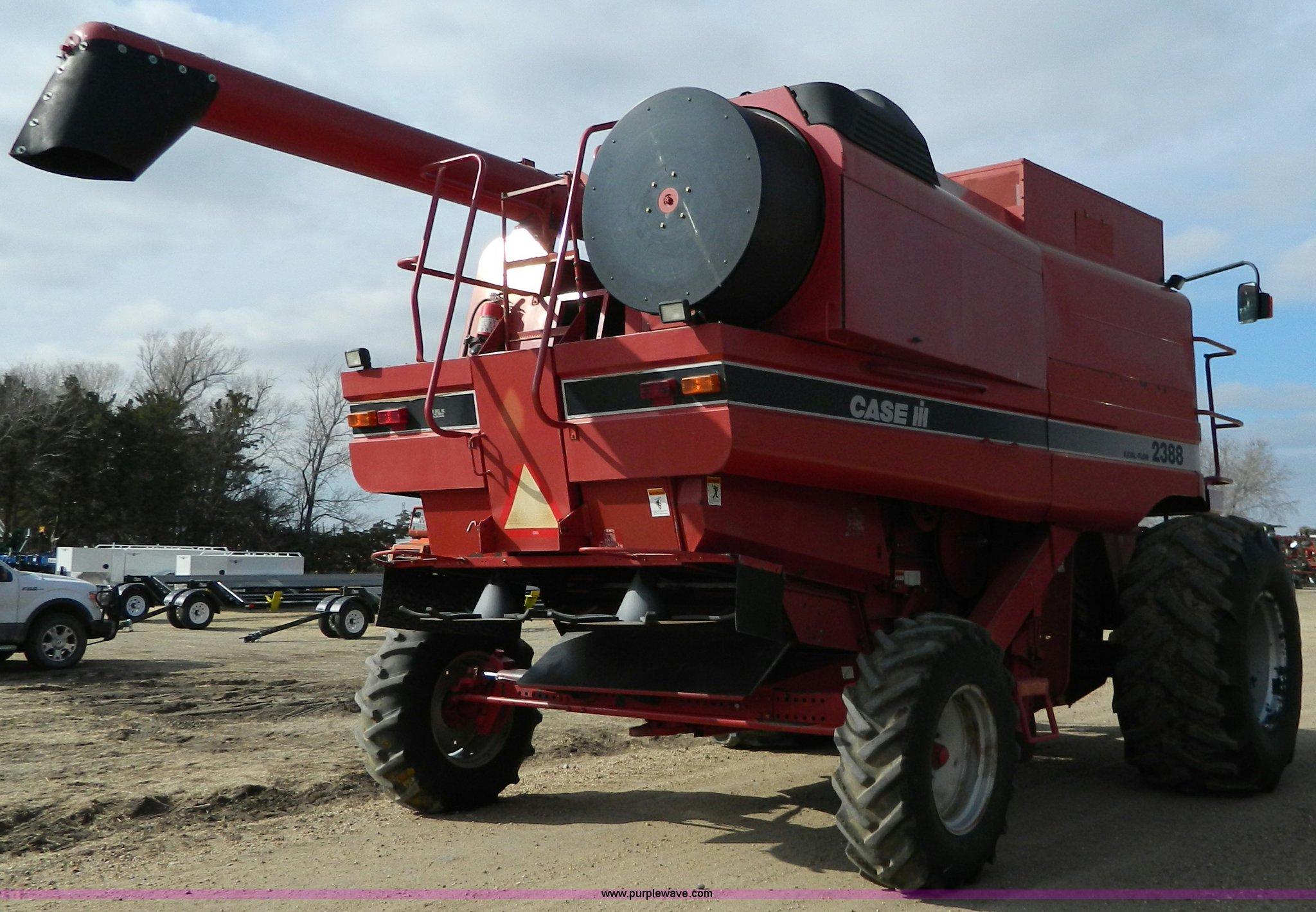 Purple Wave is selling a used Combine in Kansas. This item is a 1998 Case IH 2388 Axial-Flow combine with the following: 2,680 engine hours on meter, 1,931 separator hours on meter, Six cylinder diesel engine, 280 HP, Hydrostatic transmission, 3F-1R gears, AC and heat, AM/FM/cassette, Air suspension seat, Instructor seat, Tilt steering wheel, Bin extension, Straw chopper, Straw spreader, Case AFS yield monitor, 30.5-32 drive tires, 14.9-24 rear tires, Operators manual, Recently rebuilt shaker shoe and components, Serial JJC0198223