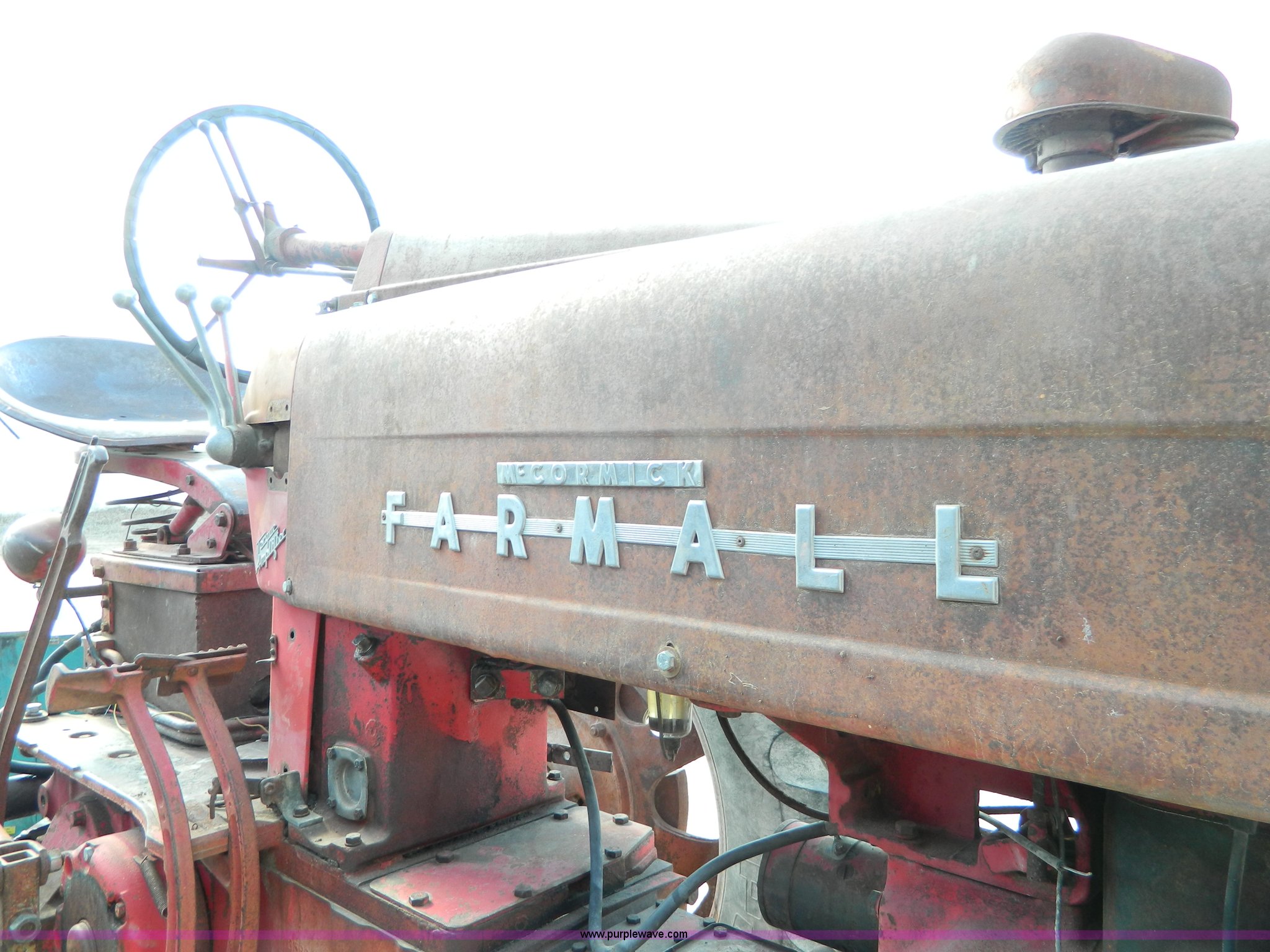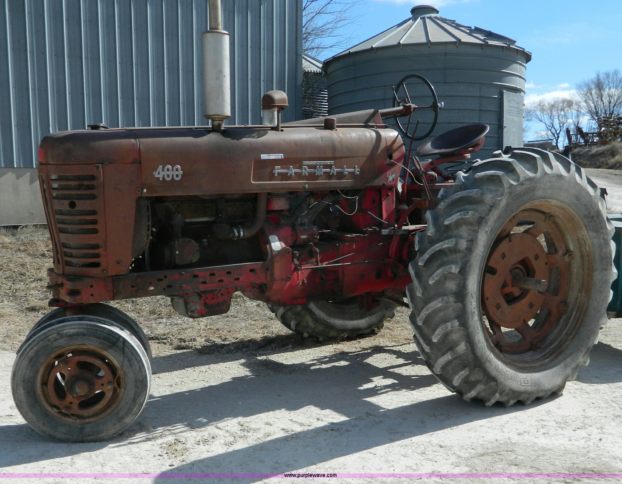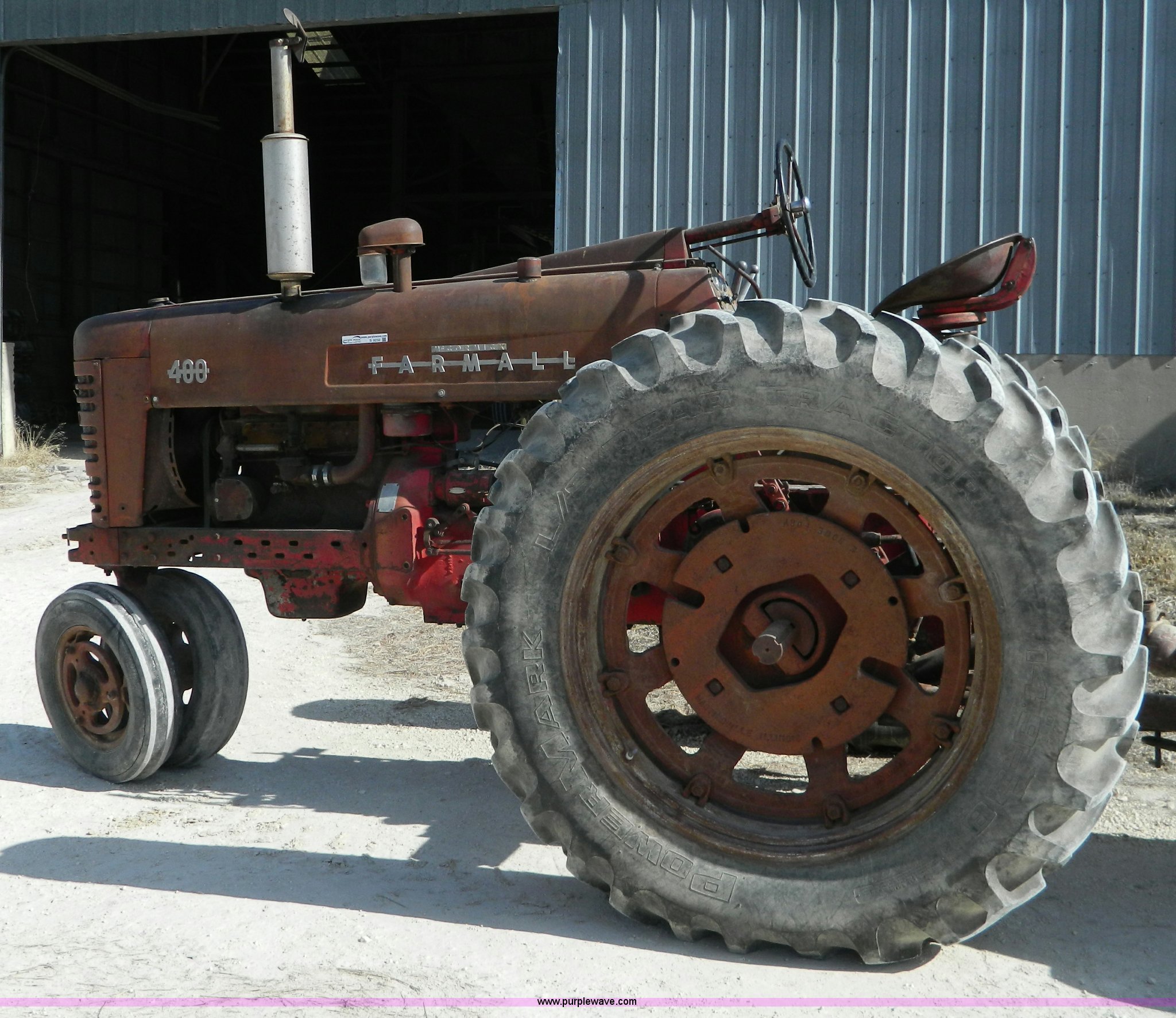 Purple Wave is selling a used Tractor in Kansas. This item is a 1955 Farmall 400 row crop tractor with the following: Four cylinder gas engine, Manual transmission, 5F-1R gears, Spring suspension seat, Torque amplifier, 12V electrical system, Three point, Draw bar, 540 PTO, Single rear hydraulic remote, 14.9-38 rear tires, No power steering, Serial S0086