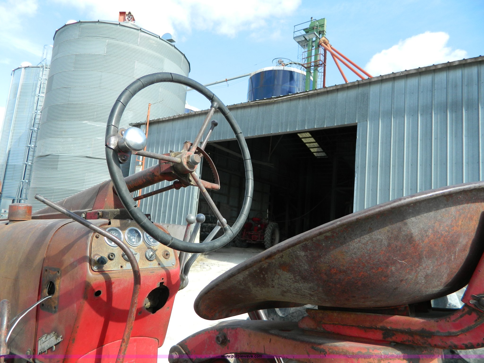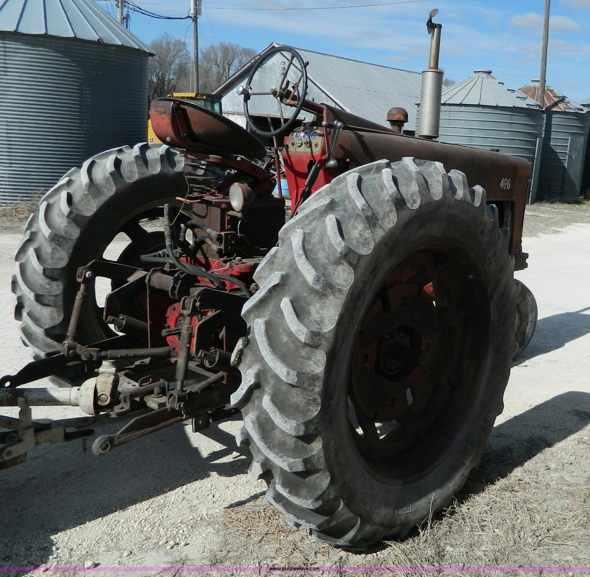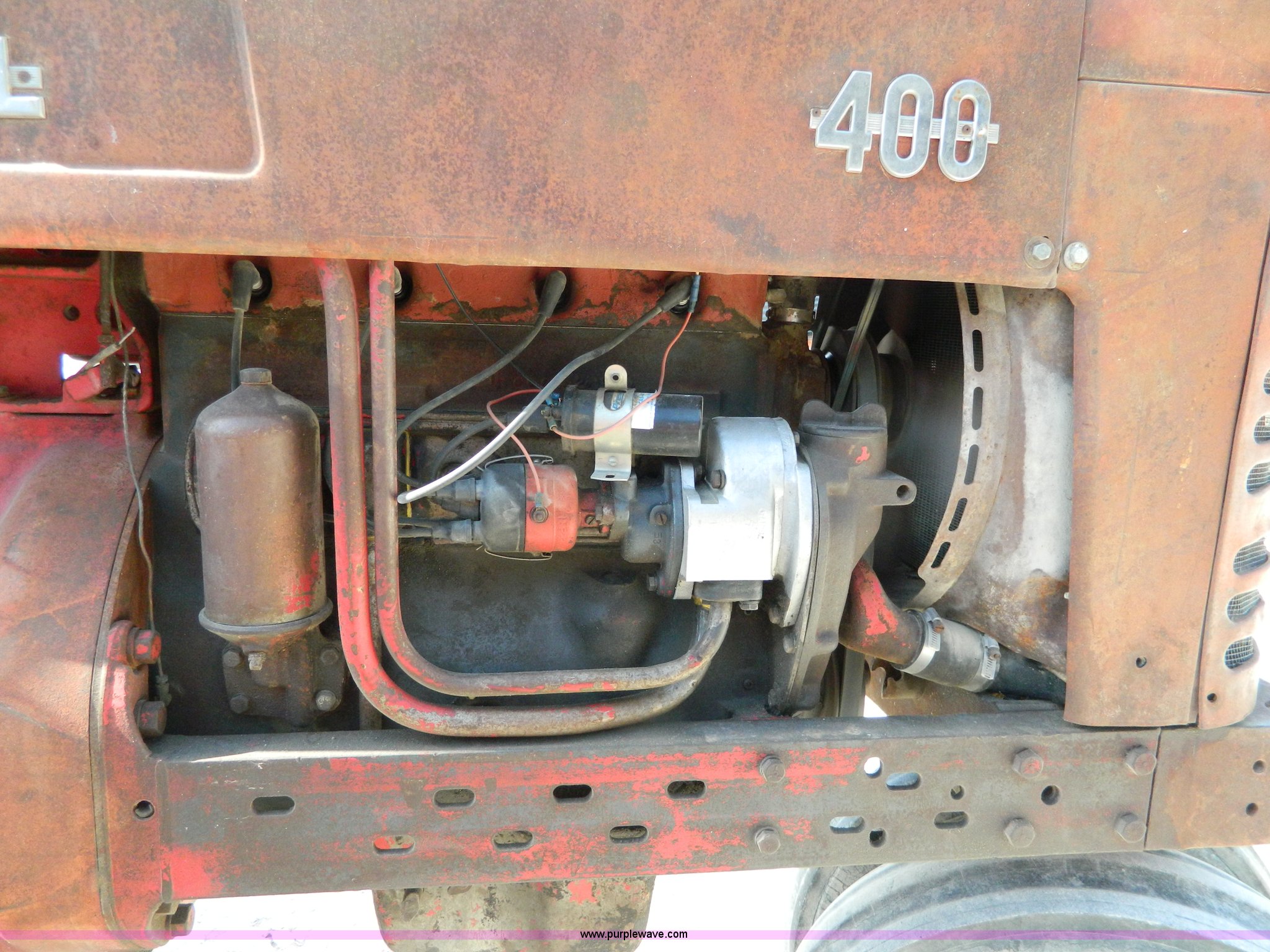 Purple Wave is selling a used Tractor in Kansas. This item is a 1955 Farmall 400 row crop tractor with the following: Four cylinder gas engine, Manual transmission, 5F-1R gears, Spring suspension seat, Torque amplifier, 12V electrical system, Three point, Draw bar, 540 PTO, Single rear hydraulic remote, 14.9-38 rear tires, No power steering, Serial S0086