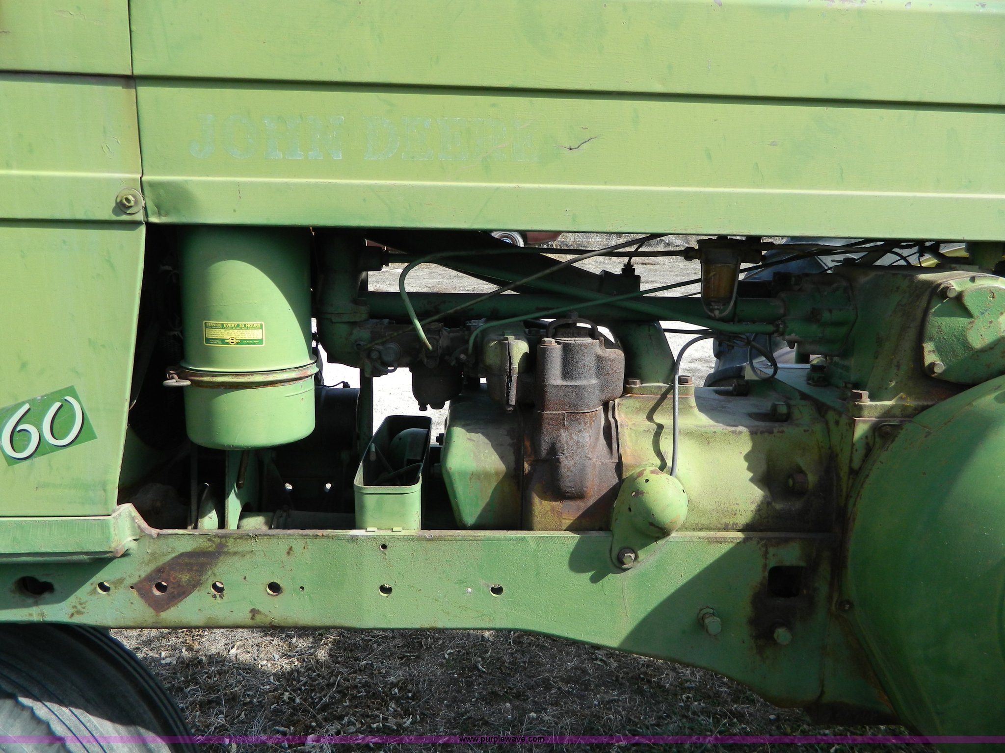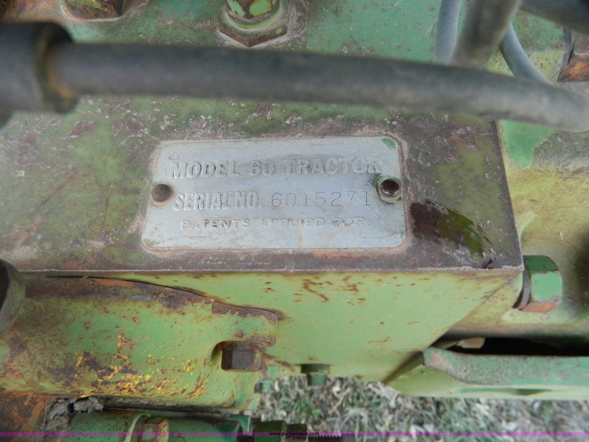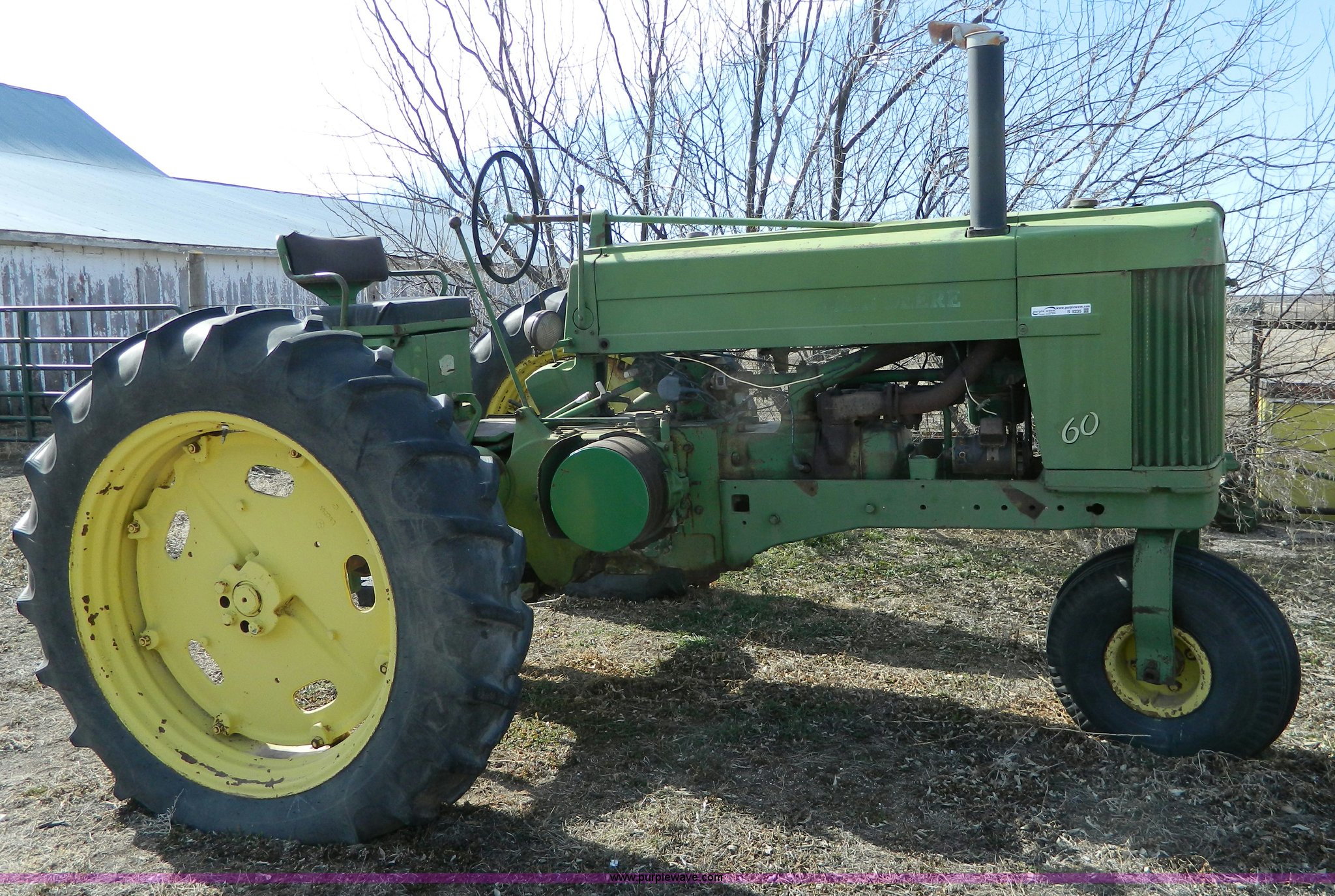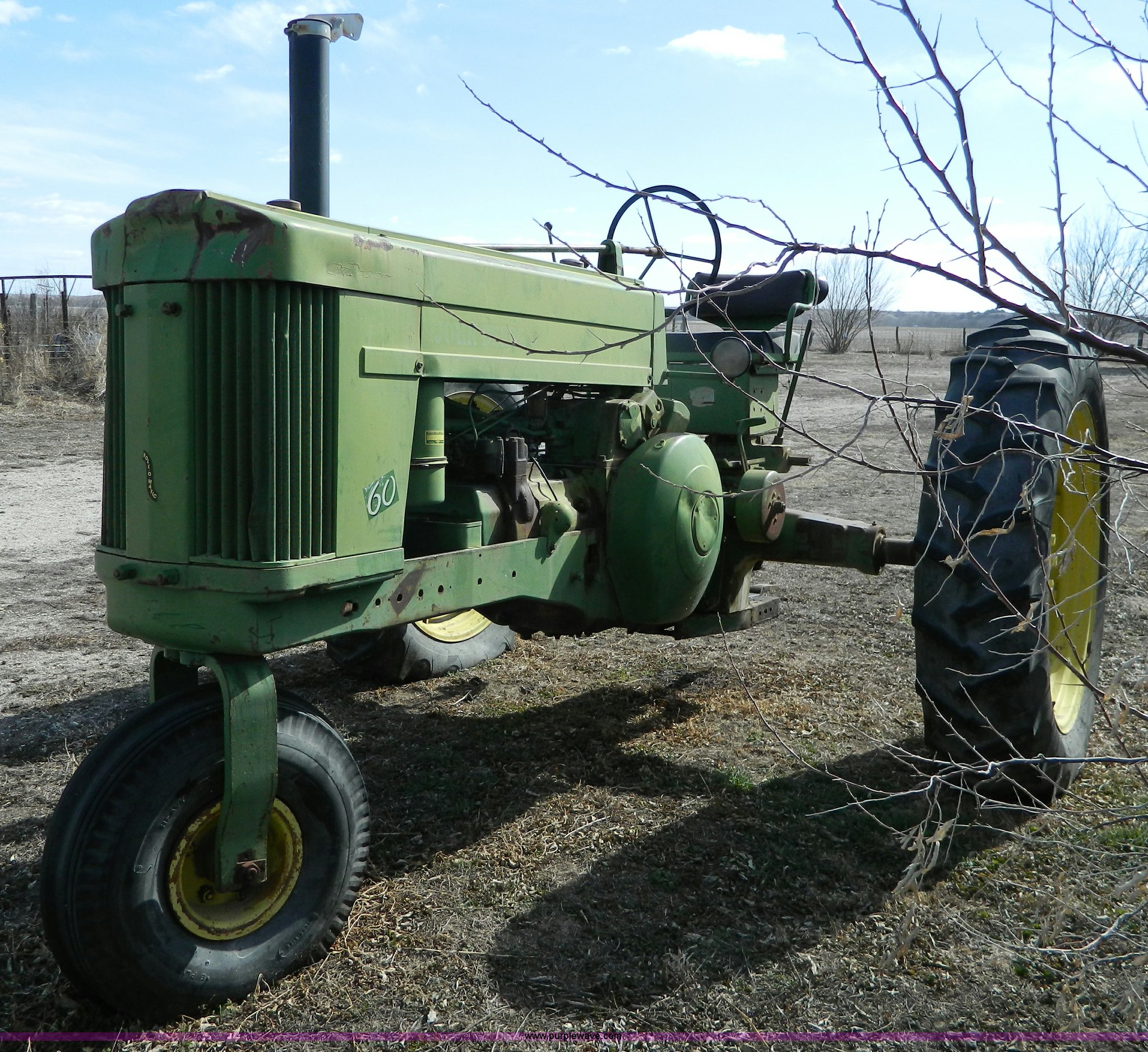 Purple Wave is selling a used Tractor in Kansas. This item is a John Deere 60 tractor with the following: Two cylinder gas engine, Engine stuck, does not run, Manual transmission, 6F-1R gears, Draw bar, 540 PTO, (2) rear hydraulic remotes, Serial 6015271