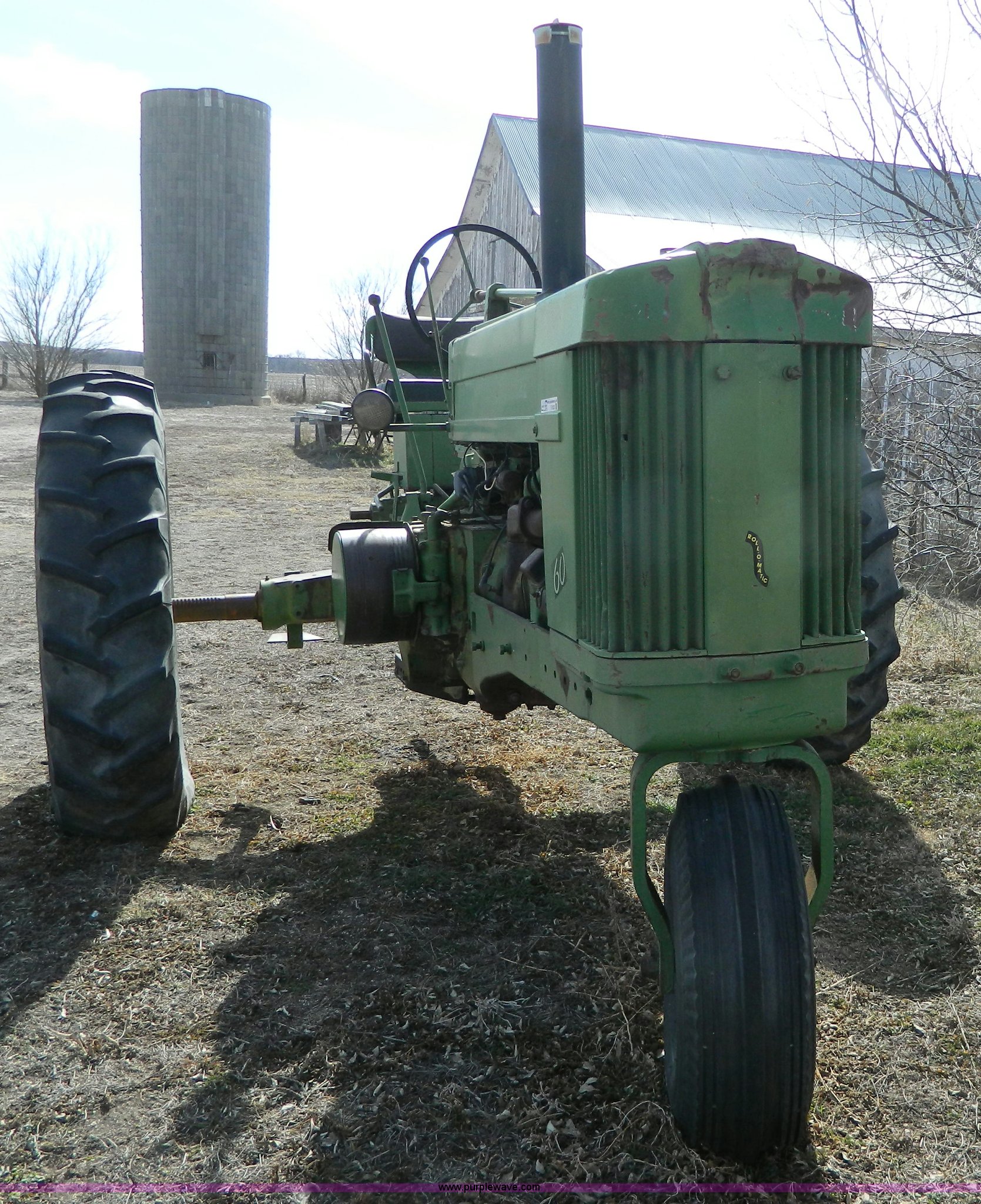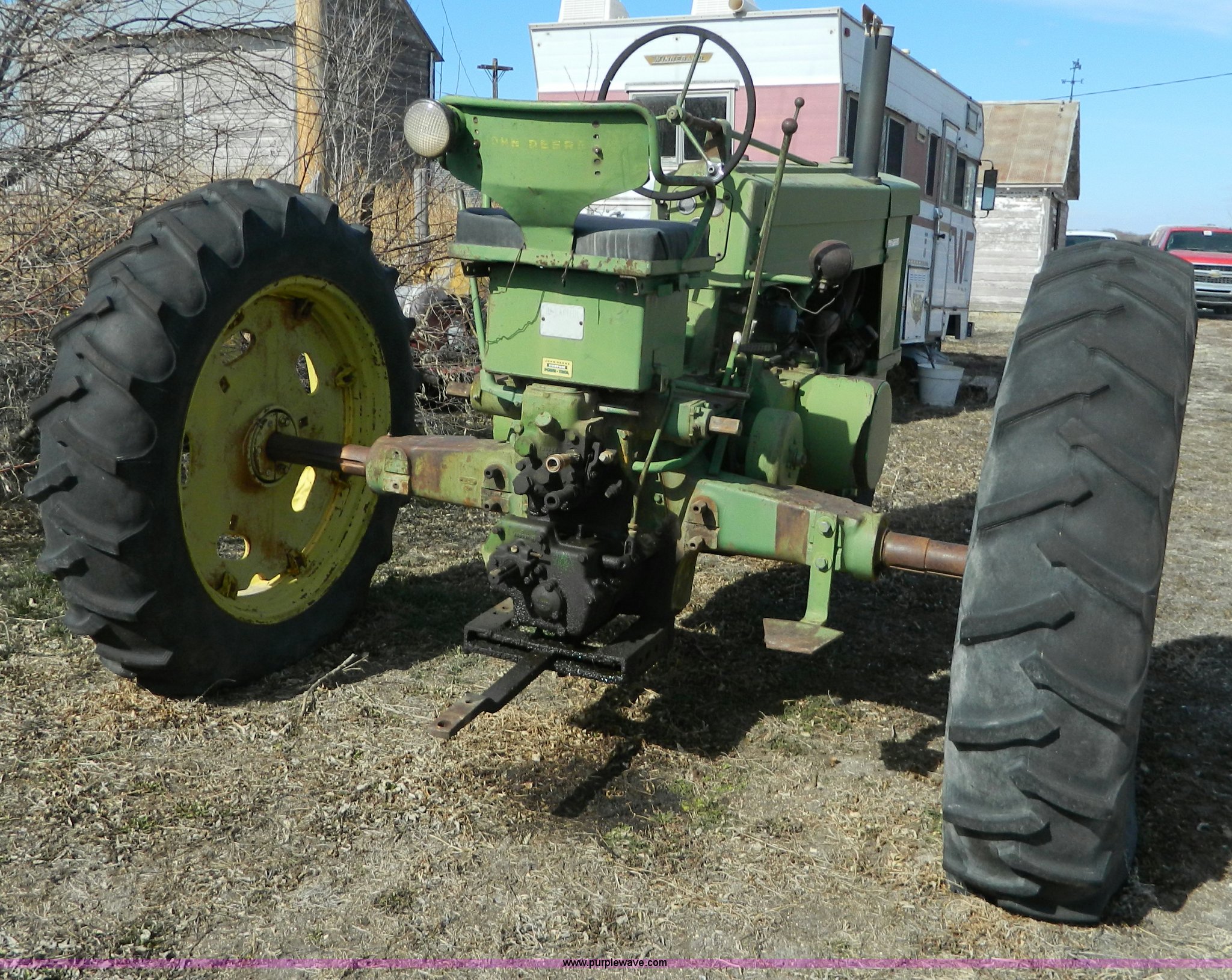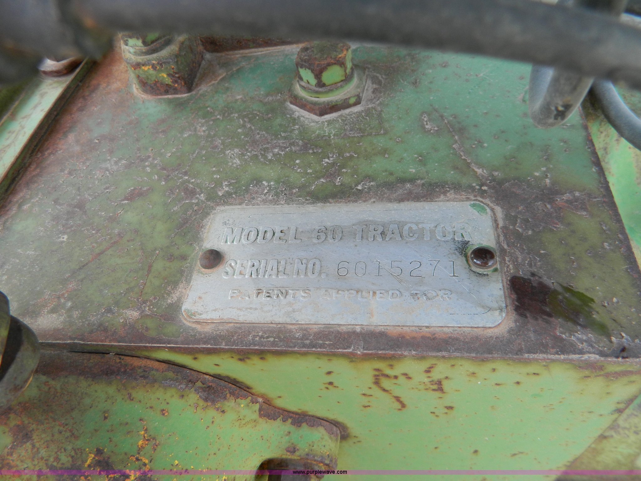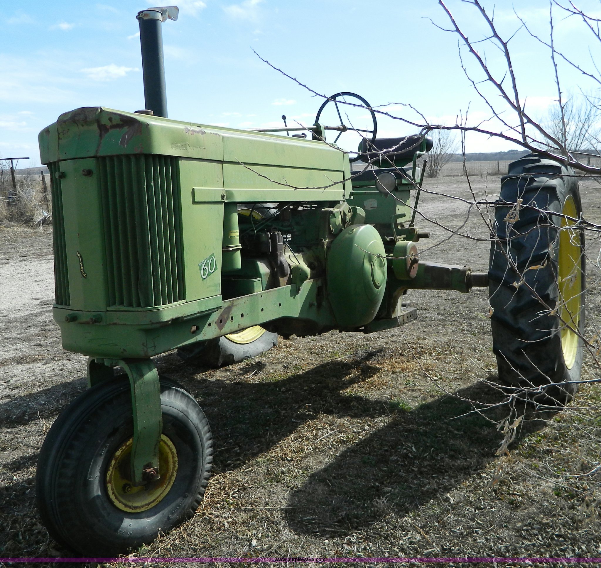 Purple Wave is selling a used Tractor in Kansas. This item is a John Deere 60 tractor with the following: Two cylinder gas engine, Engine stuck, does not run, Manual transmission, 6F-1R gears, Draw bar, 540 PTO, (2) rear hydraulic remotes, Serial 6015271