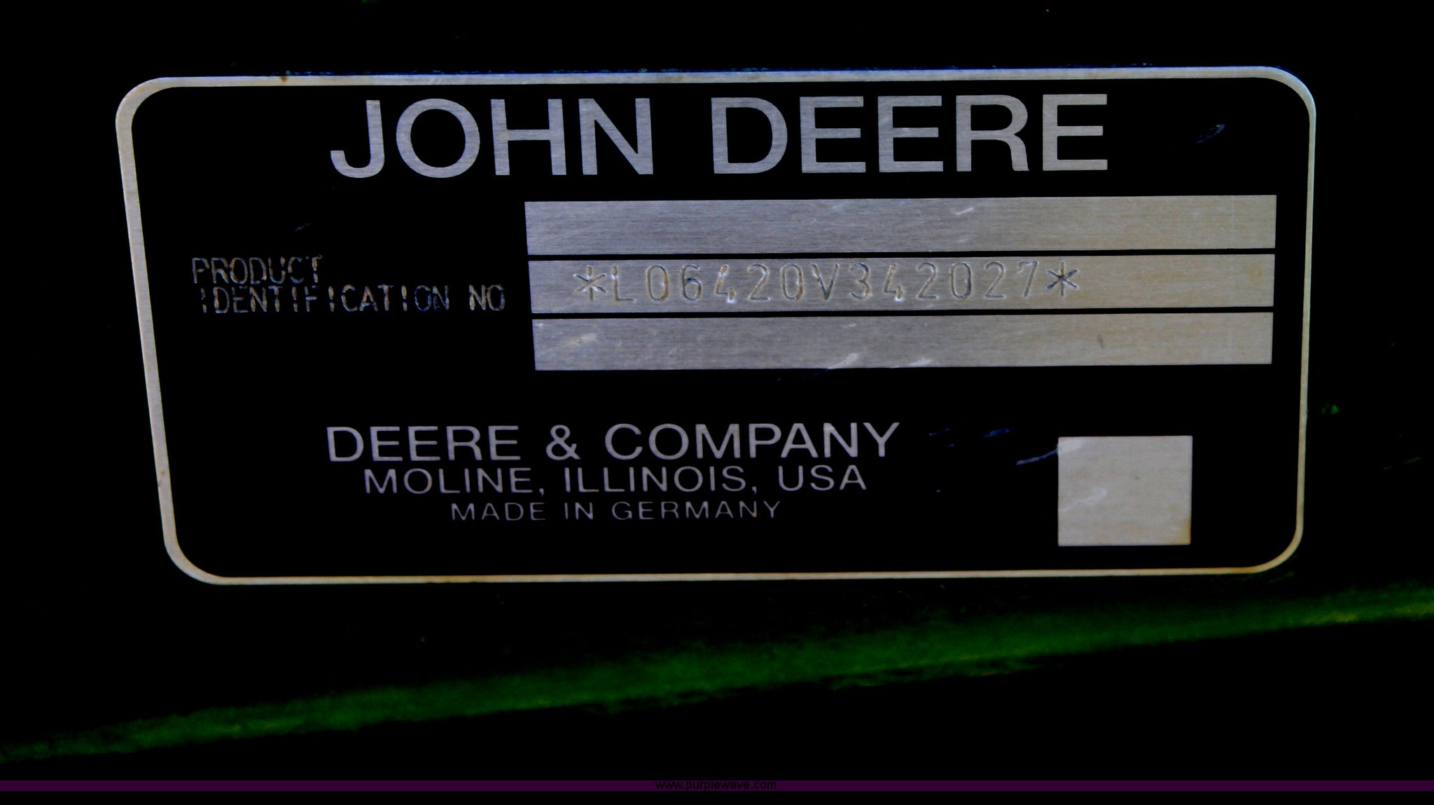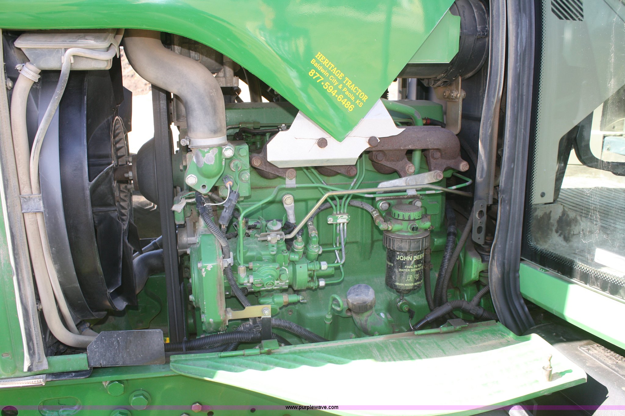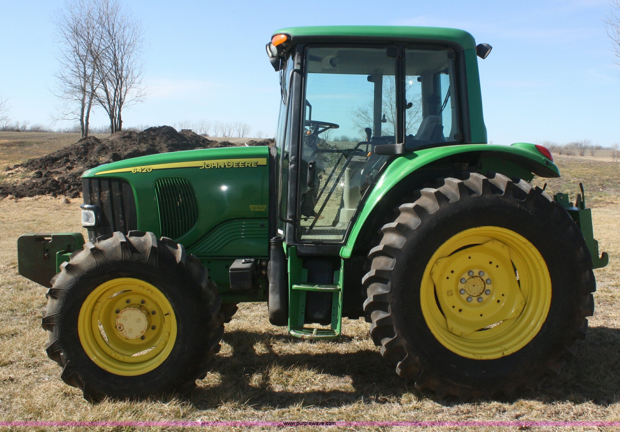 Purple Wave is selling a used Tractor in Kansas. This item is a 2005 John Deere 6420 MFWD tractor with the following: Approximately 5,500 hours on meter, John Deere 4.5L four cylinder diesel engine, Power Quad transmission, 16F-16R gears, AC and heat, Three point, Three poiint quick attach, 540/1000 PTO, (3) sets of rear hydraulic remotes, 49 gallon fuel tank, 14.9-24 front tires, 18.4-34 rear tires, Serial L06420V342027