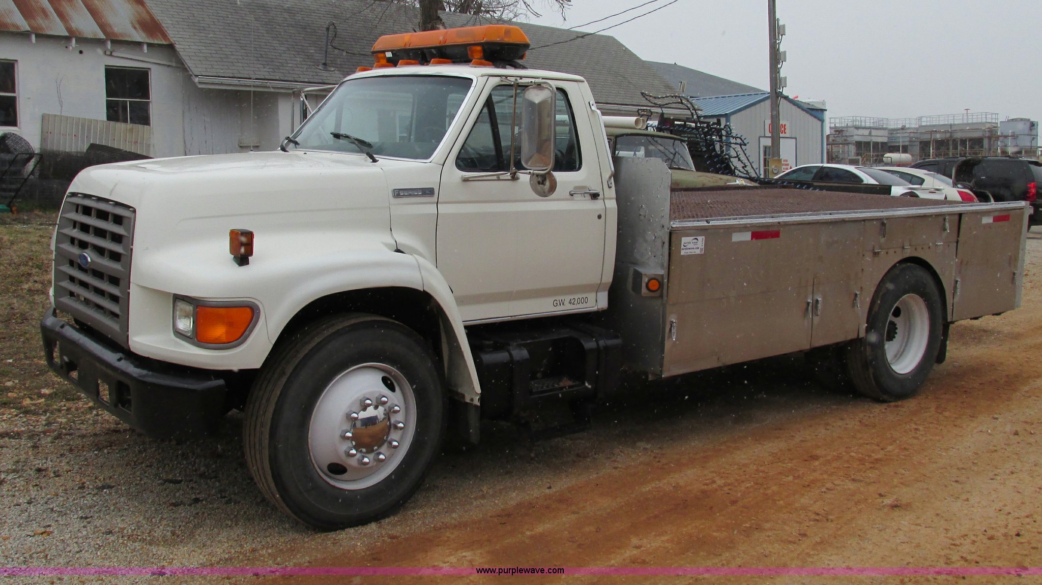 Take a look at this used 1995 Ford F800 flatbed truck being sold on March 14th, 2013 in the SOLD! Thursday March 14 Construction Equipment Auction made by Ford. Take a look at all of the item information below or take a look at similar auctions for Trucks.