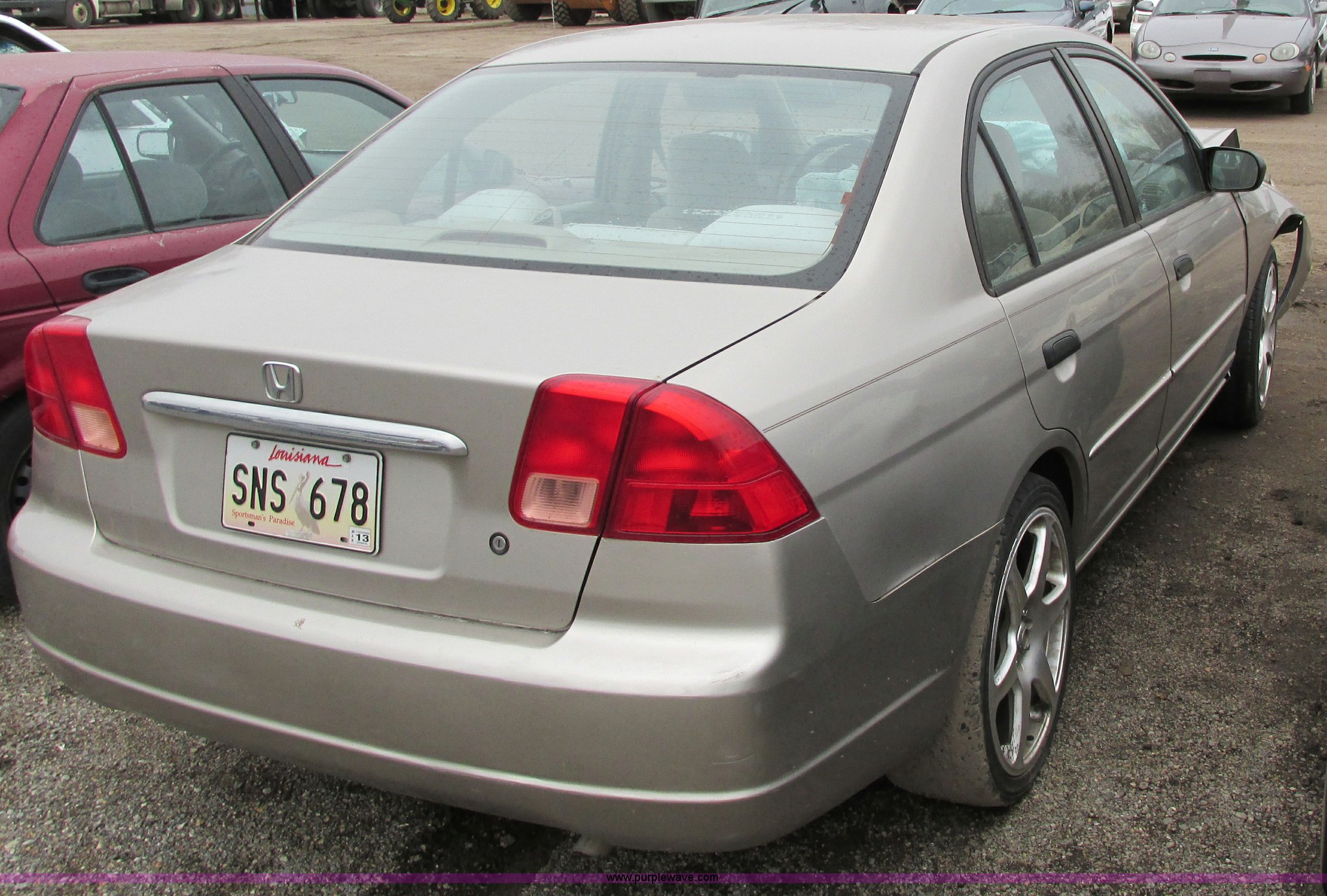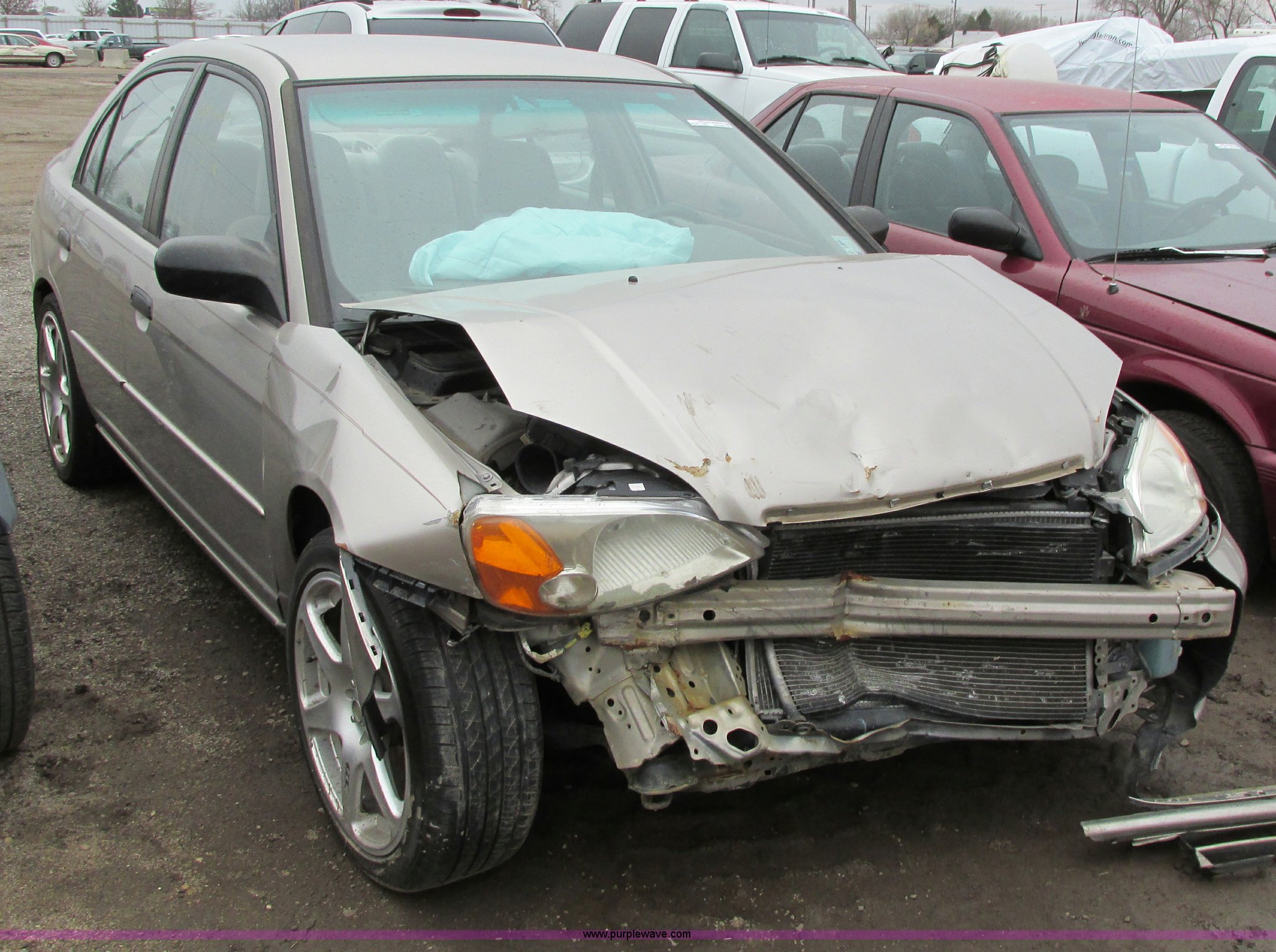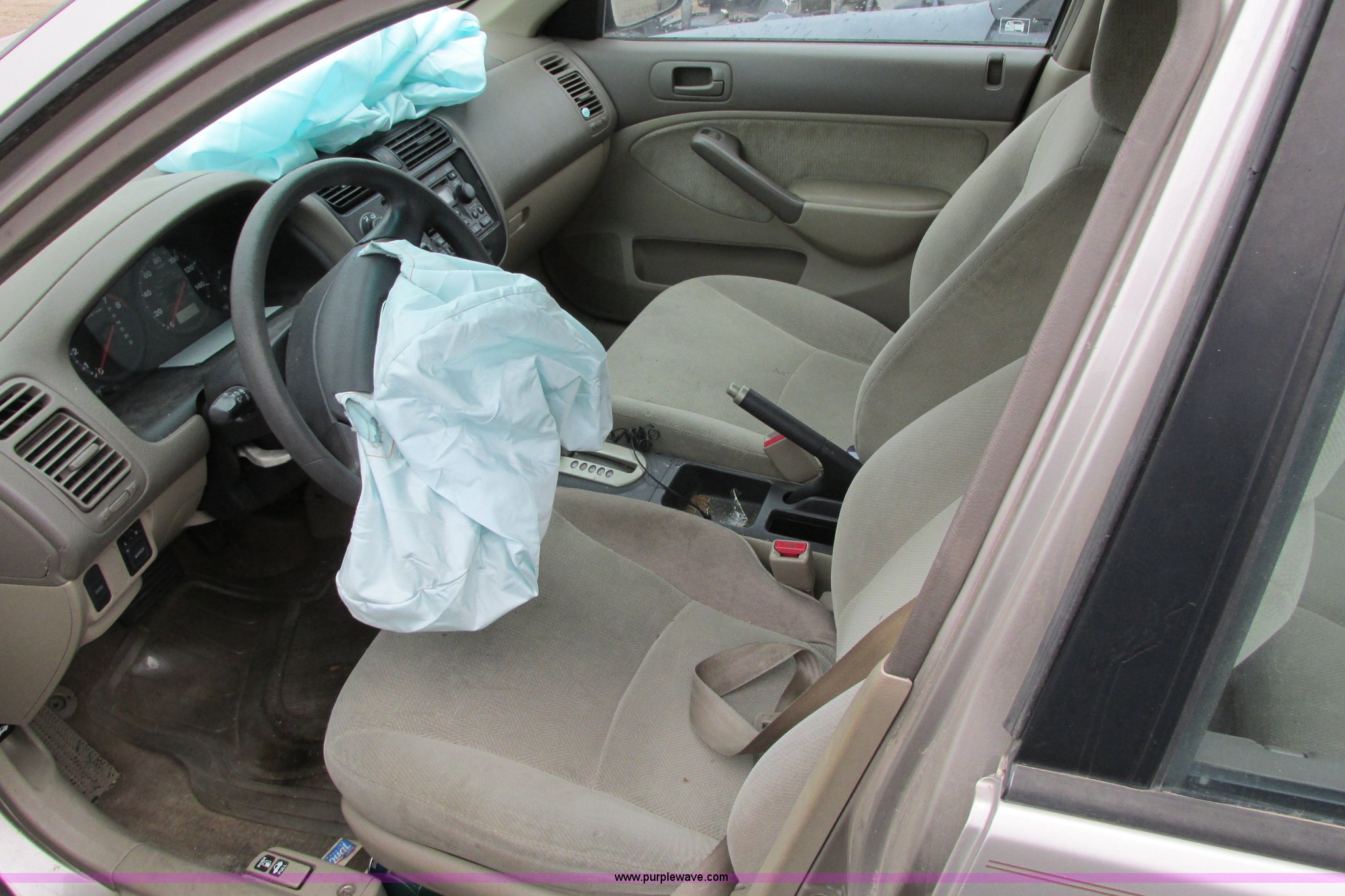 Purple Wave is selling a used Wrecked and Abandoned in Kansas. This item is a 2001 Honda Civic LX with the following: Mileage unknown, 1.7L L4 SOHC 16V gas engine, Automatic transmission, AM/FM/CD/cassette, Keys, (3) custom wheels, P225/45R18 tires, Interior damage, Air bags deployed, Front end damage, Case# 12C078019