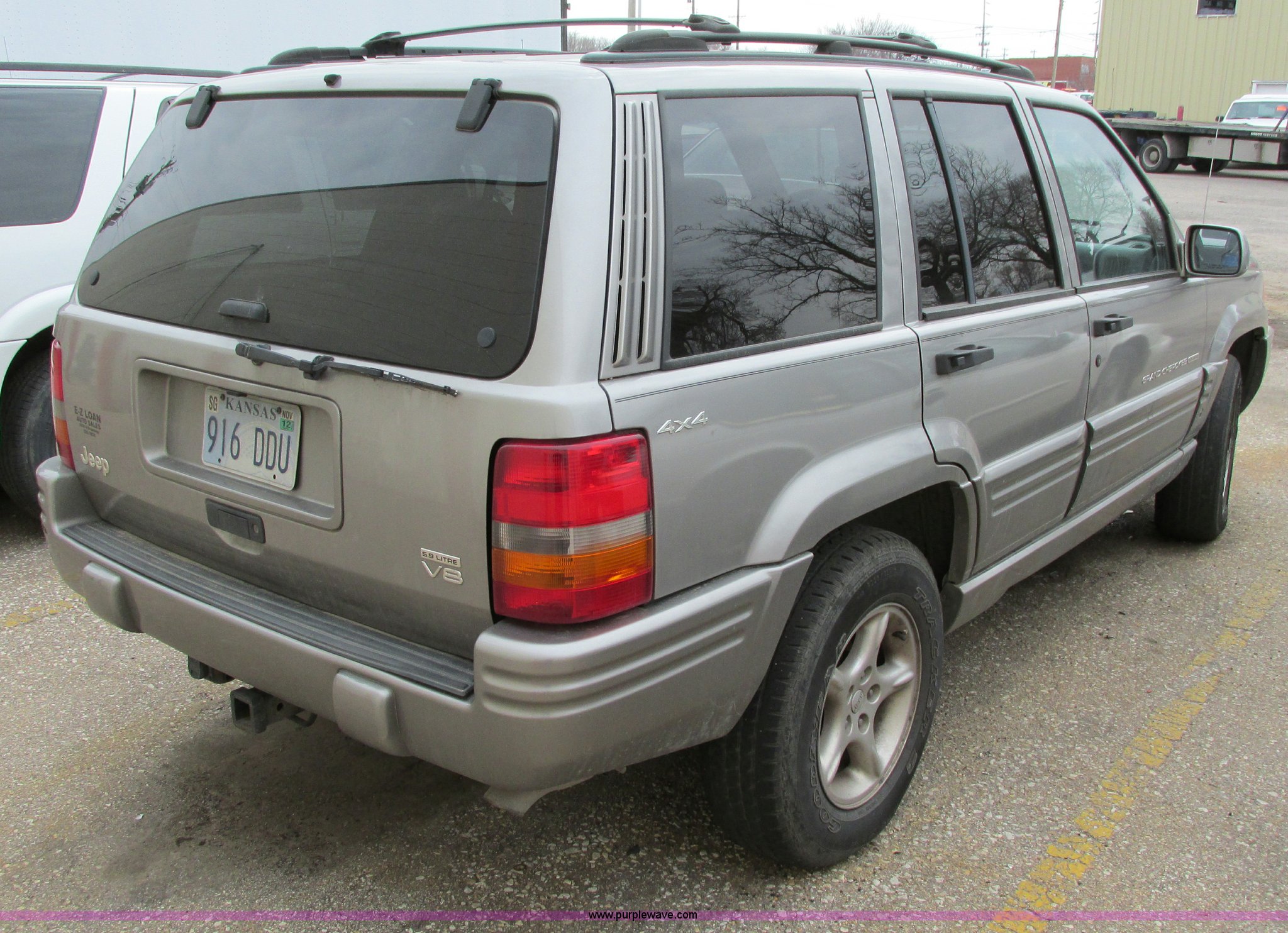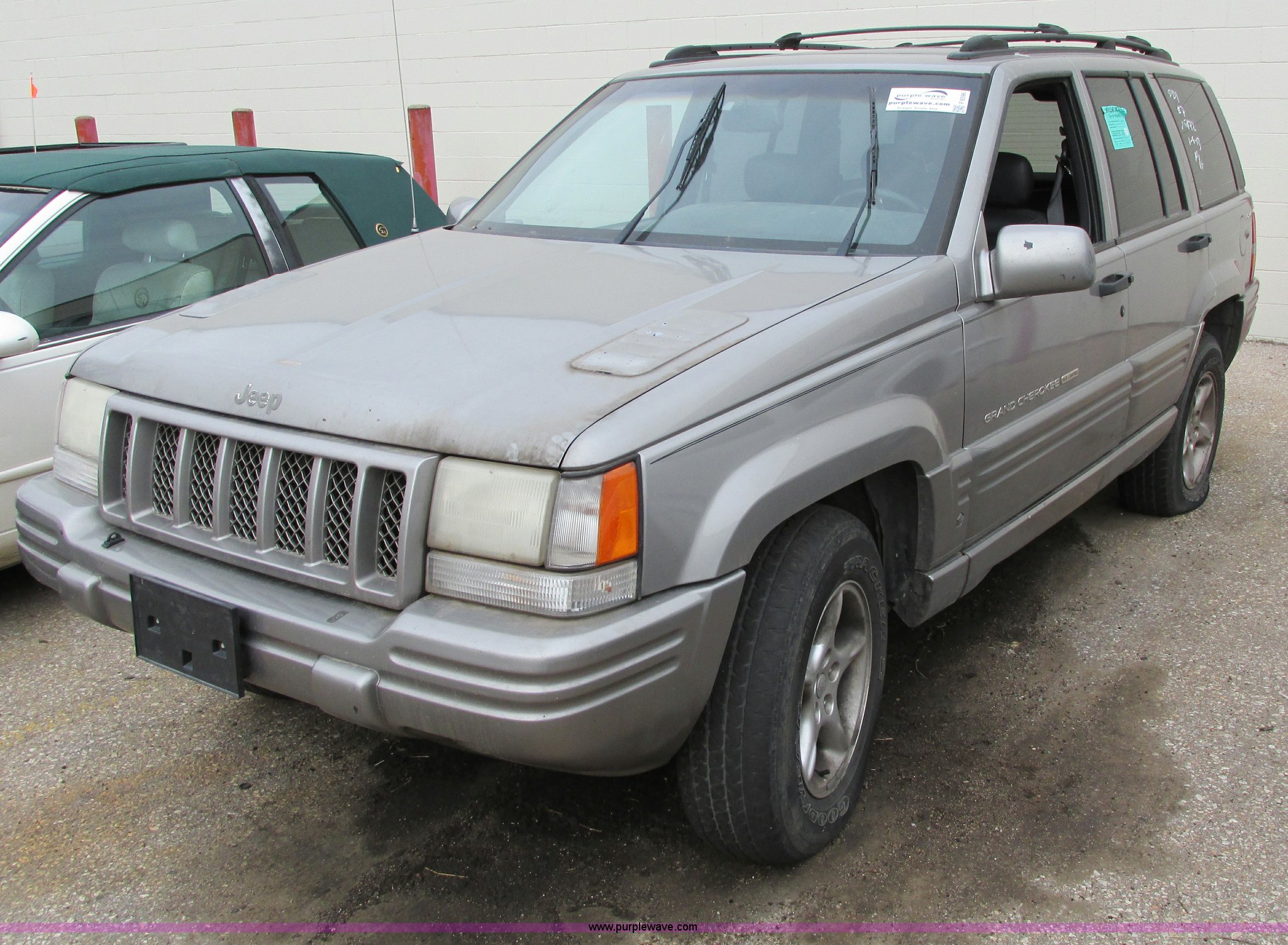 Purple Wave is selling a used Wrecked and Abandoned in Kansas. This item is a 1998 Jeep Grand Cherokee Limited SUV with the following: Mileage unknown, 5.9L V8 OHV 16V gas engine, Automatic transmission, Four wheel drive, AC and heat, Tilt, Cruise, Power windows, locks, mirrors, and seats, Heated seats and mirrors, Leather interior, Sunroof, Receiver hitch, Trailer wiring, P225/75R16 tires, Interior/exterior cosmetic damage, Audio controls removed from steering wheel, Rear tires low, No battery, Unknown running condition, Drivers side window down, Case# 13C1638