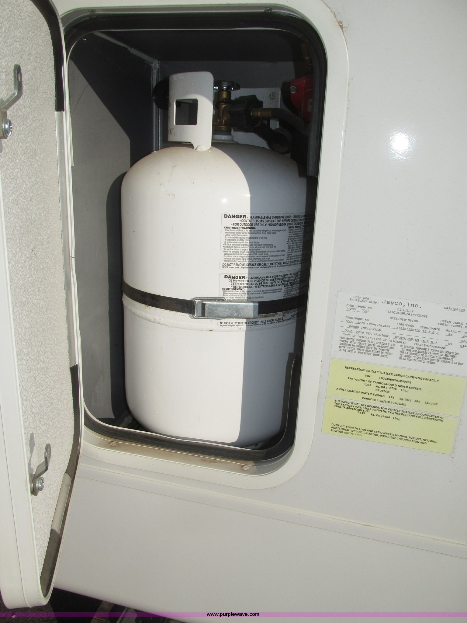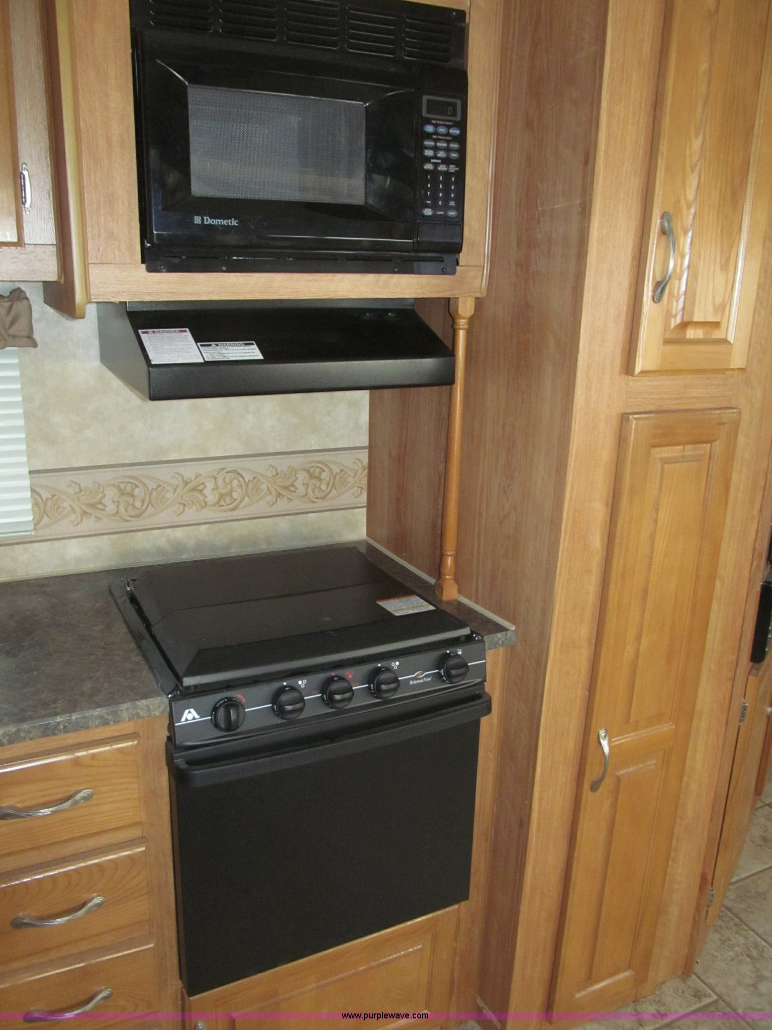 Purple Wave is selling a used RV in Nebraska. This item is a 2010 Jayco Eagle 30.5RLS Superlite camper with the following: AC and heat, AM/FM/CD, Manual windows, Cloth interior, Coleman Mach heating and cooling unit, Exterior cable and electrical outlets, Powered living room slide out, (2) propane bottles, Enclosed storage, Powered landing gear, 60"W bed, Adjustable roof vent, CareFree of CO powered awning, Roof ladder, Fire extinguisher, 46 gallon maximum water capacity, Carbon monoxide and propane alarms, RCA 31" TV, Jensen MP3/CD-RW-DVD, Norcold refrigerator and freezer, Booth style kitchen table, Bathroom, Shower, Microwave, Wedgewood oven with three burner stove top, Range hood with fan, Under cabinet lighting, ST225/75R15 tires, Operating manual