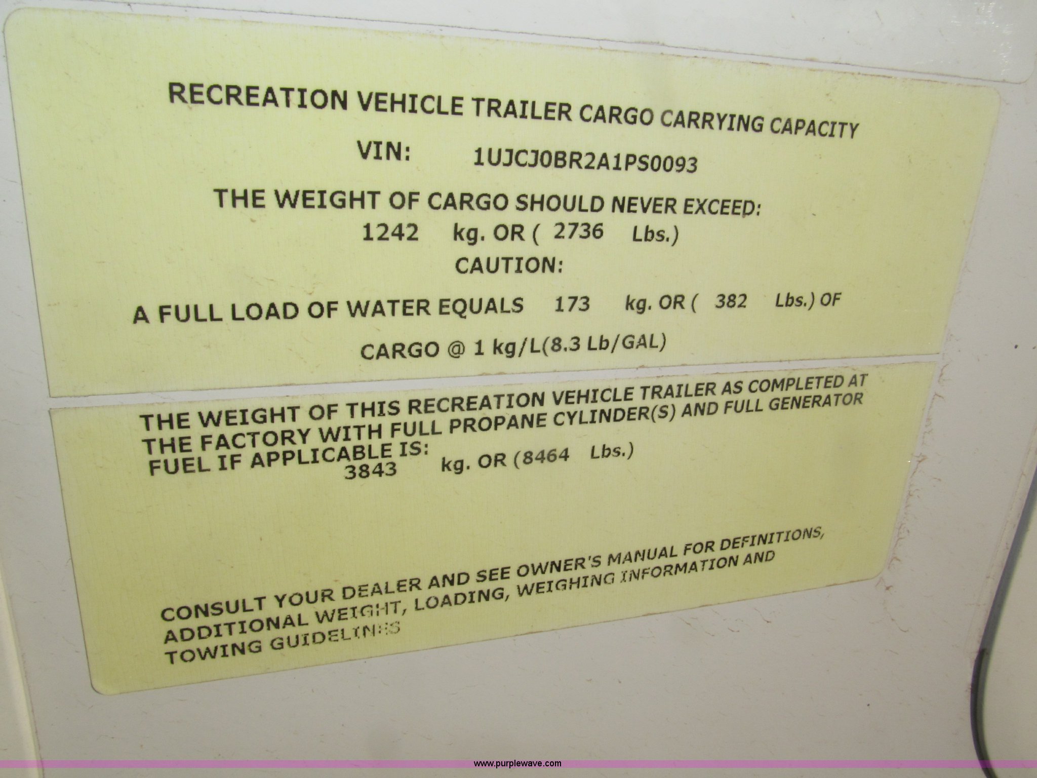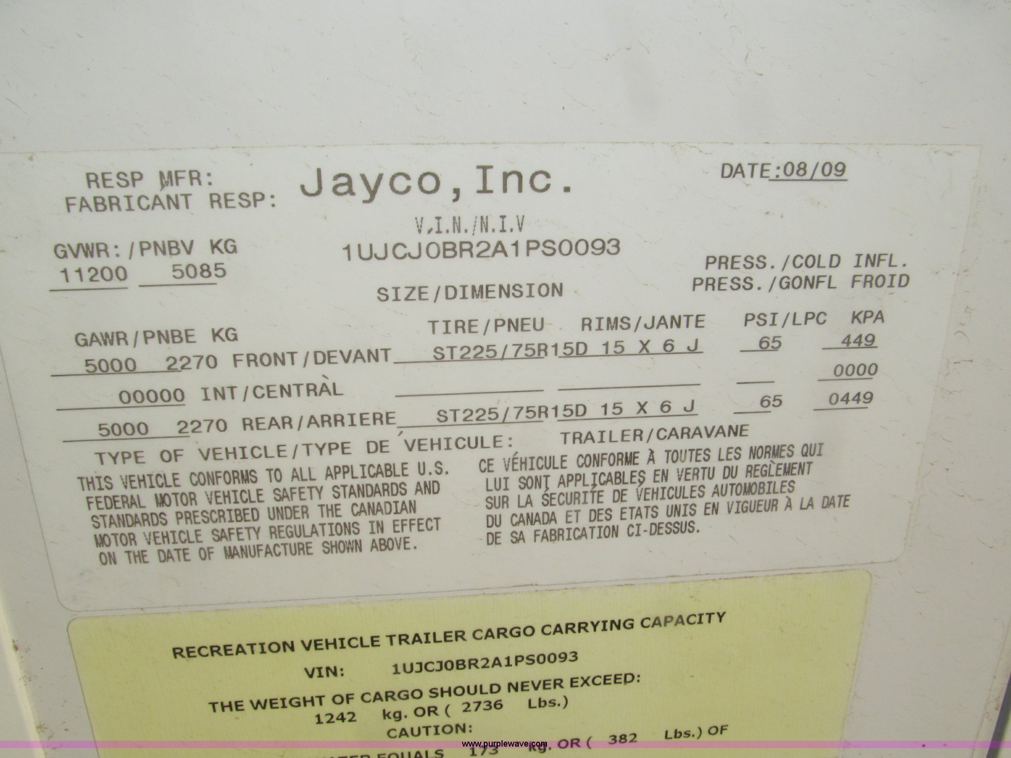 2010 Jayco Eagle 30.5RLS Superlite camper. AC and heat, AM/FM/CD, Manual windows, Cloth interior, Coleman Mach heating and cooling unit, Exterior cable and electrical outlets, Powered living room slide out, (2) propane bottles, Enclosed storage, Powered landing gear, 60"W bed, Adjustable roof vent, CareFree of CO powered awning, Roof ladder, Fire extinguisher, 46 gallon maximum water capacity, Carbon monoxide and propane alarms, RCA 31" TV, Jensen MP3/CD-RW-DVD, Norcold refrigerator and freezer, Booth style kitchen table, Bathroom Shower, Microwave, Wedgewood oven with three burner stove top, Range hood with fan, Under cabinet lighting, ST225/75R15 tires, Operating manual. Previously salvage title. 1UJCJ0BR2A1PS0093. Shipping quotes available. Pick Equipment. 57706 855th Rd.. Wayne, NE 68787