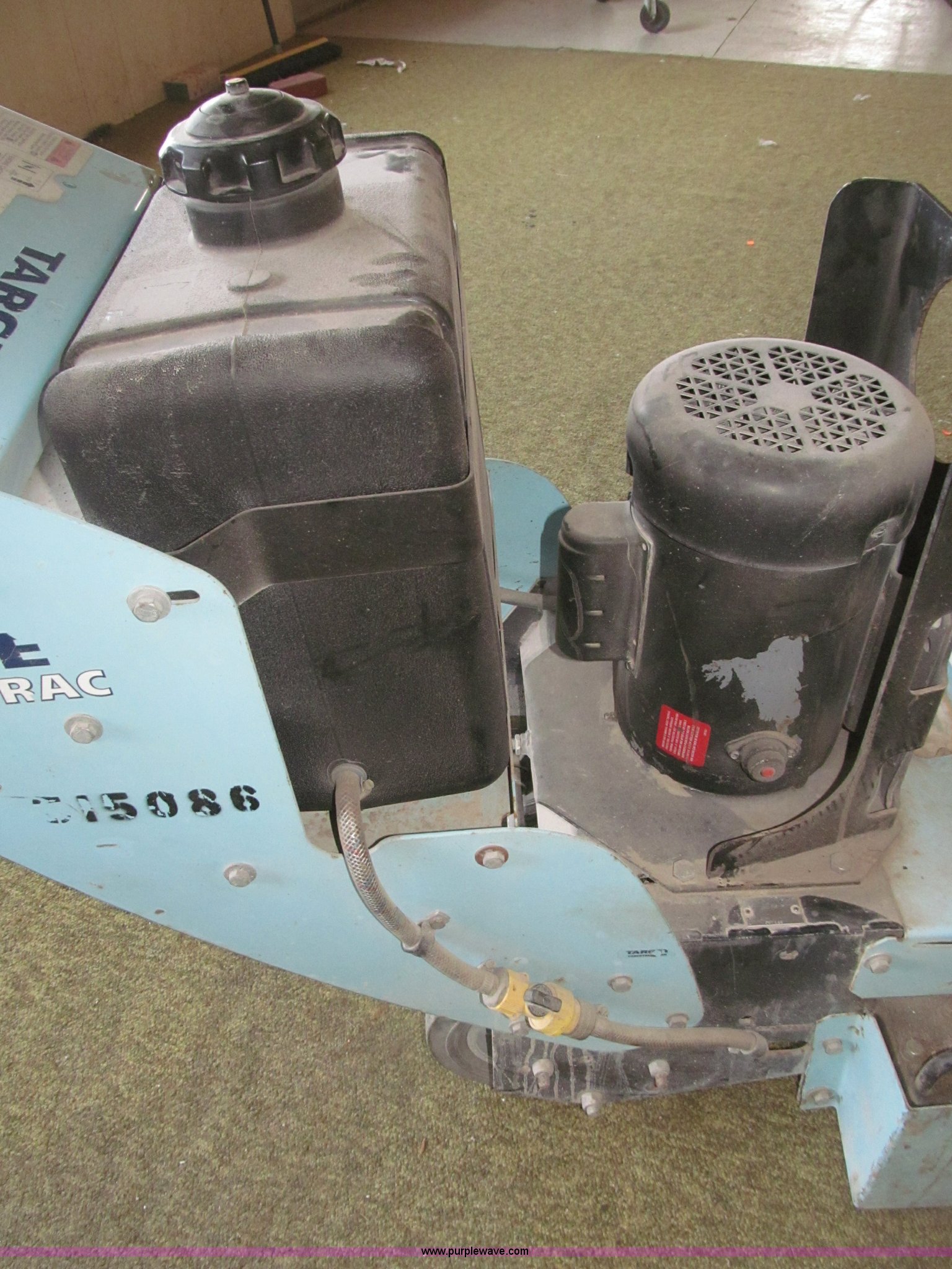 Purple Wave is selling a used Tools in Nebraska. This item is a Target twin head diamond disc grinder with the following: (2) 10" 10 segment diamond discs, Baldor 1.5 HP electric motor, Single phase, 115/230V, 1,725 RPM, 19/9.5 amp, Spec 36J242-D365, Top mount poly water tank, Inline shutoff, 8" rubber wheels, Approximately 2.5" O.D. lower rear dust discharge, Approximately 49"L x 25"W x 36"H, Lifting eye and handles, 10"L three prong standard plug electrical cord, Adjustable wheels and axle for transport, Serial 407640, EIN 515086