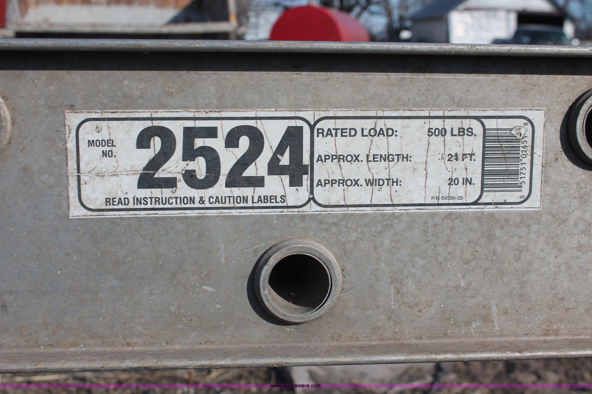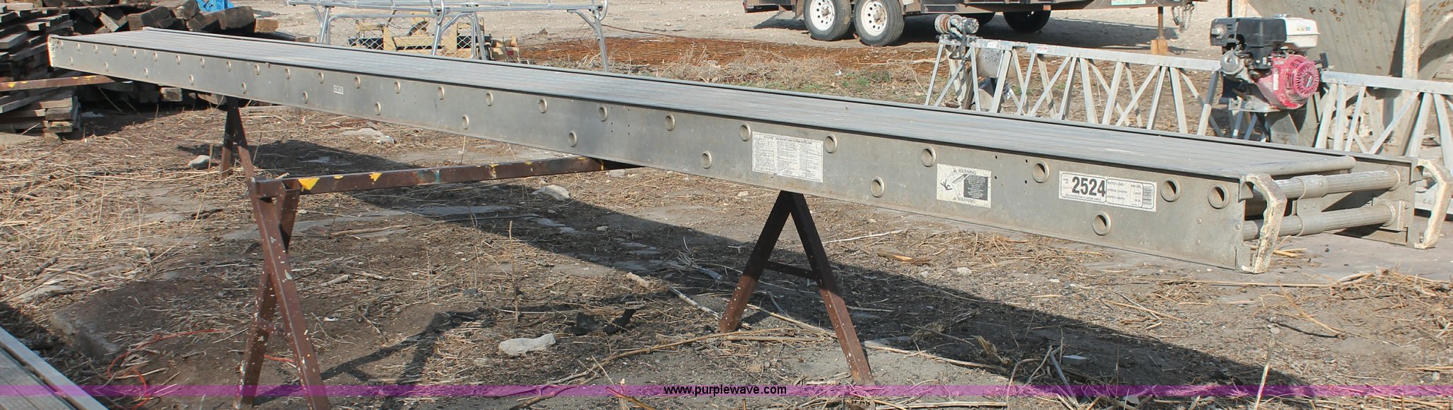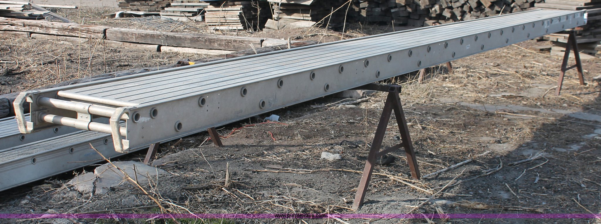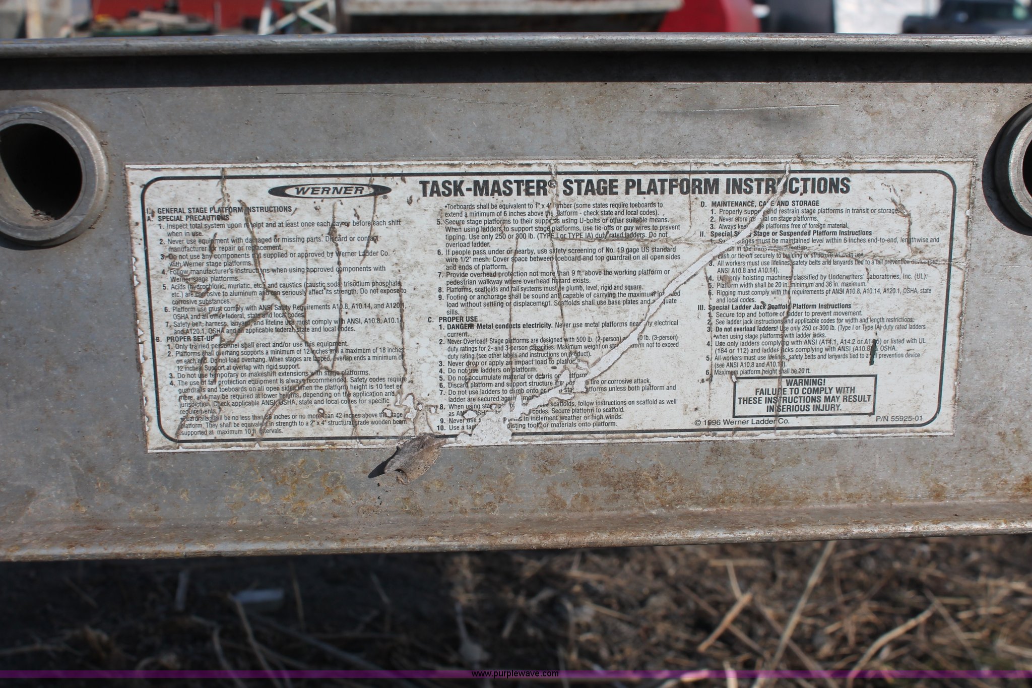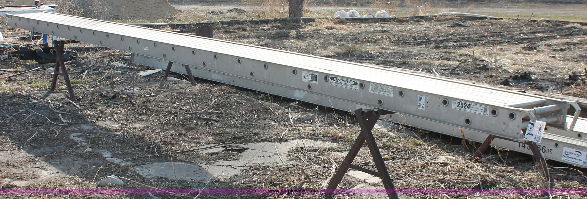 Purple Wave is selling a used Tools in Kansas. This item is a Werner Task-Master aluminum scaffolding stage with the following: Model 2524, 24'L x 20"W, 500 lbs rated load capacity