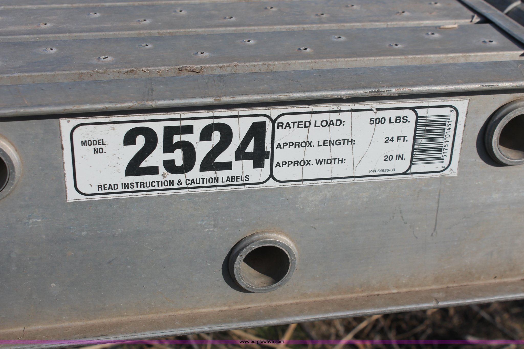 Purple Wave is selling a used Tools in Kansas. This item is a WErner Task-Master aluminum scaffolding stage with the following: Model 2524, 24'L x 20"W, 500 lbs rated load capacity