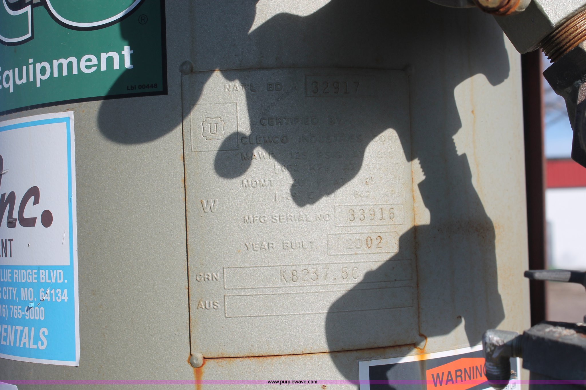 Purple Wave is selling a used Tools in Kansas. This item is a 2002 Clemco abrasive blast machine with the following: 3.0 CF capacity, MAWP 125 psig at 350 degrees, Serial 33916