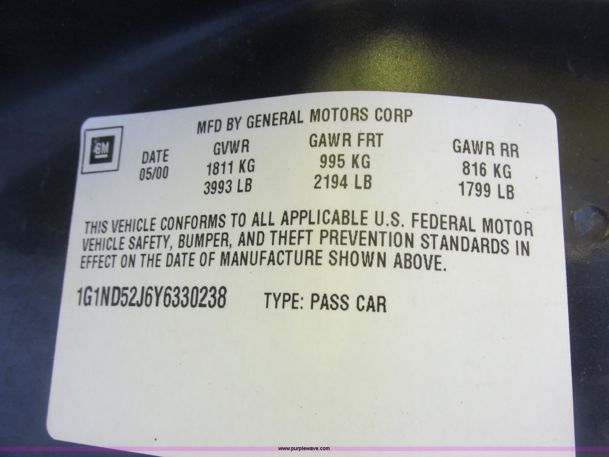 Purple Wave is selling a used Passenger Vehicle in Missouri. This item is a 2000 Chevrolet Malibu with the following: 99,562 miles on odometer, 3.1L V6 SFI engine, Automatic transmission, AC and heat, Tilt, Cruise, AM/FM, Manual windows and locks, Cloth interior, 215/60/15 tires, Hail damage, Interior/exterior cosmetic damage, Brake noise, Light engine tick, Low coolant, Piece of interior trim broken