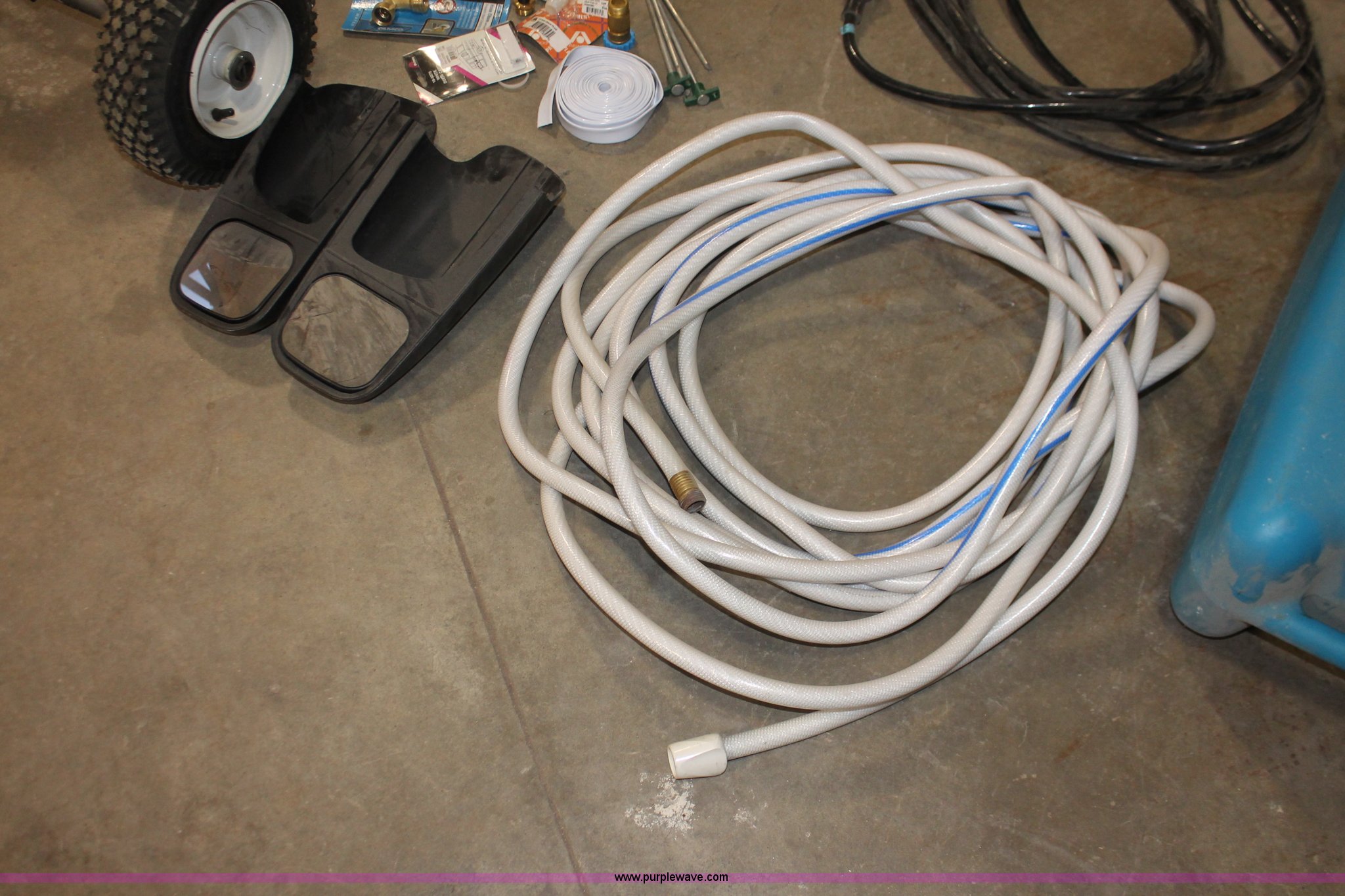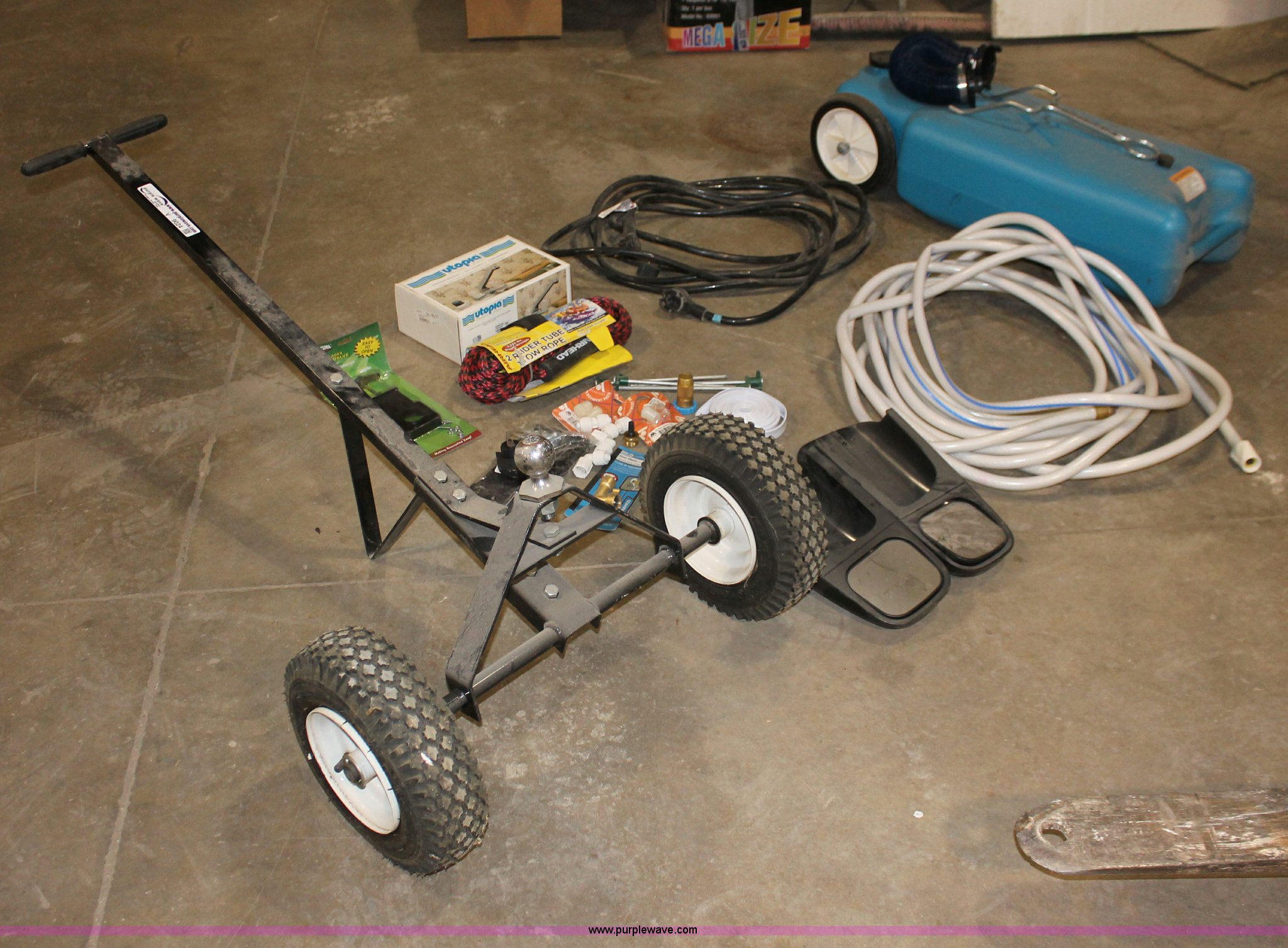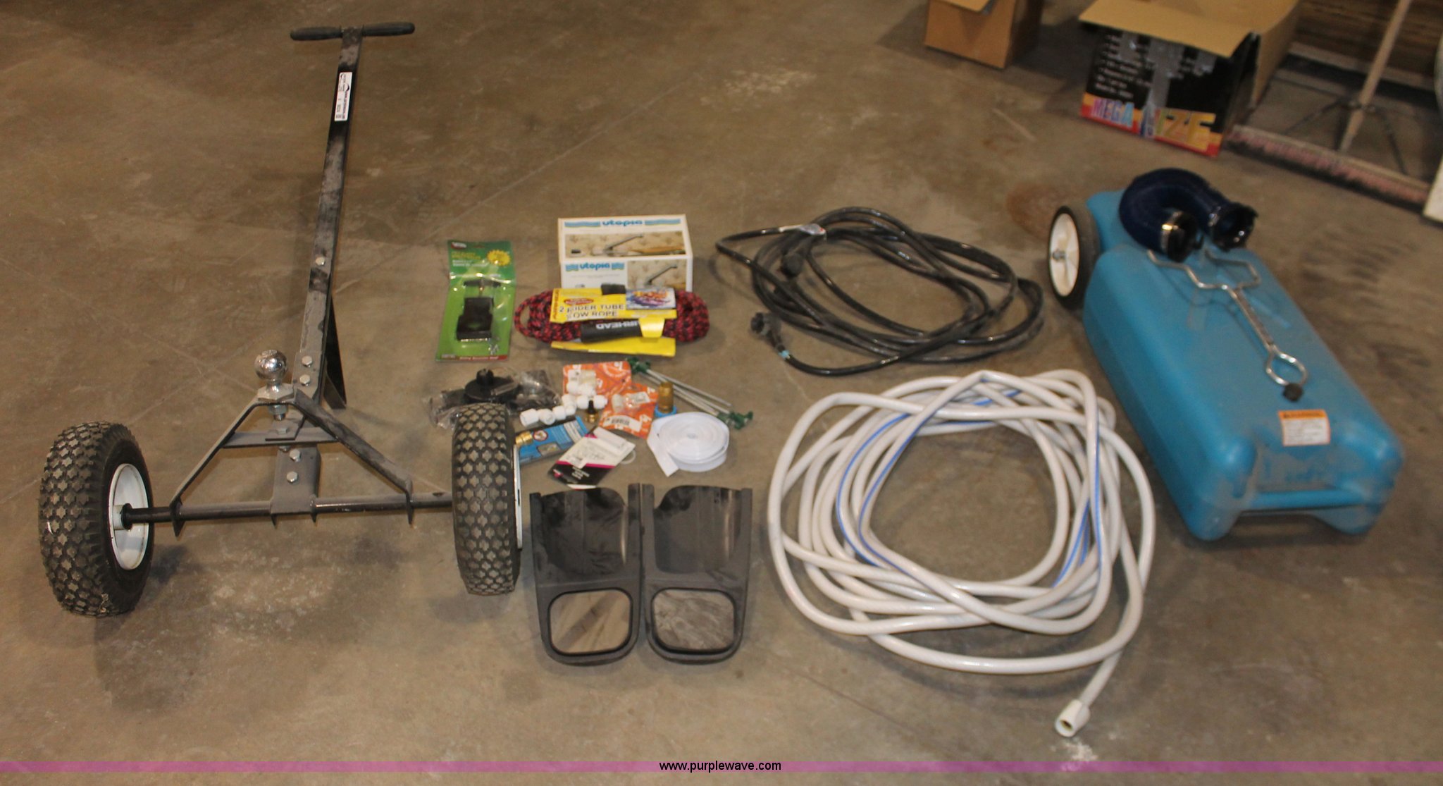Purple Wave is selling a used Sporting Goods in Kansas. This item is a Assorted camping accessories with the following: 2" ball dolly, Two rider tube tow rope, Hose, 220V extension cord and more