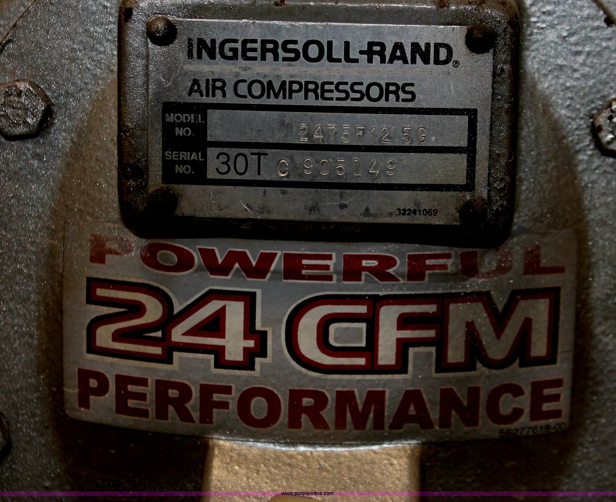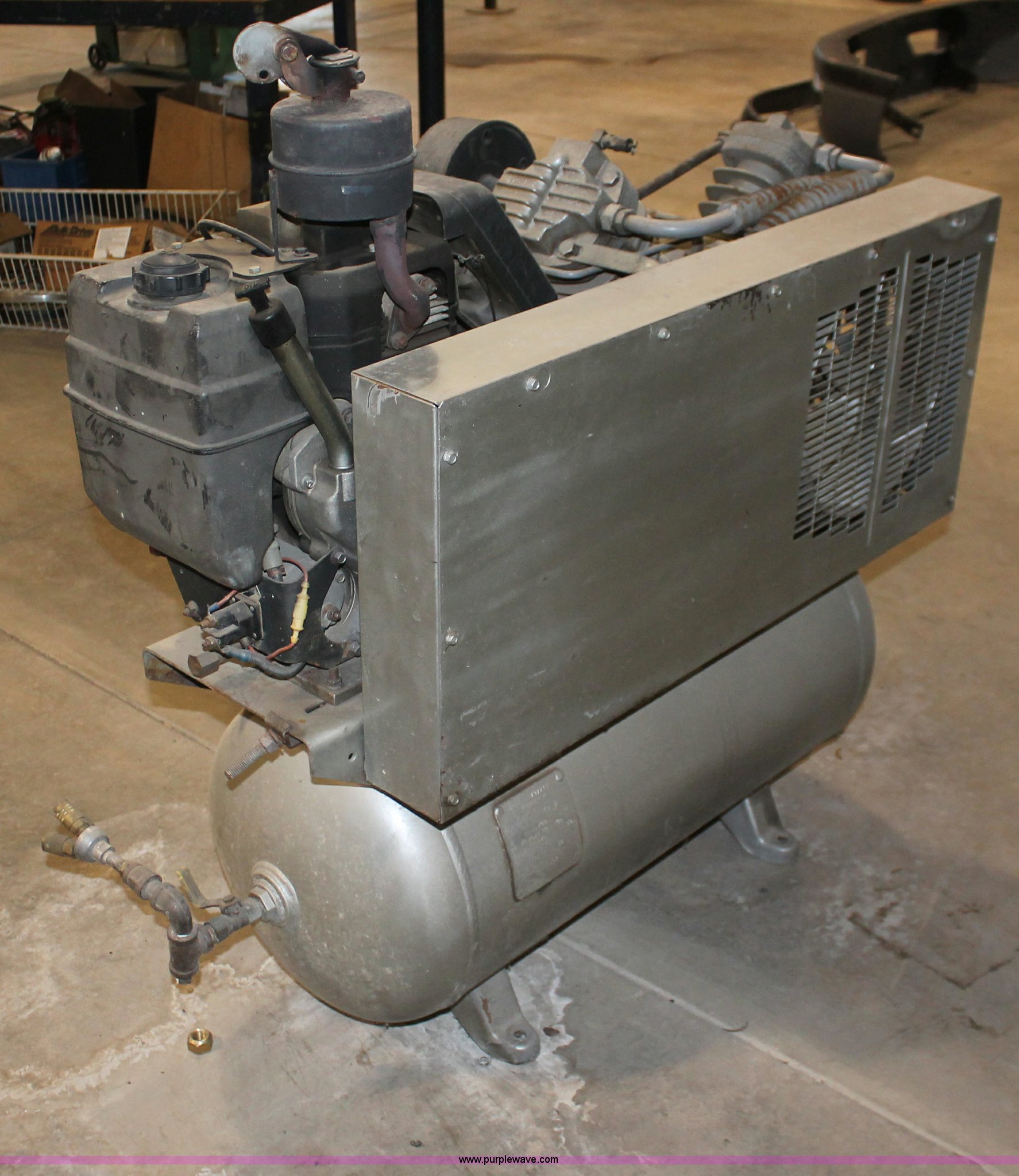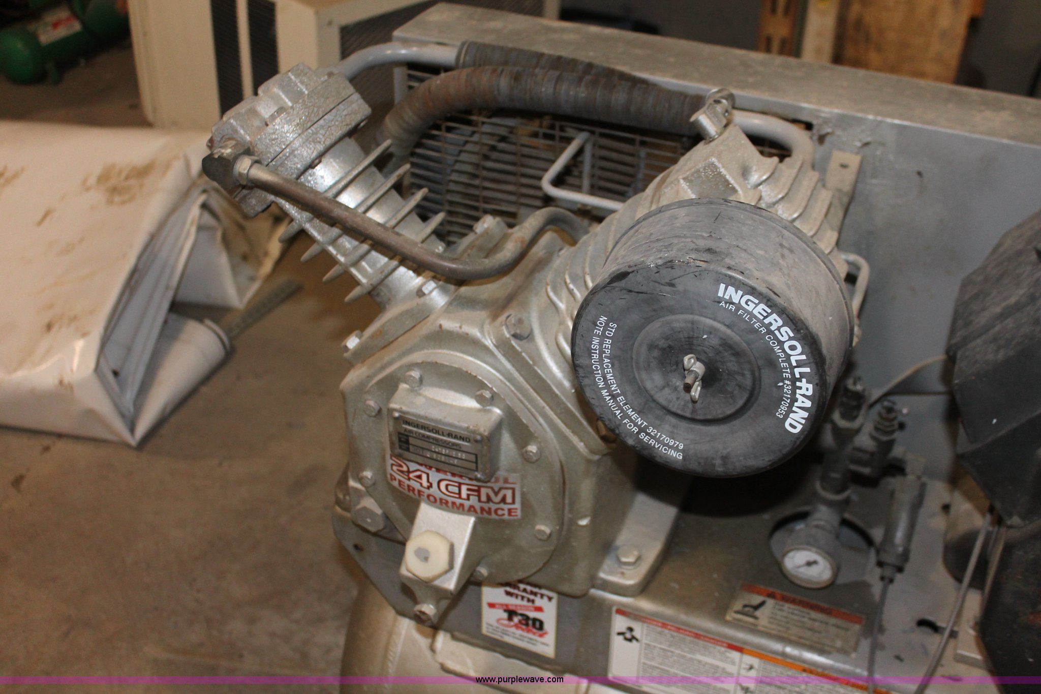Purple Wave is selling a used Air Compressor in Kansas. This item is a Ingersoll Rand T30 air compressor with the following: Kohler Command 12.5 HP gas engine, 24 cfm, Tri-tip outlet valve, Model 247SF12.5G, Serial 30TC905149