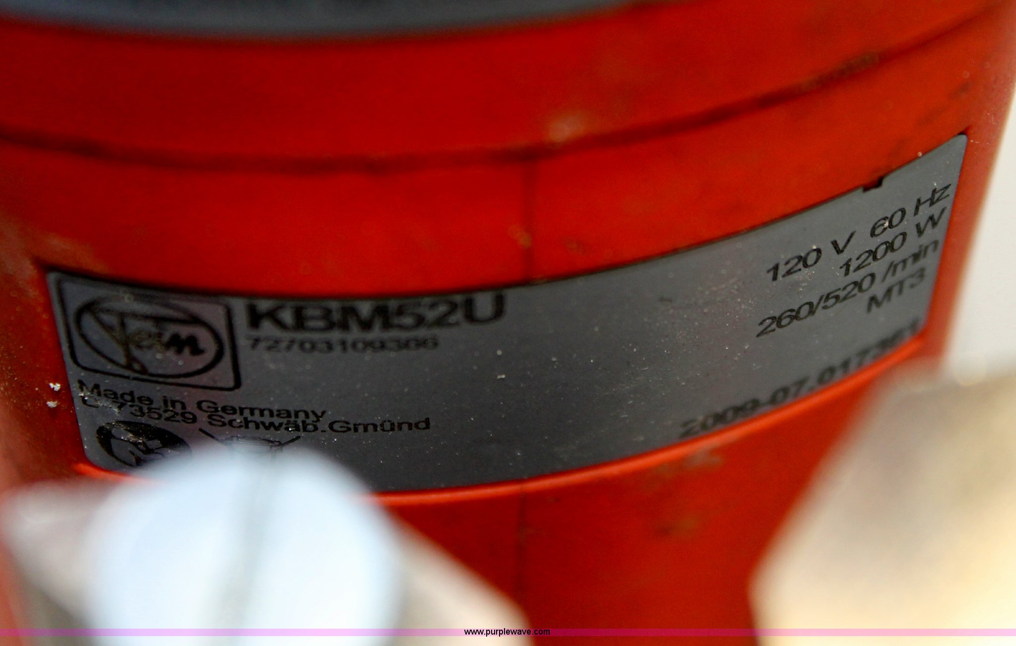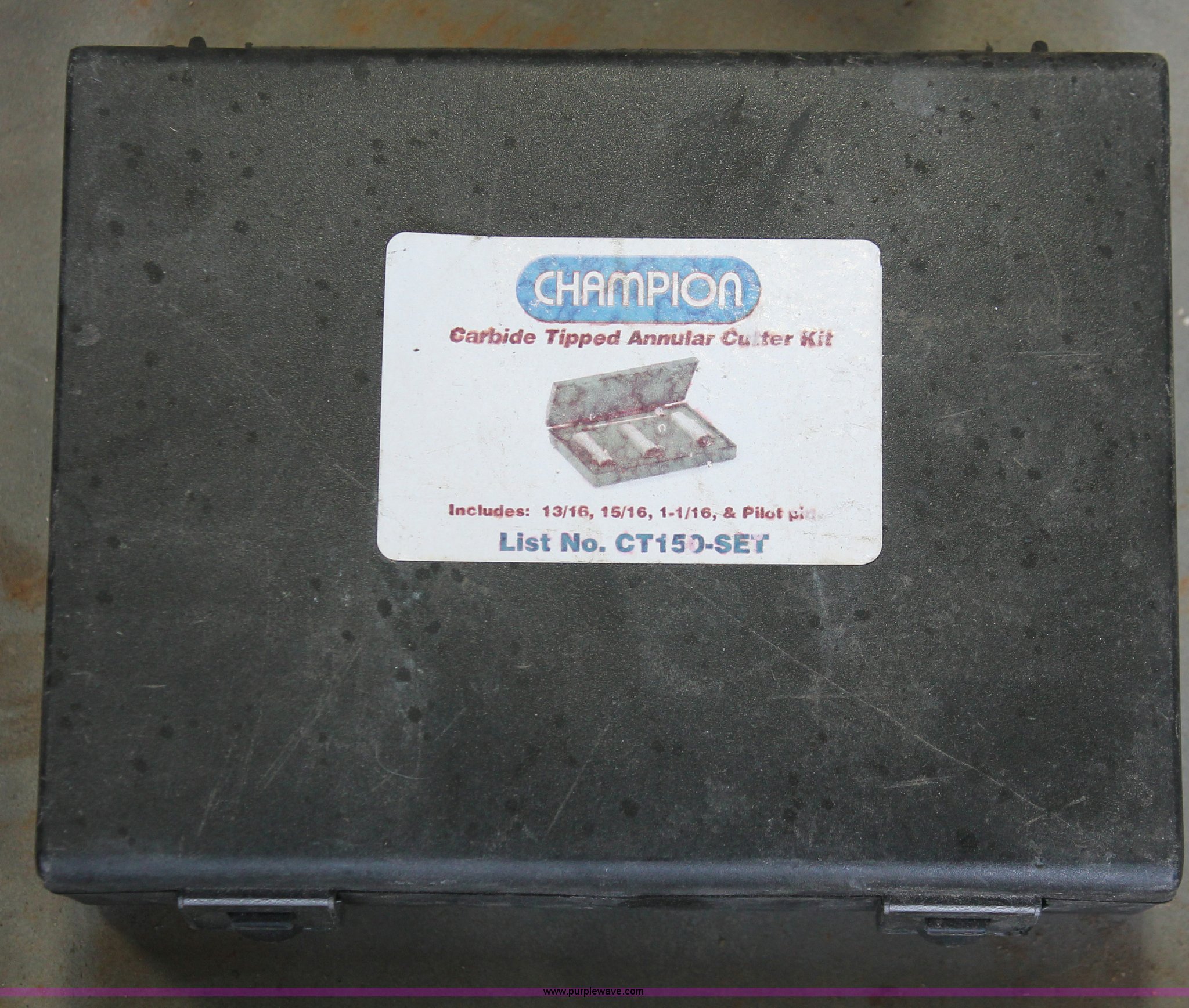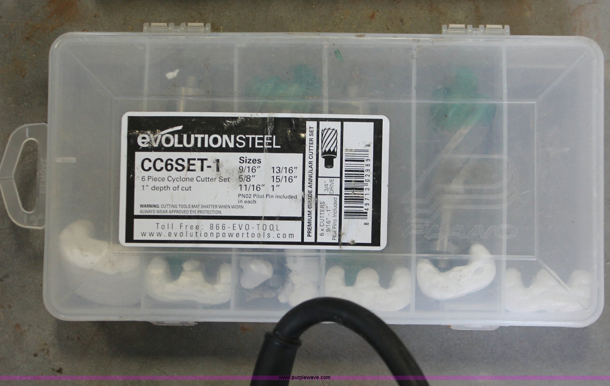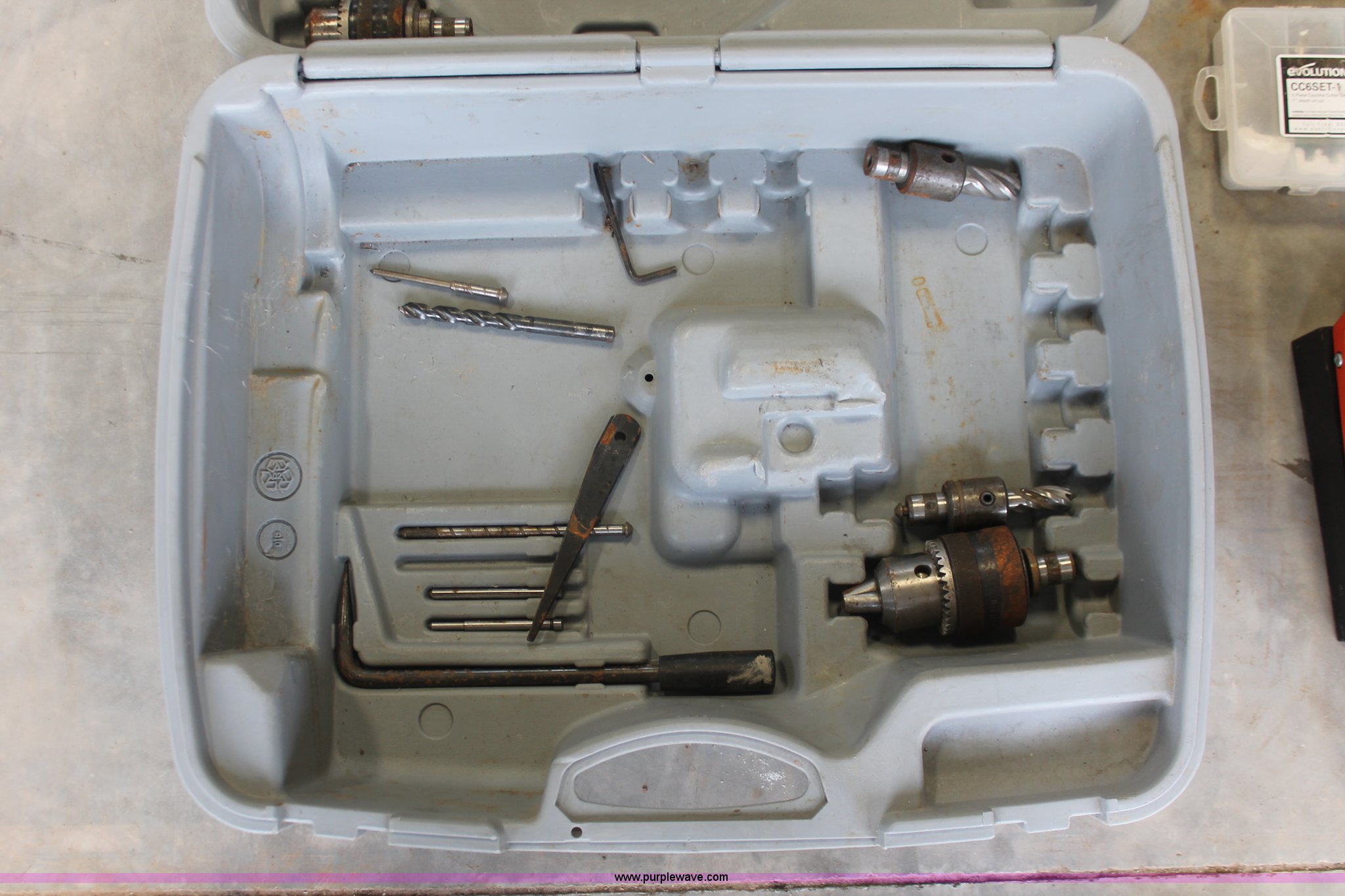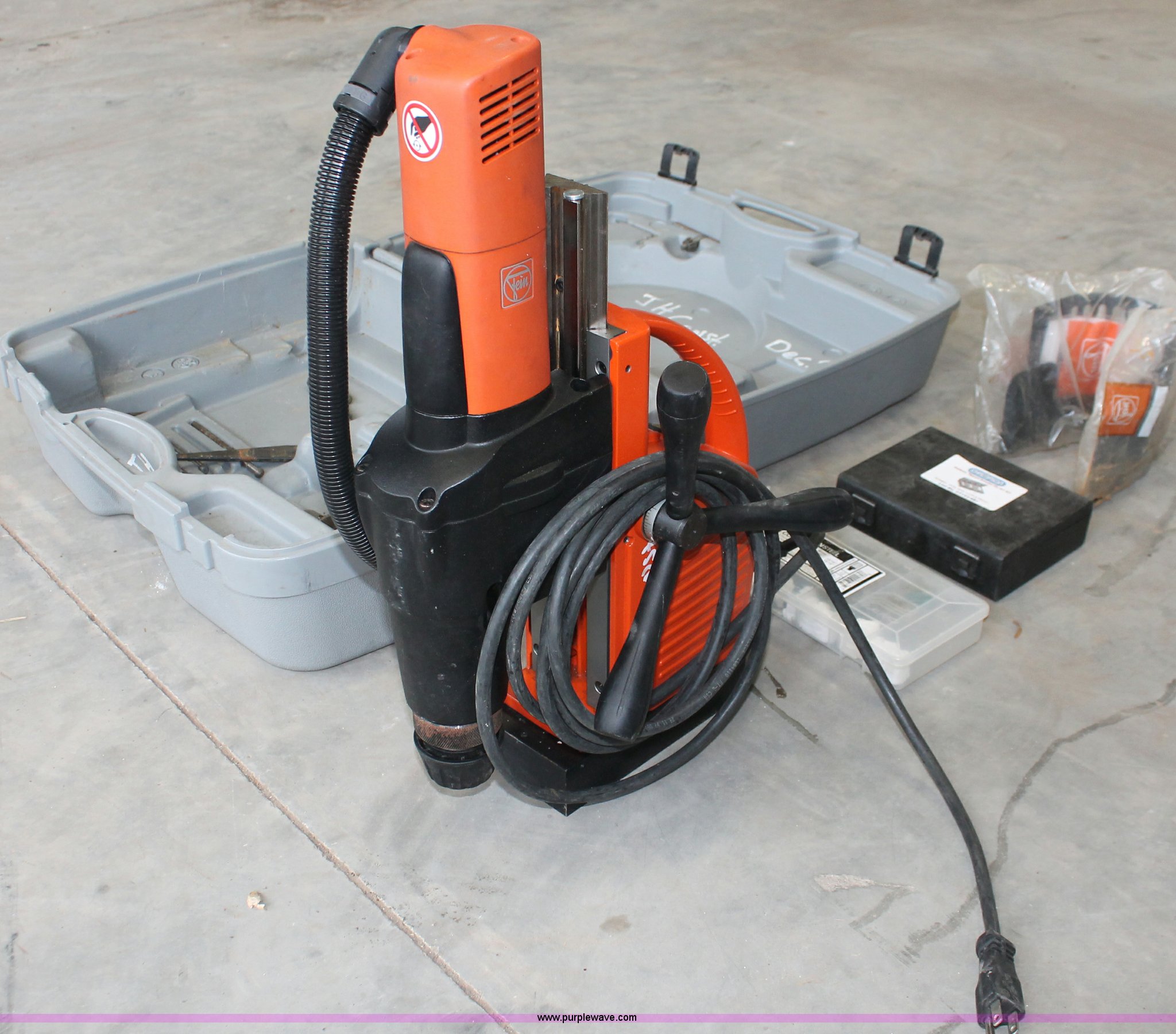 Purple Wave is selling a used Tools in Kansas. This item is a Fein portable magnetic drill with the following: 120V, 1,200 watt, KBM 524, Champion carbide tipped annular gutter kit, Evluation steel CL6SET-1 Cyclone cutter set, Cutting oil attachment, Additional drill bits and accessories included