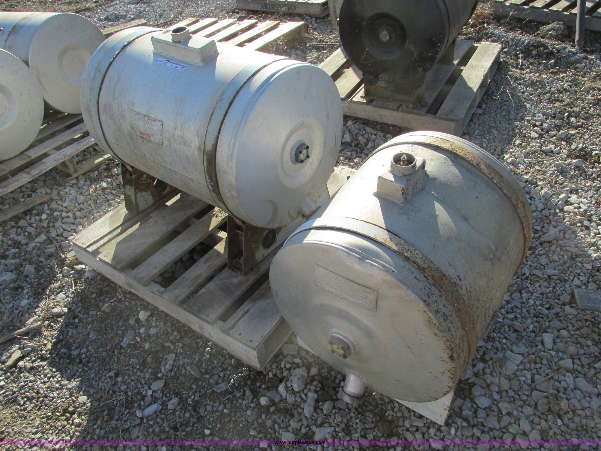 Purple Wave is selling a used Automotive Parts or Acces. in Missouri. This item is a (2) aluminum fuel tanks with the following: 30 gallon, 50 gallon, Cosmetic damage