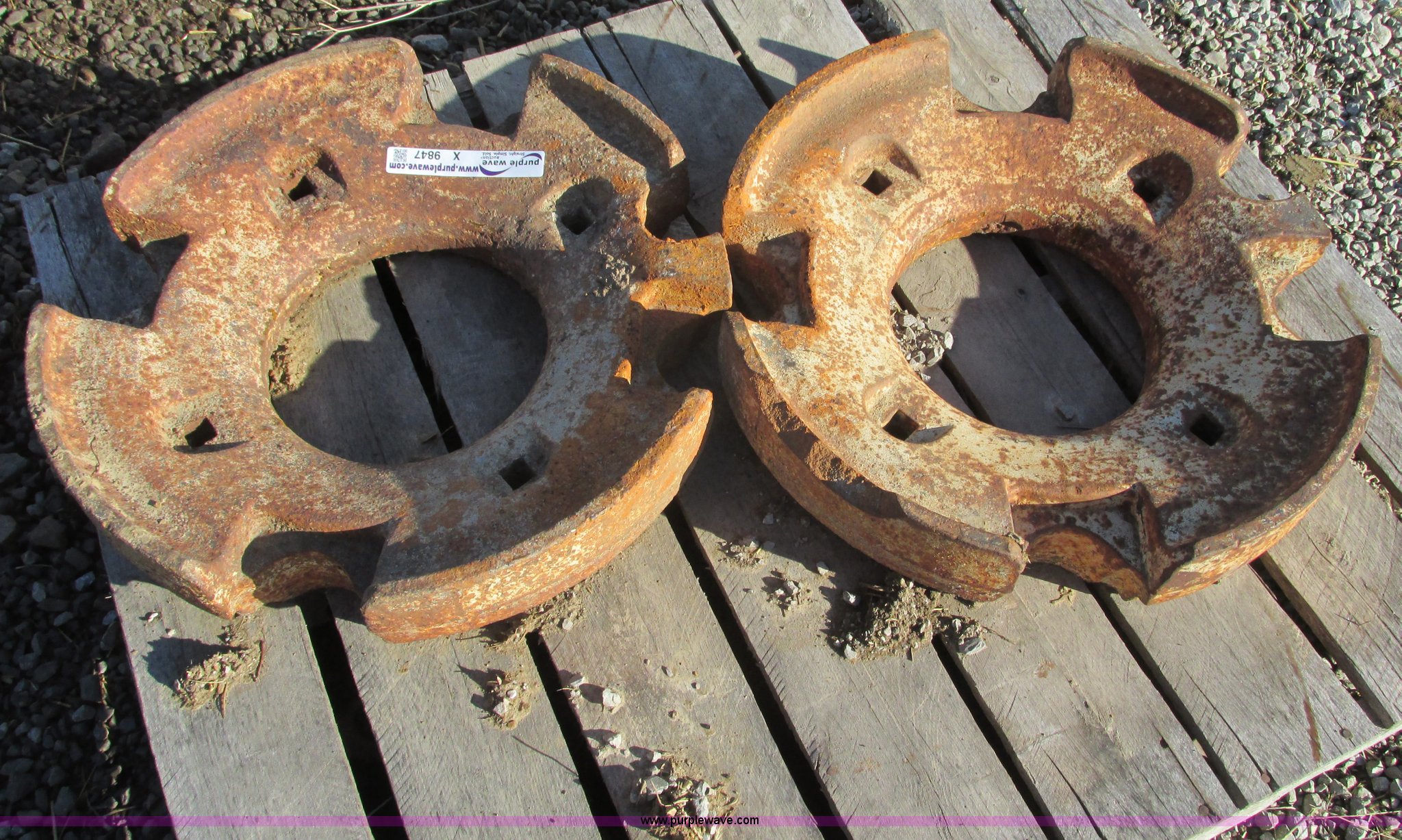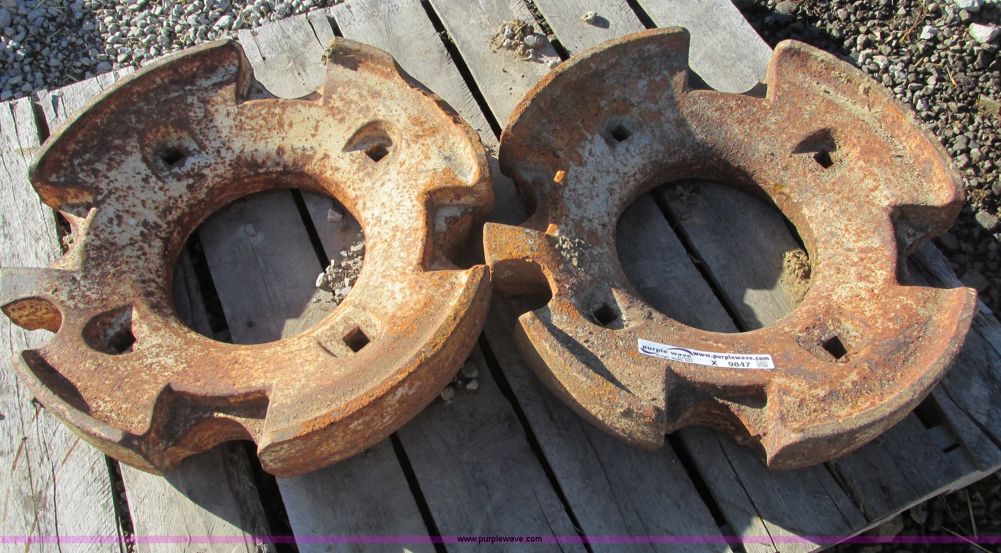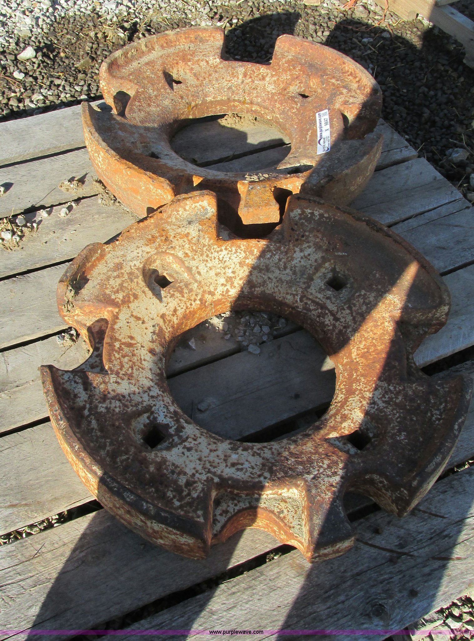 Purple Wave is selling a used Ag Tractor Loader or Attach. in Missouri. This item is a (2) wheel weights with the following: (2) wheel weights. Shipping quotes available. 19495 Bell Rd. Higginsville, MO 64037