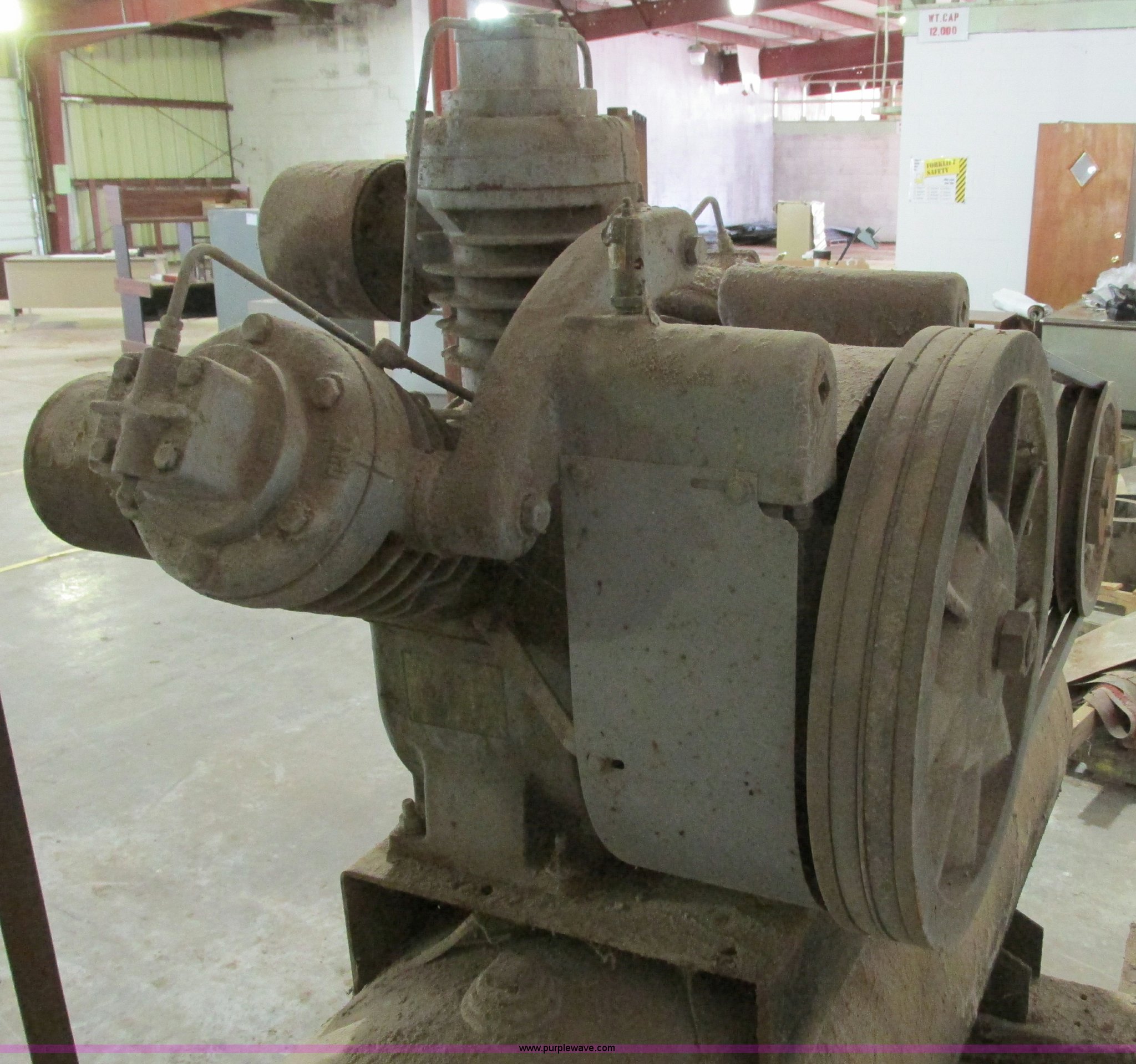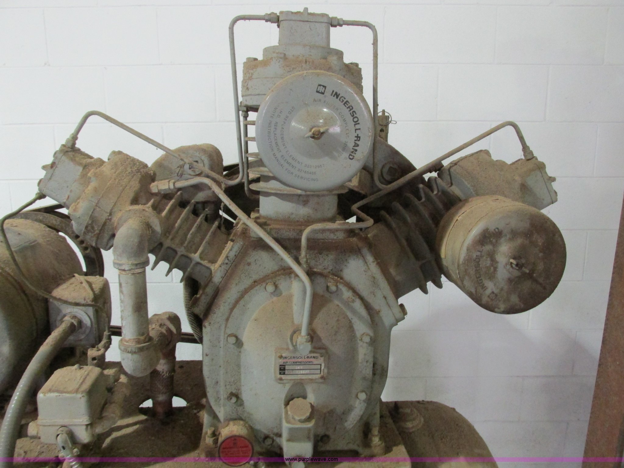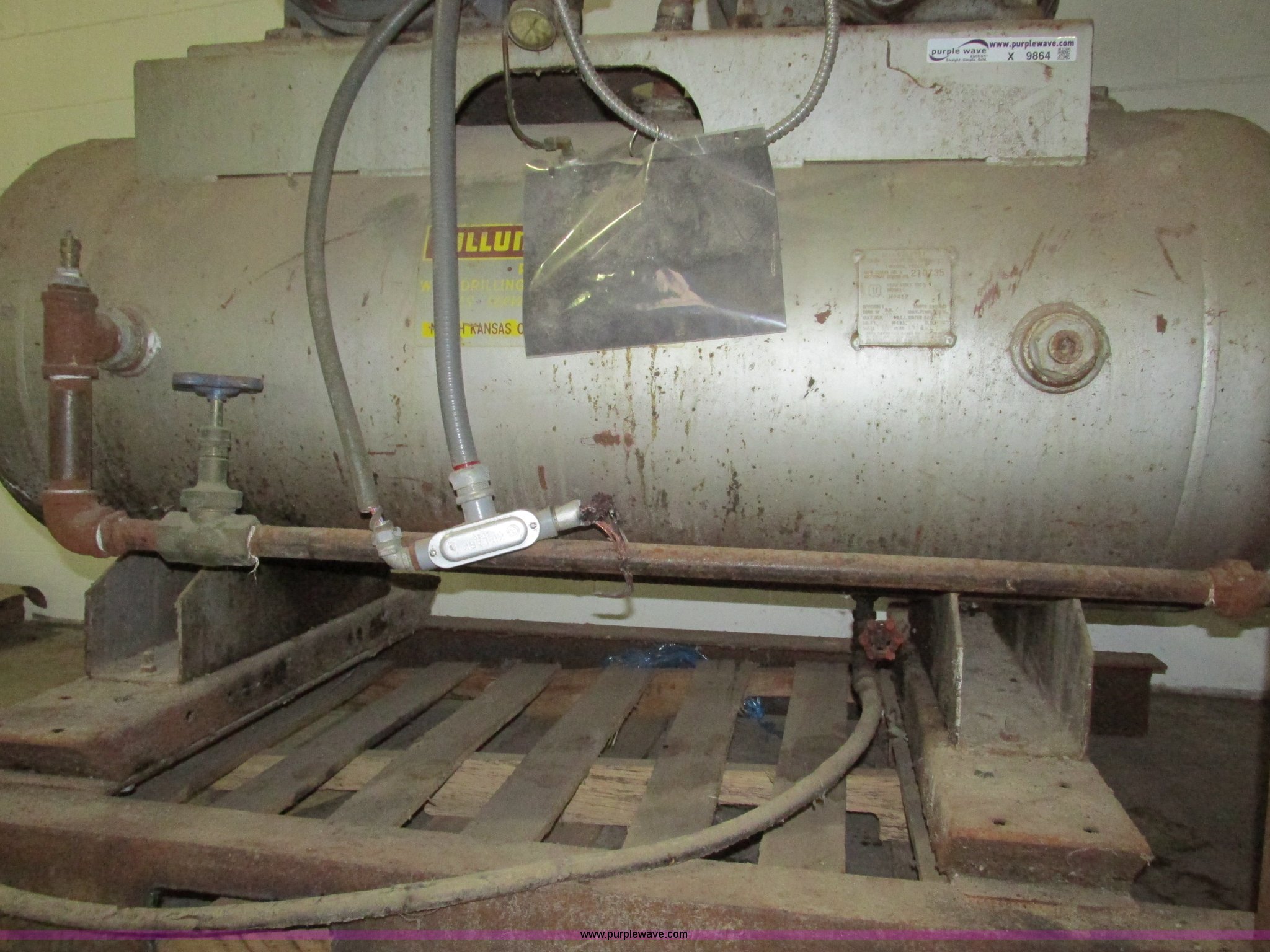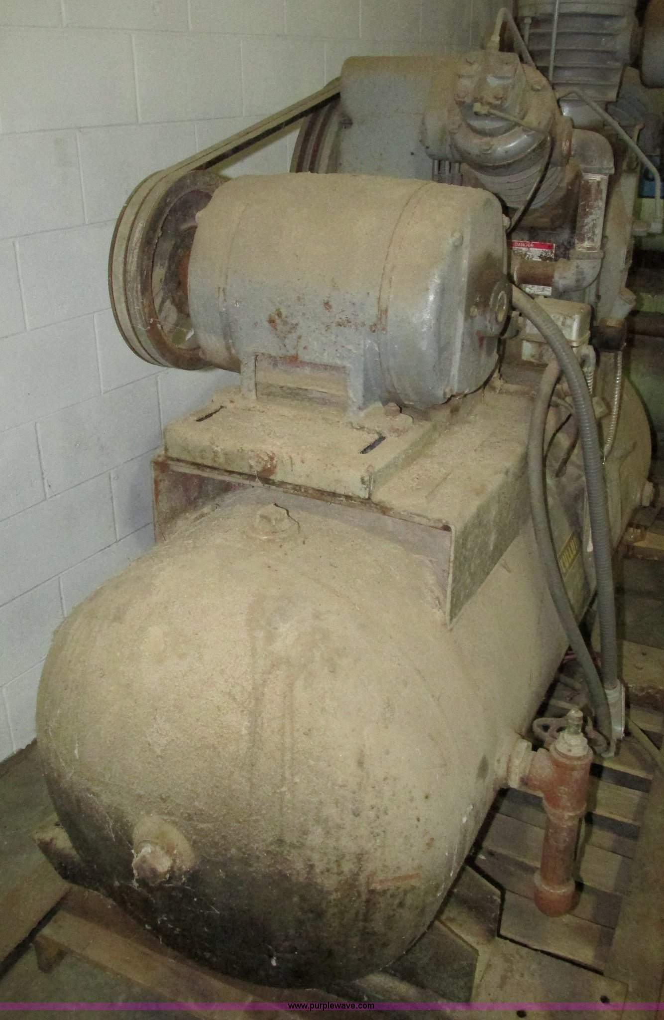 Purple Wave is selling a used Air Compressor in Missouri. This item is a Ingersoll Rand 15T three phase air compressor and tank with the following: Tank is approx. 5'L x 2" diameter, Serial 718877
