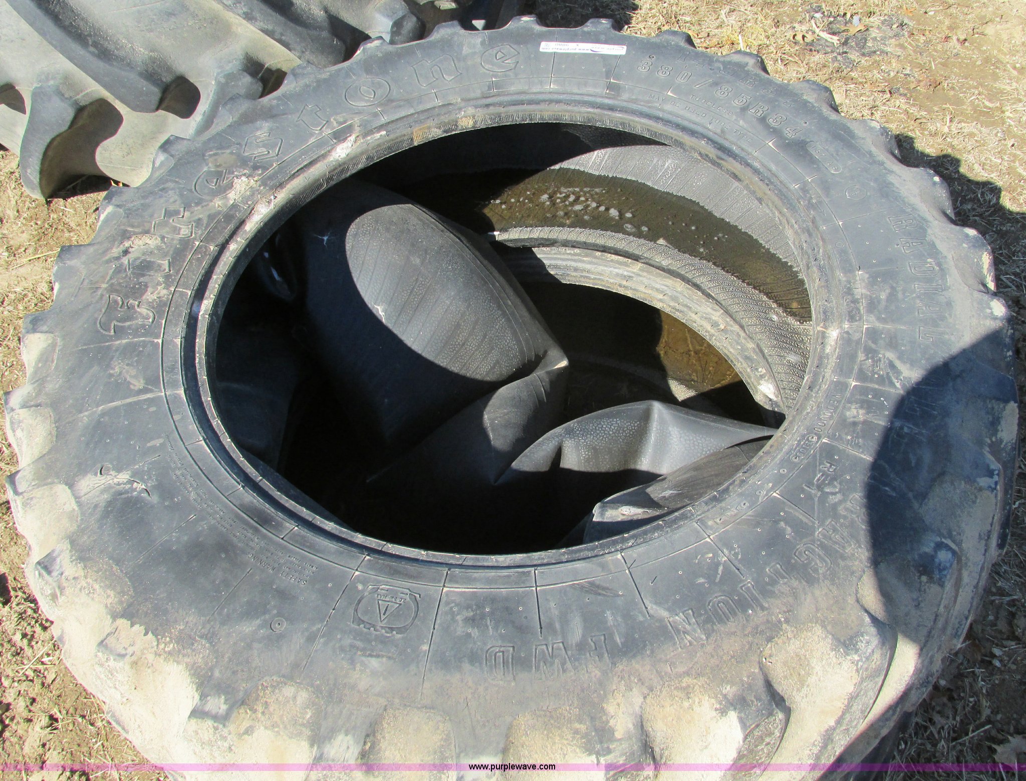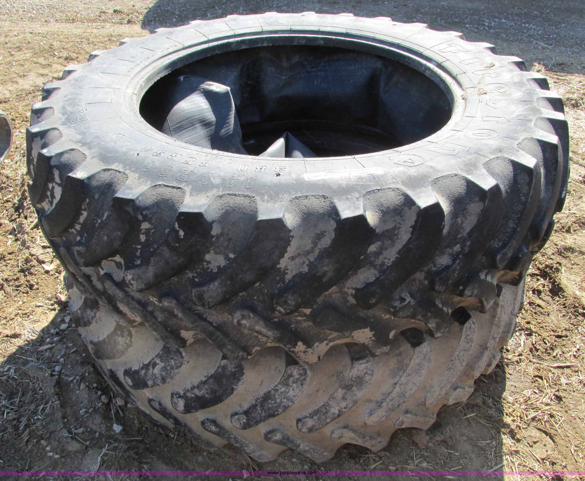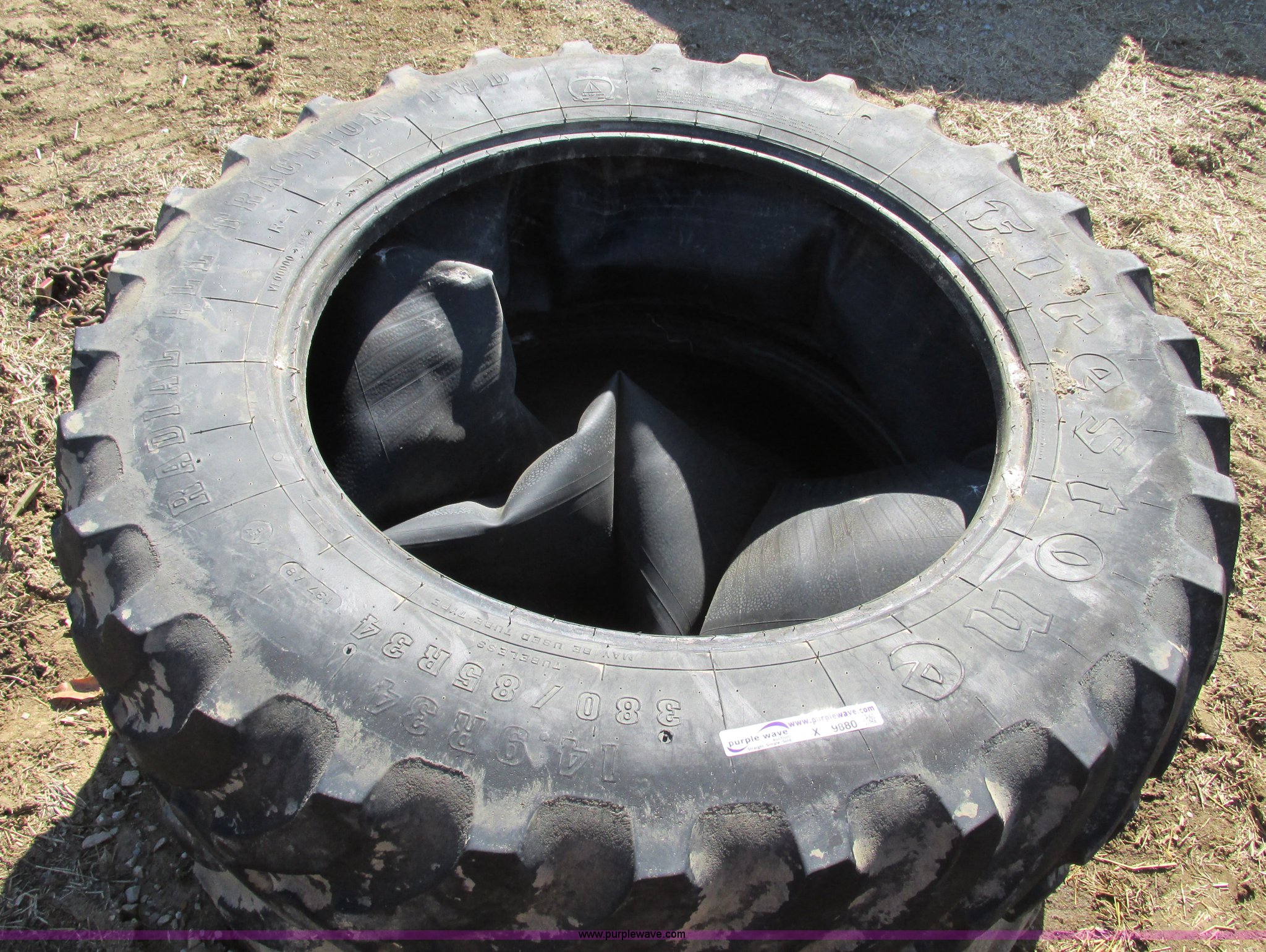 Purple Wave is selling a used Industrial Tires or Tracks in Missouri. This item is a Pair of used Firestone 14.9R34 Radial all traction tires with the following: Pair of used Firestone 14.9R34 Radial all traction tires. Shipping quotes available. 19495 Bell Rd. Higginsville, MO 64037