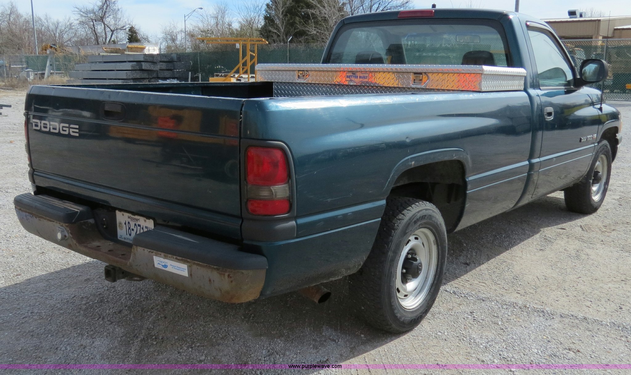 Purple Wave is selling a used Passenger Vehicle in Missouri. This item is a 1998 Dodge Ram 1500 pickup truck with the following: 198,939 miles on odometer, 3.9L V6 OHV 12V gas engine, Automatic transmission, AC and heat, Tilt, Cruise, AM/FM/cassette, Cloth interior, BetterBuilt cross bed aluminum toolbox, Receiver hitch, Trailer wiring, 225/75R16 tires, MoDOT ID B4497