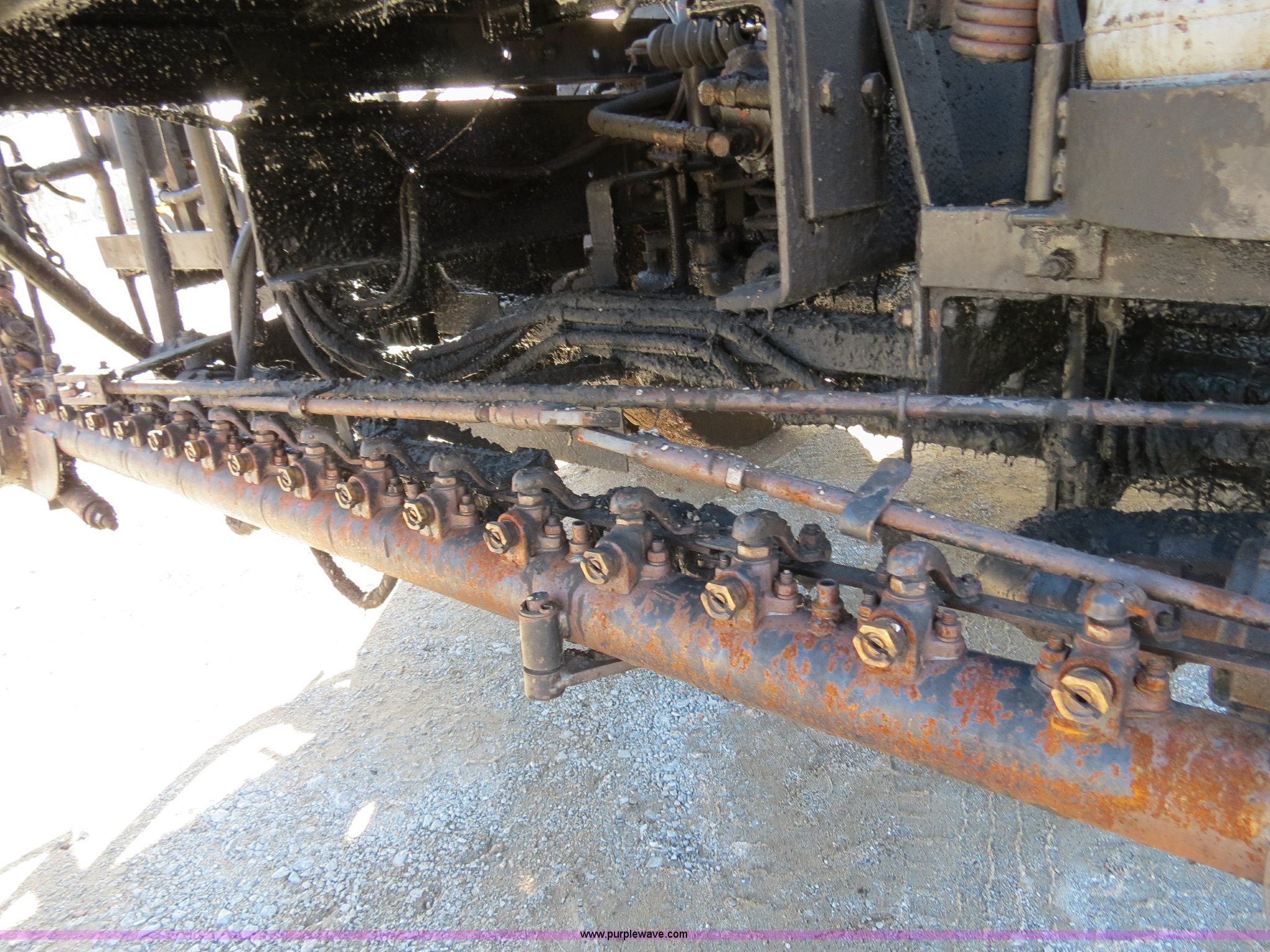 Purple Wave is selling a used Oil Distributor Truck in Missouri. This item is a 1991 Ford F800 oil distributor truck with the following: 103,488 miles on odometer, 5,993 hours on meter, Ford 7.8L L6 turbo diesel engine, Model 190, 190 HP, Six speed manual transmission, Heat, AM/FM/CD, Air suspension seat, Etnyre BX-HL Black-Topper bed, 1,090 gallon capacity, 13' oil spreader, 8'W base, 2' and 3' hydraulic wings, 4" nozzle spacing, Etnyre cab mounted controls, Serial C1078, 50 gallon fuel tank, Single rear exhaust stack, PTO, Spring suspension, Air brakes, 171" wheelbase, 9.00R20 tires, GVWR 27,080 lbs, CB radio will be removed, MoDOT ID G7674