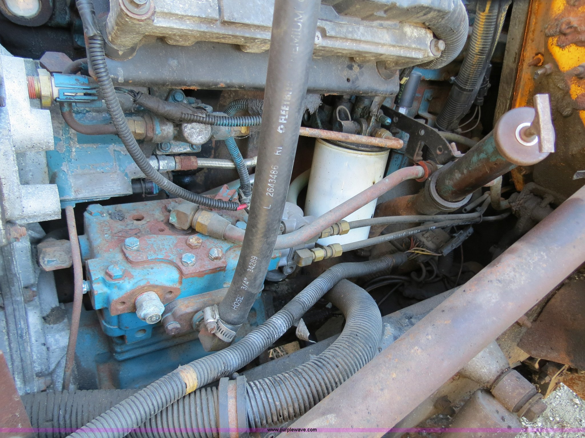 Purple Wave is selling a used Construction Dump Truck in Missouri. This item is a 1999 International 4900 dump truck with the following: 148,357 miles on odometer, 8,434 hours on meter, International DT466 7.6L L6 diesel engine, Eaton Fuller eight speed manual transmission, AC and heat, Tilt, Cruise, AM/FM, Air suspension seat, Heated mirrors, Spreadrite GL400 cab control, 16' steel bed, Single ram, Hydraulic couplers on bed, Roll over tarp, Front floodlights, Block heater, 50 gallon fuel tank, Spring suspension, PTO, Front PTO, Air brakes, 206" wheelbase, 315/80R22.5 front tires, 11R22.5 rear tires, Missing drive shaft and drive line pieces, MoDOT ID 5936