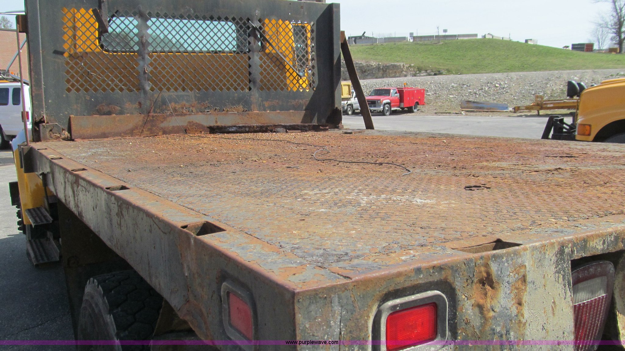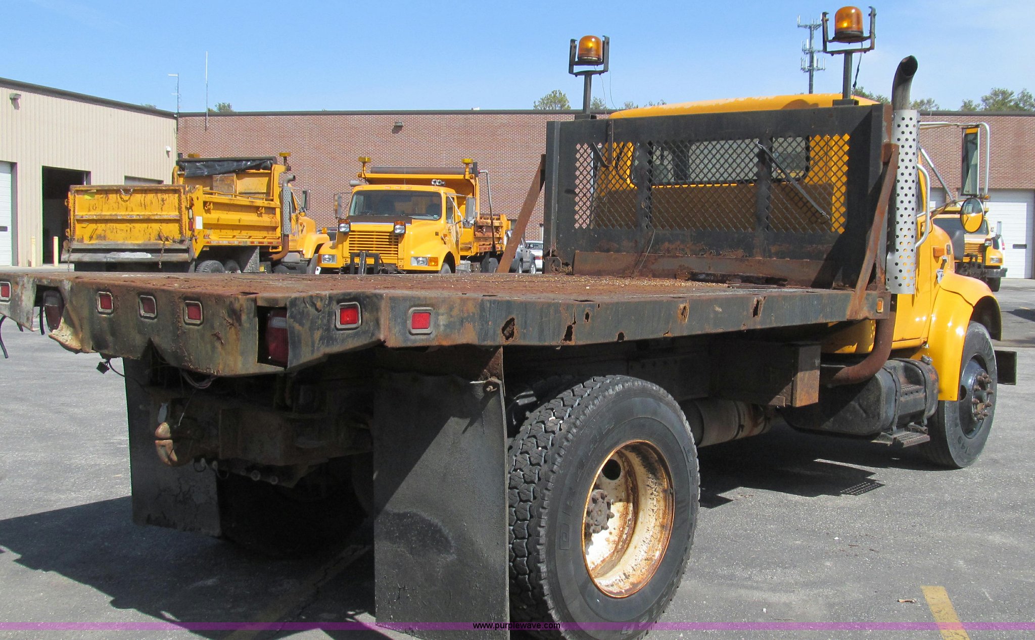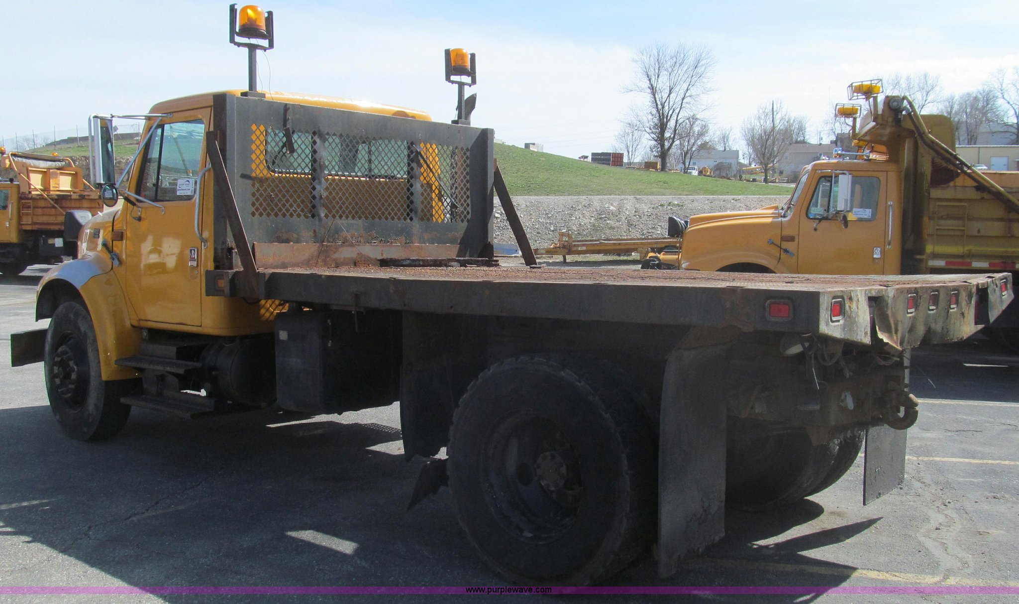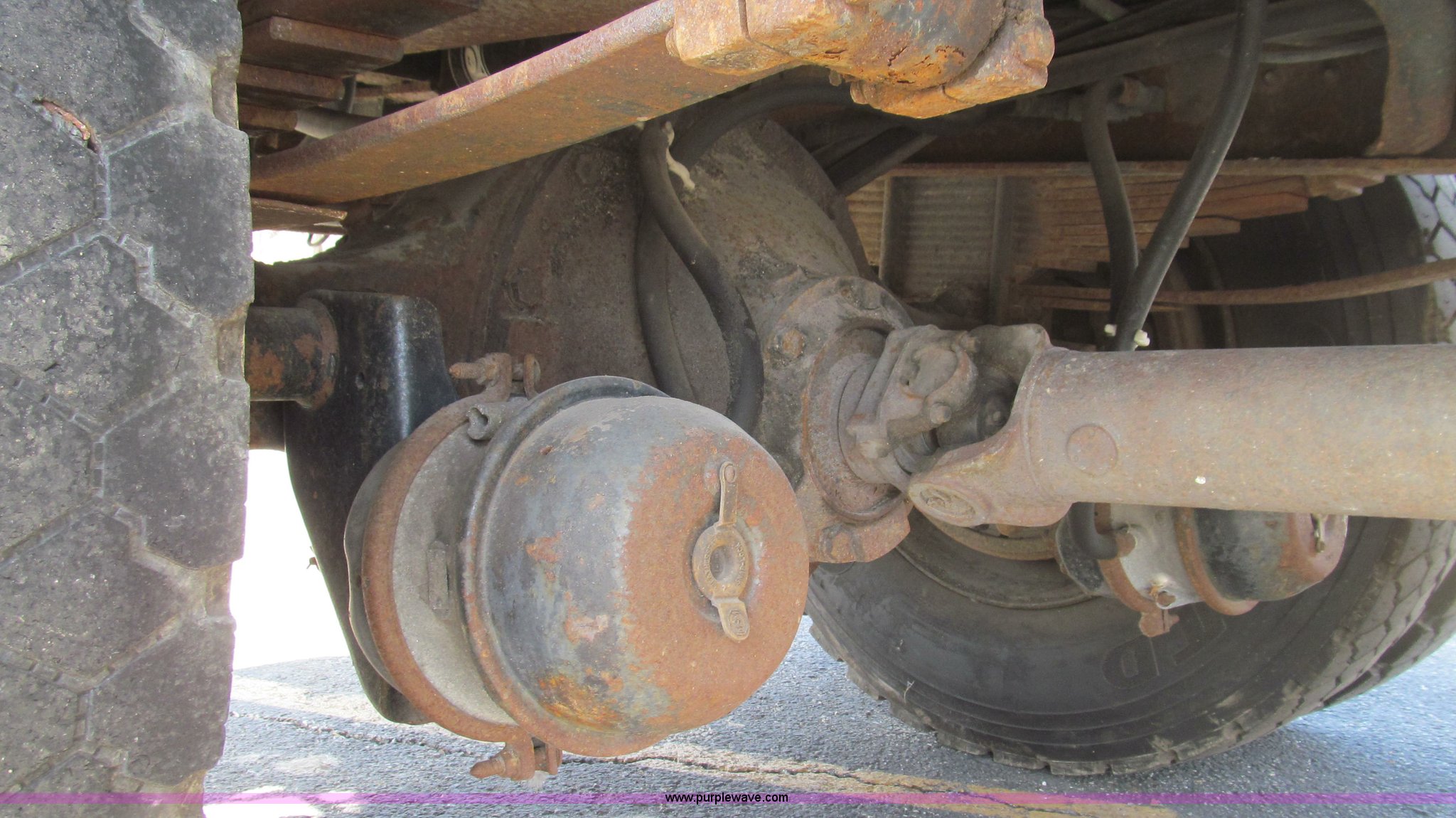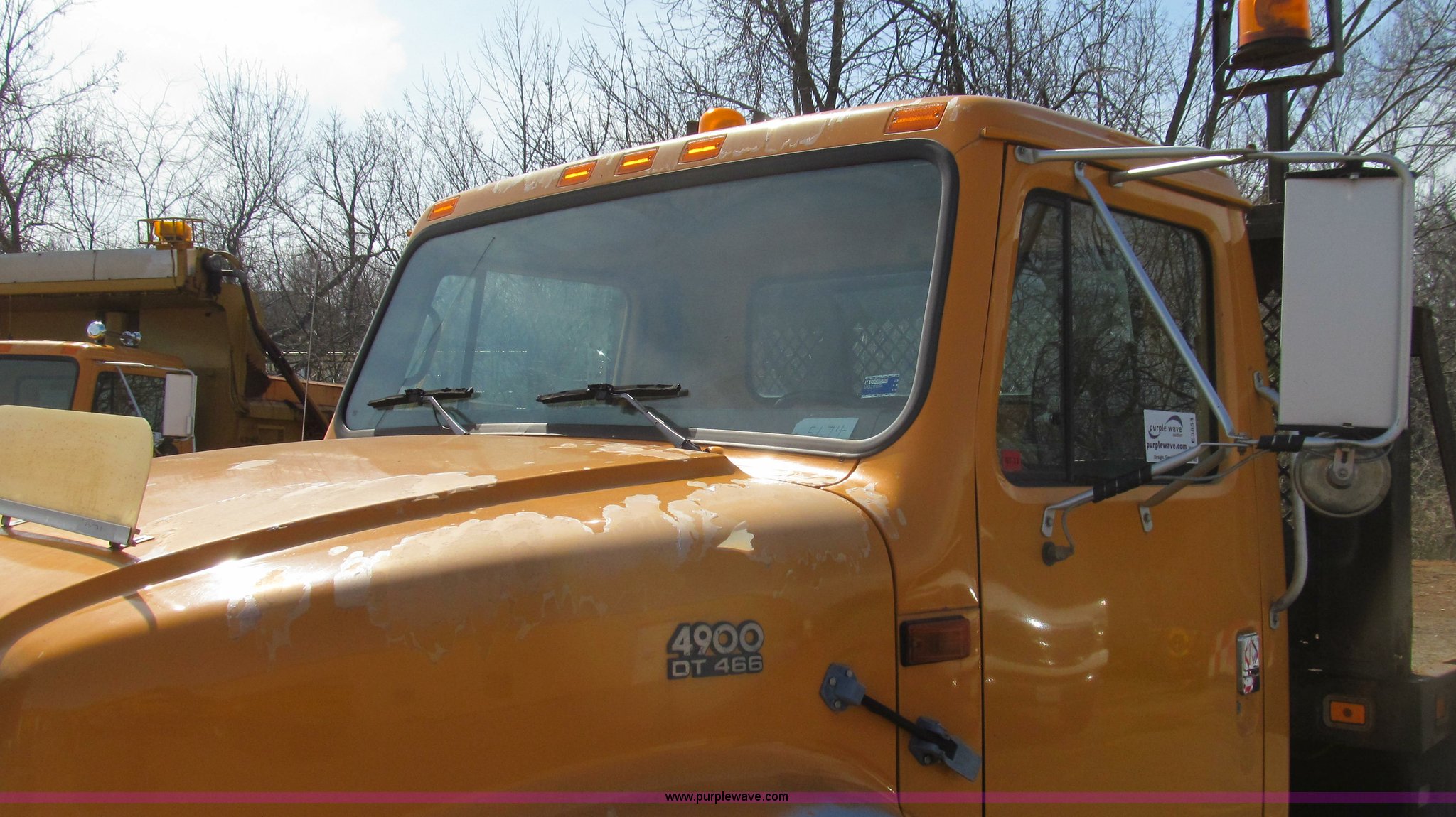 Purple Wave is selling a used Construction Dump Truck in Missouri. This item is a 1997 International 4900 dump truck with the following: 107,012 miles on odometer, 4,903 hours on meter, International DT466 7.6L L6 diesel engine, Allison five speed automatic transmission, Heat, AM/FM, Air suspension seat, Trailer brake controller, 12'L flatbed, Single ram hoist, Headache rack, Equipped for snow plow, Plow lights, Dual beacon lights, 50 gallon fuel tank, Trailer wiring, Pintle hitch, PTO, Spring suspension, Air brakes, 170" wheelbase, 11R22.5 tires, Windshield chipped, Clear coat peeling, Bad steering drag link, Driver's seat worn, Unit# 5674