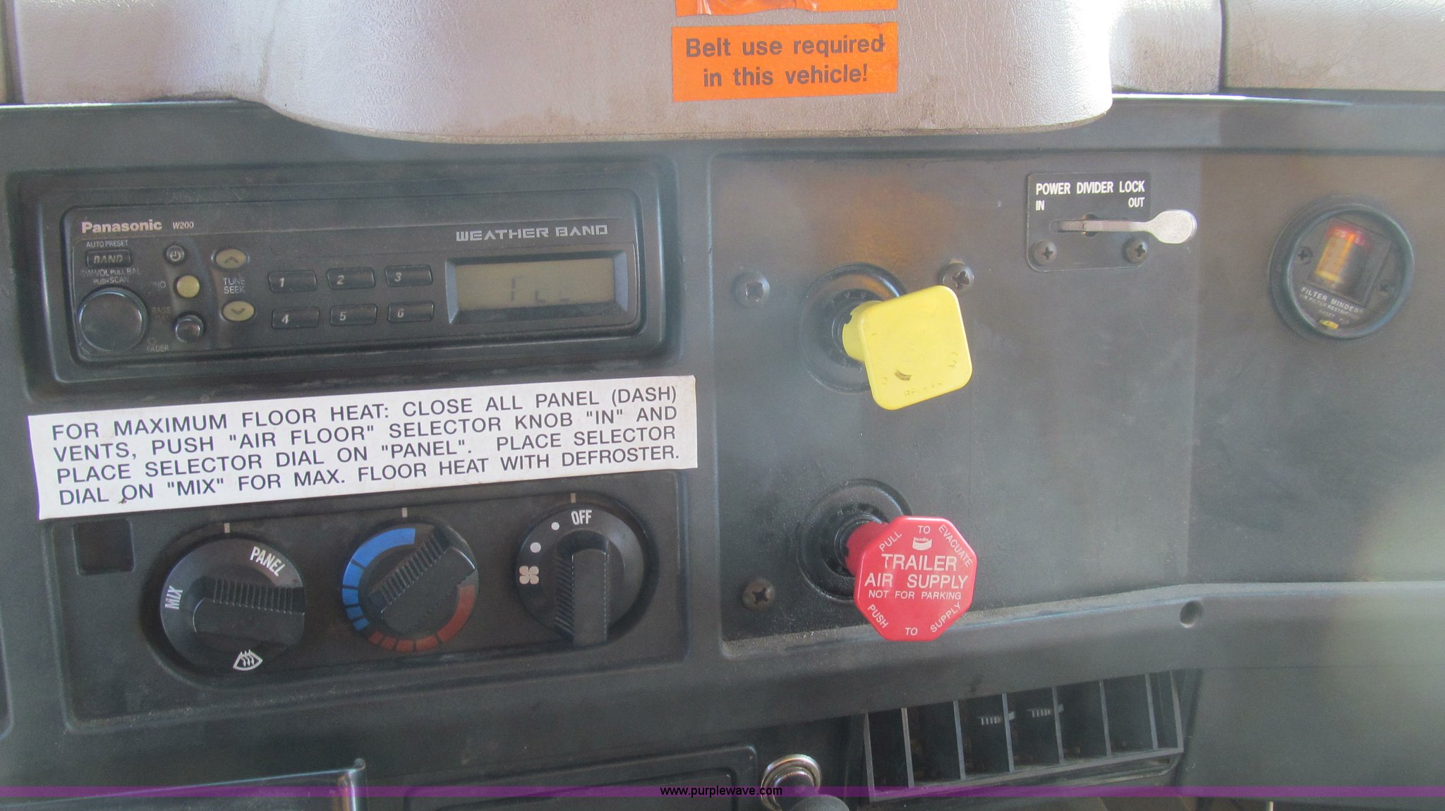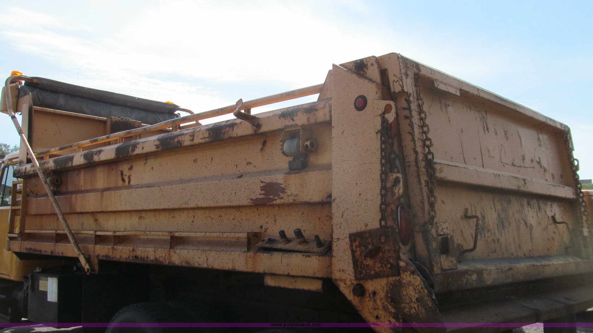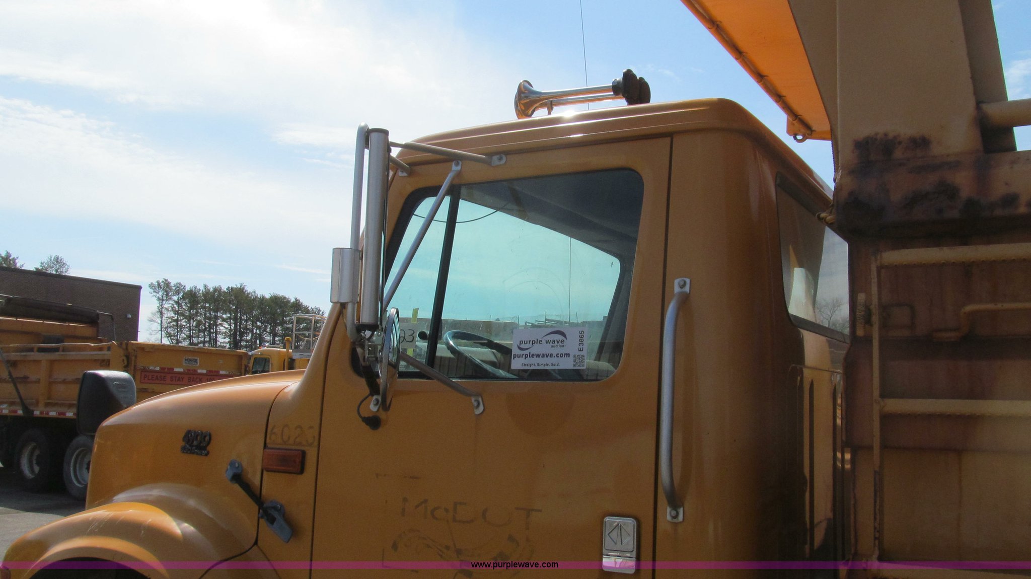 Purple Wave is selling a used Construction Dump Truck in Missouri. This item is a 1999 International 4900 dump truck with the following: 189,957 miles on odometer, 10,451 hours on meter, International DT530 8.7L L6 diesel engine, Allison six speed automatic transmission, Heat, Cruise, AM/FM/cassette, Air suspension seat, 16'L dump bed, Single ram hoist, Electric rollover tarp, Snow plow equipped, Front mounted plow lights, Dual beacon lights, 70 gallon fuel tank, PTO, Trailer wiring, Pintle hitch, Spring suspension, Air brakes, 206" wheelbase, 315/80R22.5 front tires, 11R22.5 rear tires, Windshield chipped, Exterior cosmetic damage, Clear coat peeling, Exterior rust, Engine has fuel leak, Oil leak, Fuel gauge inoperable, Driver's seat worn, Unit# 6023