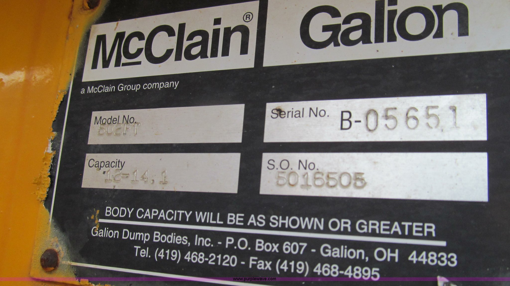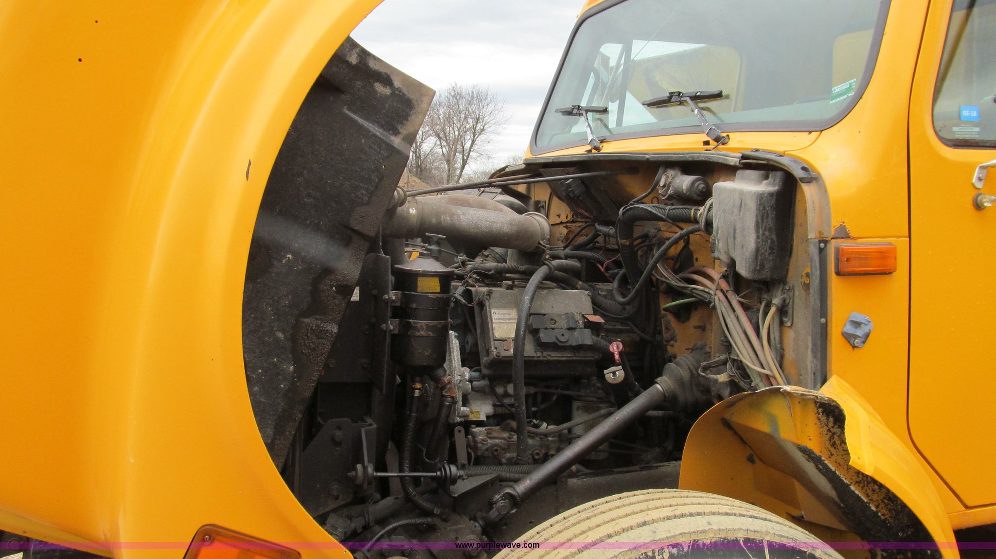 Purple Wave is selling a used Construction Dump Truck in Missouri. This item is a 1999 International 4900 dump truck with the following: 204,334 miles on odometer, 10,854 hours on meter, International DT530 8.7L L6 diesel engine, Allison automatic transmission, Twin screw, Heat, Cruise, AM/FM, Air suspension seat, McClain Galion 16'L bed, Single ram hoist, Air operated end gate, Electric rollover tarp, Dual front access ladders, Serial 5016505, Beacon lights, Equipped for snow plow, Underbelly plow, In-cab controls, 75 gallon fuel tank, Spring suspension, Air brakes, 206" wheelbase, 11R22.5 tires, GVWR 56,000 lbs, Bed rust, MoDOT ID 6027