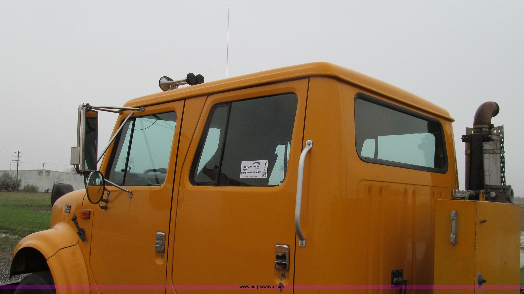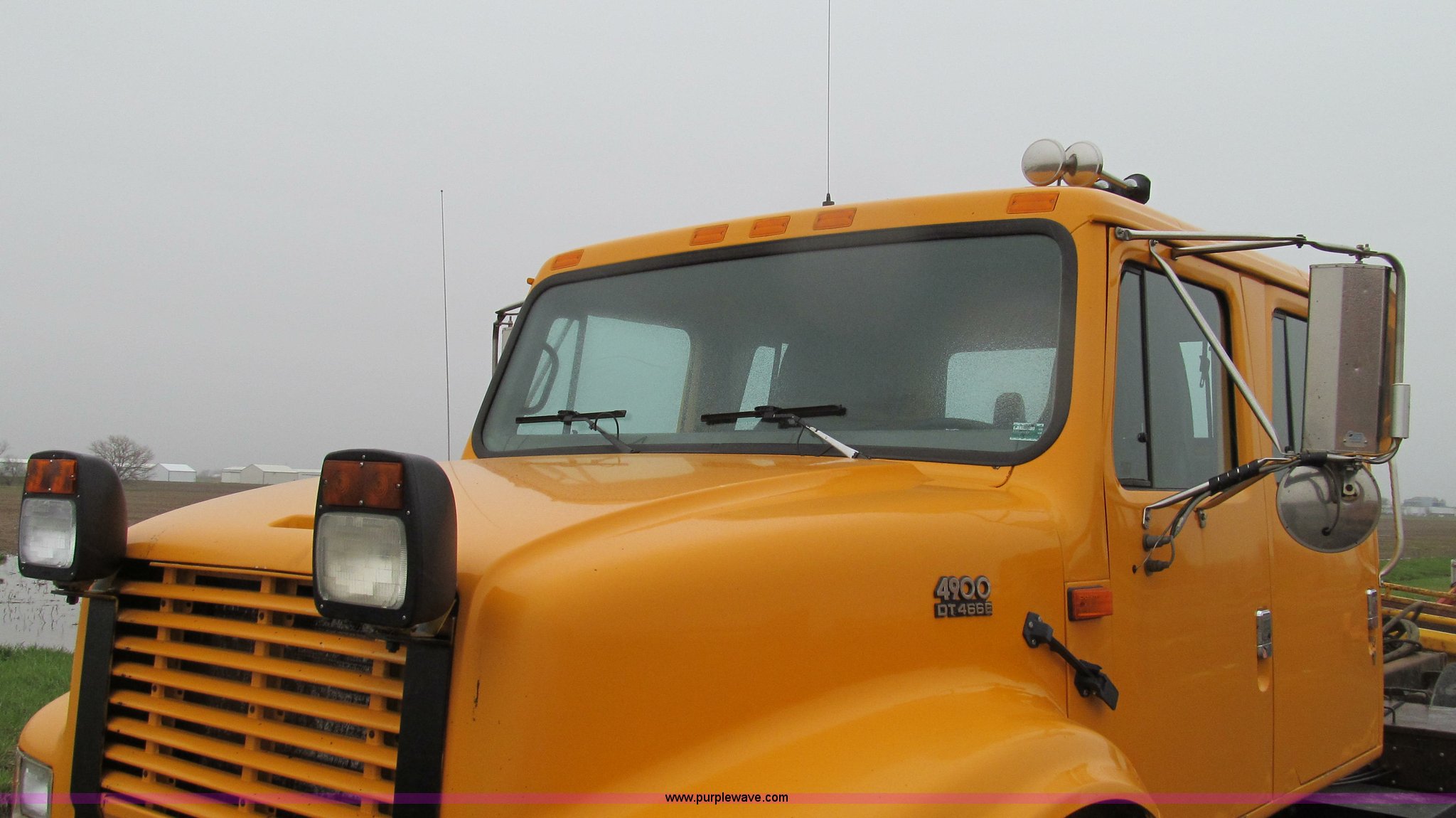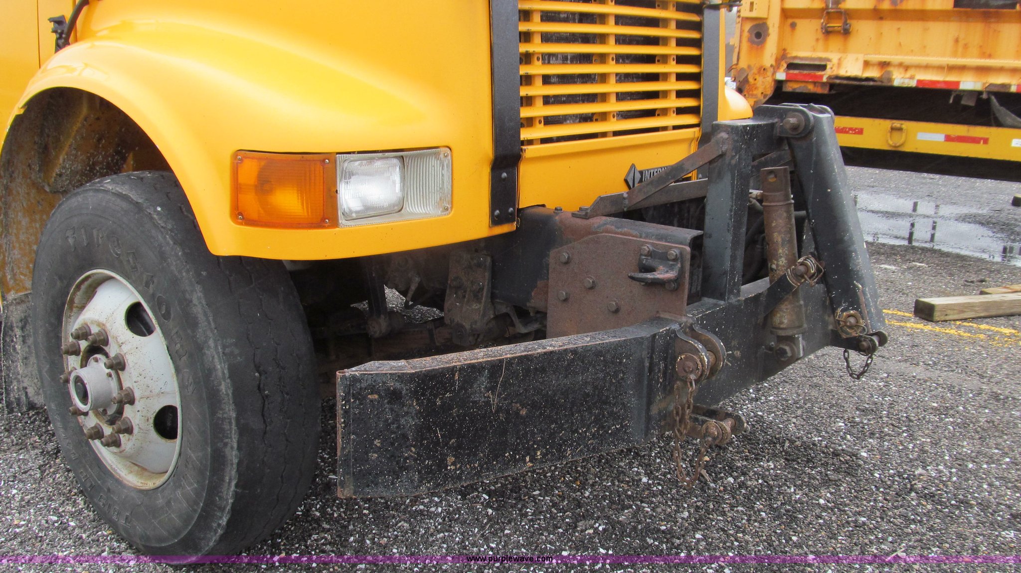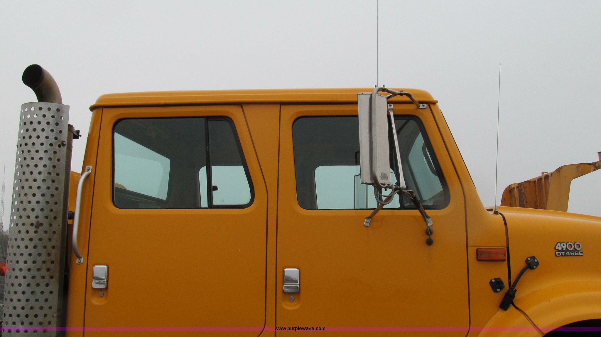 Purple Wave is selling a used Truck Tractor in Missouri. This item is a 2002 International 4900 CrewCab dump truck with the following: 146,628 miles on odometer, 10,084 hours on meter, International DT466 7.6L L6 diesel engine, Allison six speed automatic transmission, Heat, Cruise, AM/FM, Air suspension seat, Power windows, Heated mirrors, Equipped for snow plow, Plow lights, 75 gallon fuel tank, Trailer wiring, Pintle hitch, Wet kit, Rear tow hooks, Boot box, Spring suspension, Air brakes, 206" wheelbase, 11R22.5 tires, MoDOT ID 6554