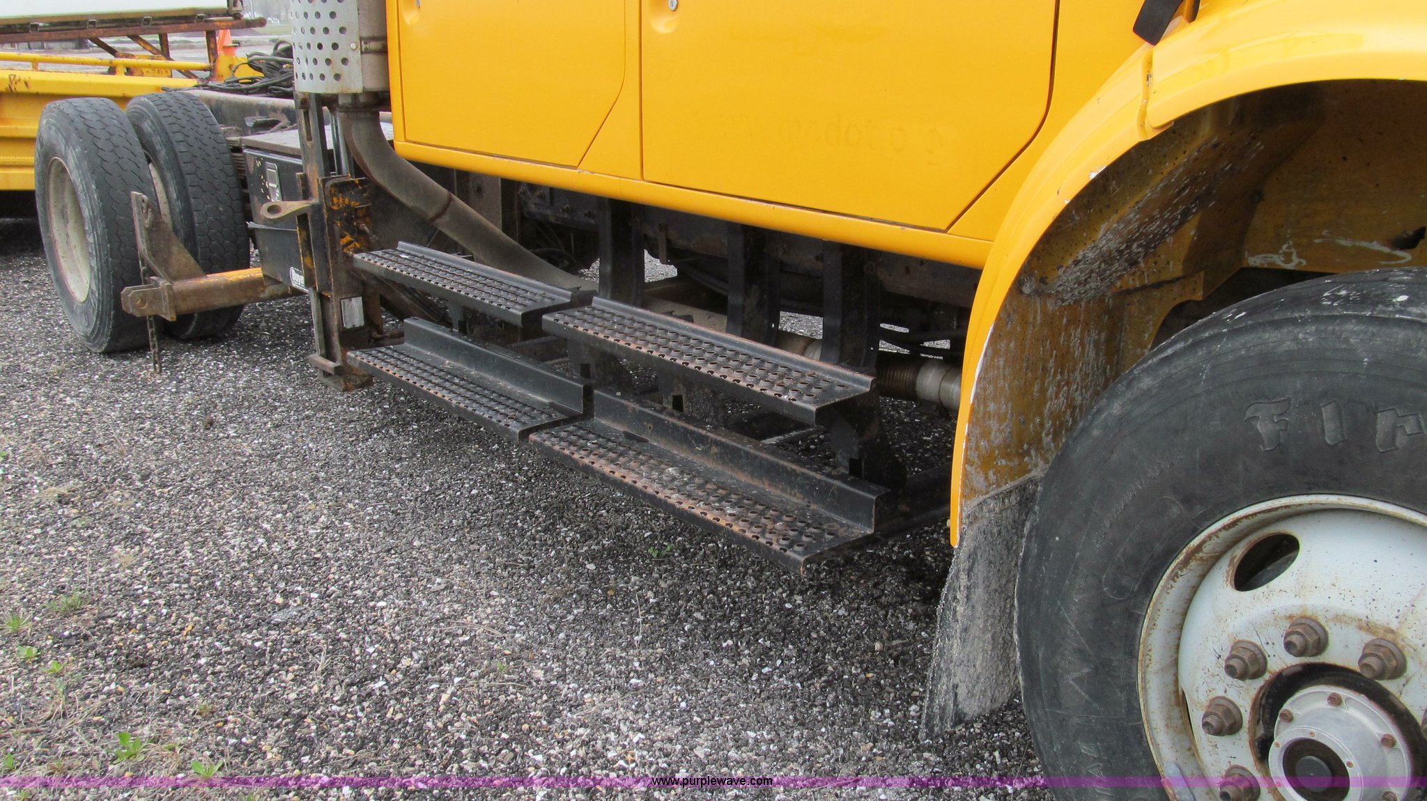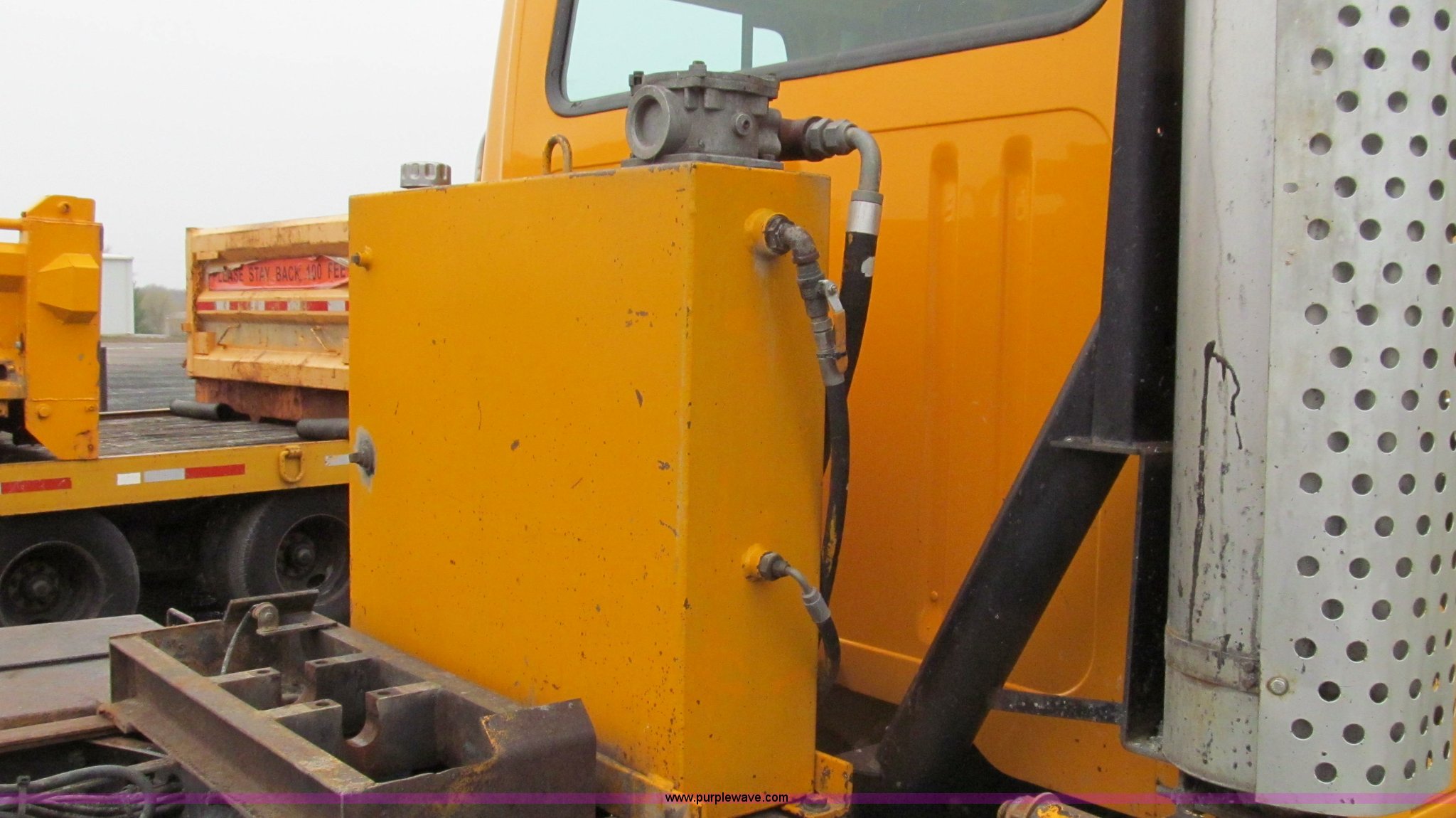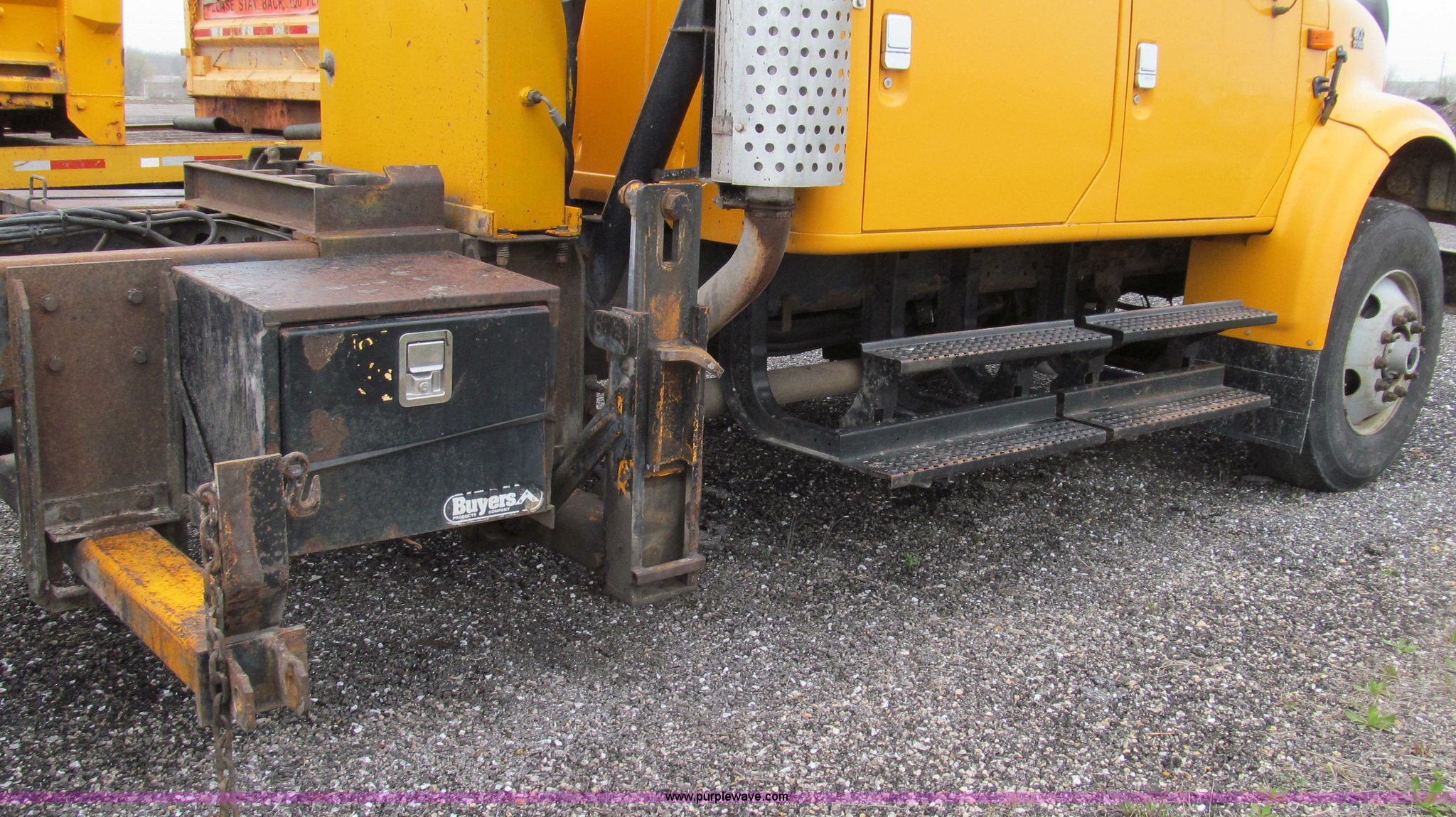 Purple Wave is selling a used Truck Tractor in Missouri. This item is a 2002 International 4900 CrewCab dump truck with the following: 146,628 miles on odometer, 10,084 hours on meter, International DT466 7.6L L6 diesel engine, Allison six speed automatic transmission, Heat, Cruise, AM/FM, Air suspension seat, Power windows, Heated mirrors, Equipped for snow plow, Plow lights, 75 gallon fuel tank, Trailer wiring, Pintle hitch, Wet kit, Rear tow hooks, Boot box, Spring suspension, Air brakes, 206" wheelbase, 11R22.5 tires, MoDOT ID 6554