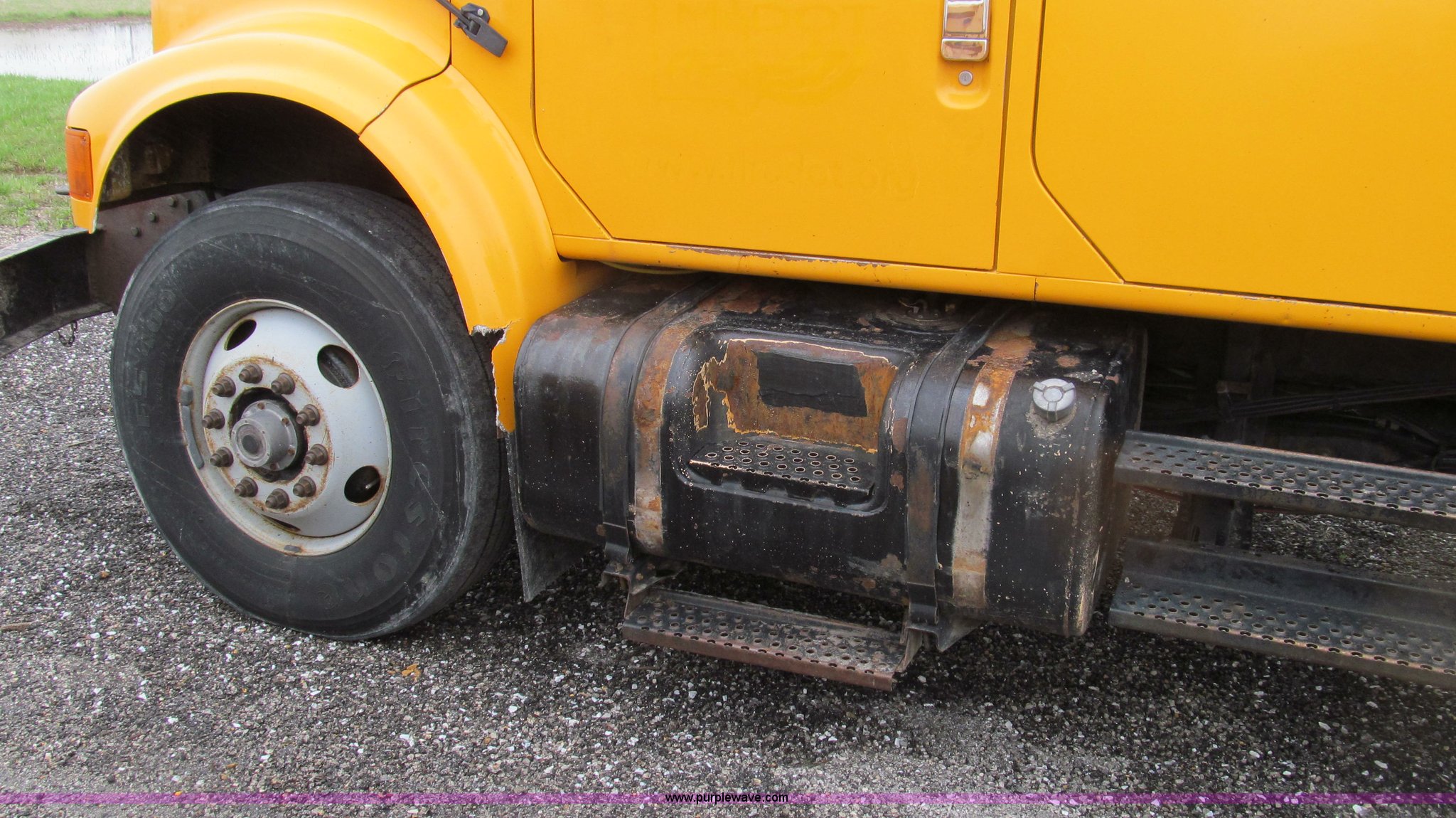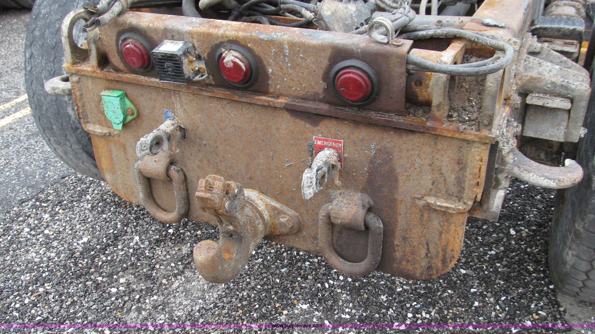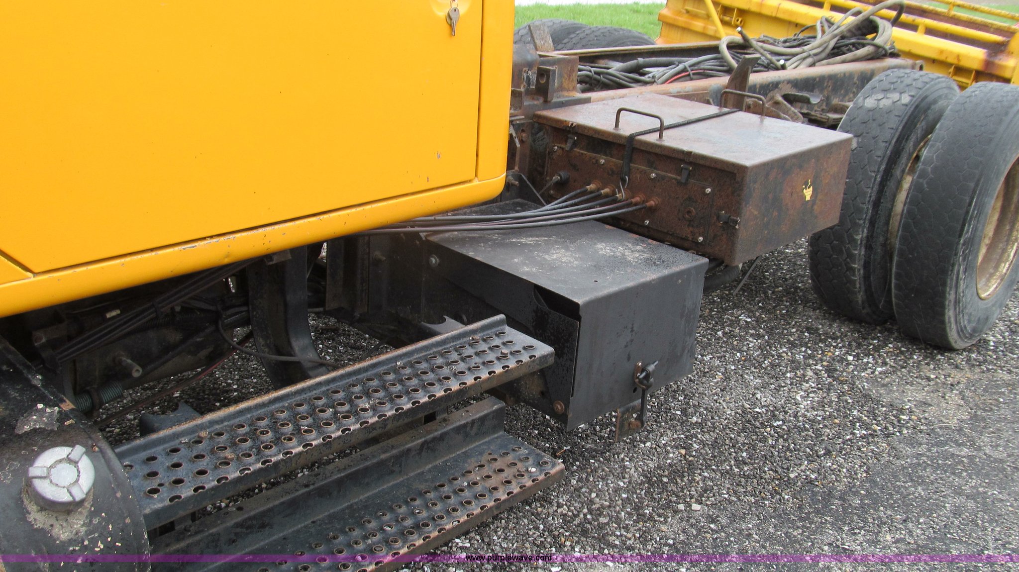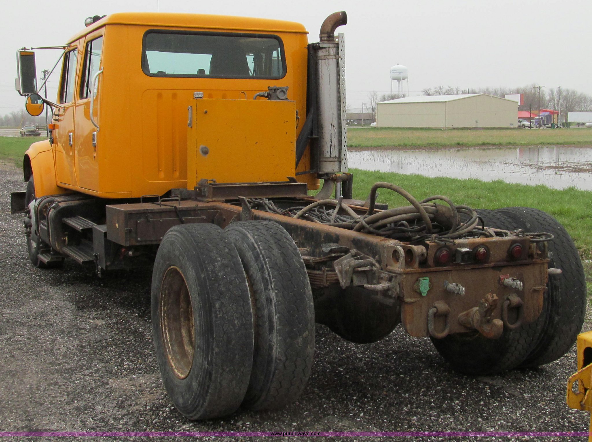 Purple Wave is selling a used Truck Tractor in Missouri. This item is a 2002 International 4900 CrewCab dump truck with the following: 146,628 miles on odometer, 10,084 hours on meter, International DT466 7.6L L6 diesel engine, Allison six speed automatic transmission, Heat, Cruise, AM/FM, Air suspension seat, Power windows, Heated mirrors, Equipped for snow plow, Plow lights, 75 gallon fuel tank, Trailer wiring, Pintle hitch, Wet kit, Rear tow hooks, Boot box, Spring suspension, Air brakes, 206" wheelbase, 11R22.5 tires, MoDOT ID 6554