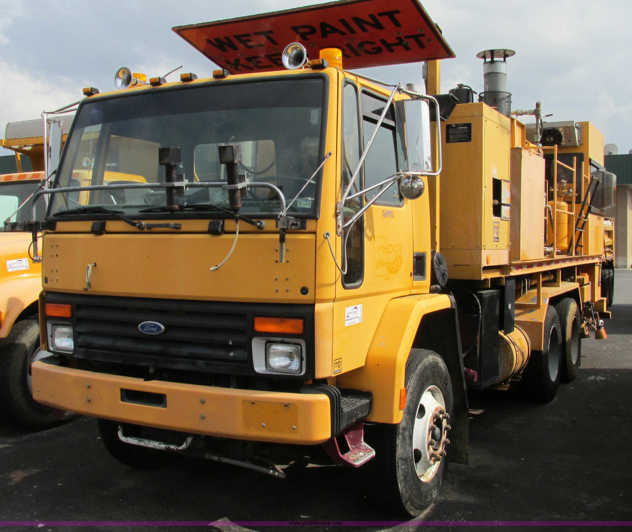 Take a look at this used 1996 Ford low tilt cab paint striper truck being sold on May 2nd, 2013 in the SOLD! May 2 Missouri Department of Transportation Auction made by Ford. Take a look at all of the item information below or take a look at similar auctions for Trucks.