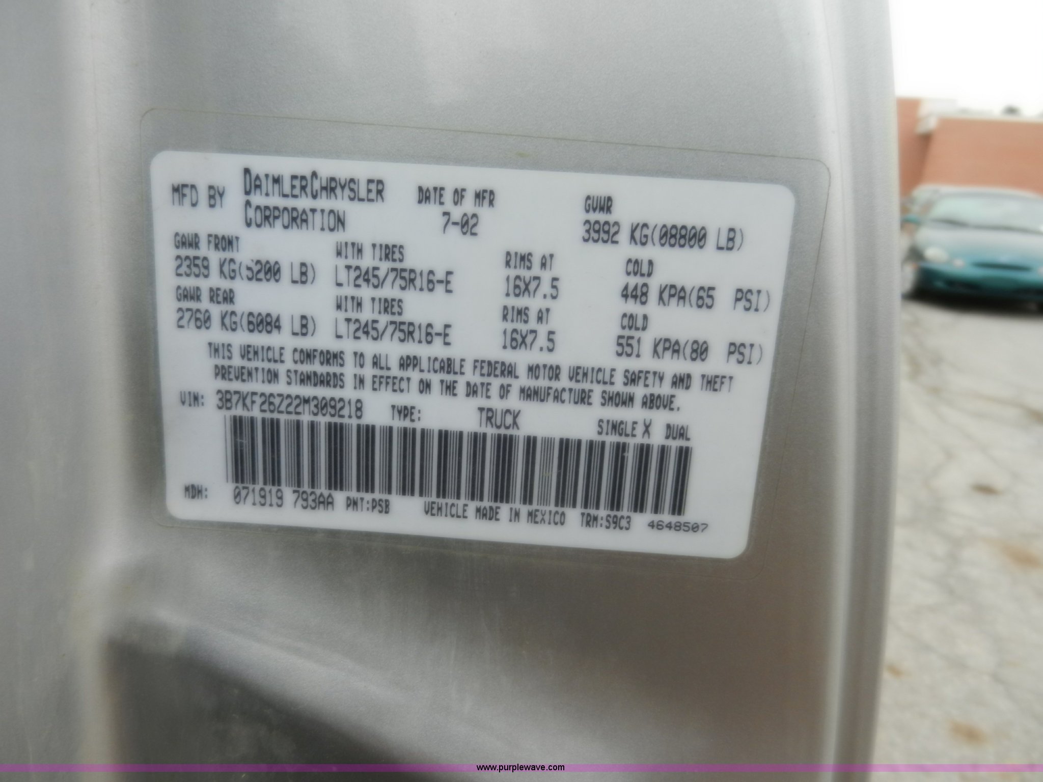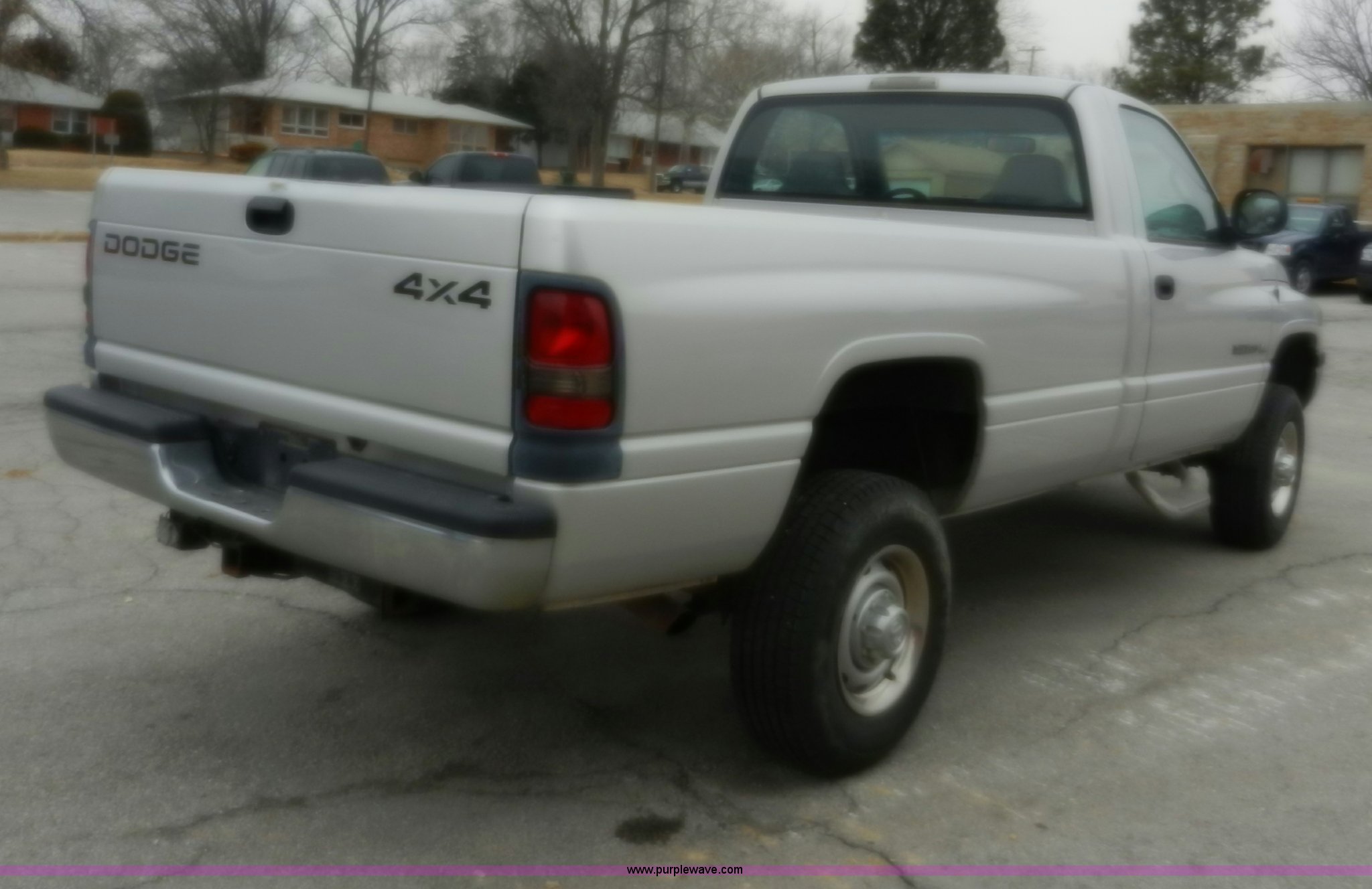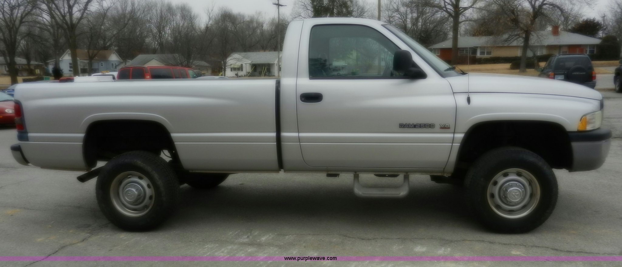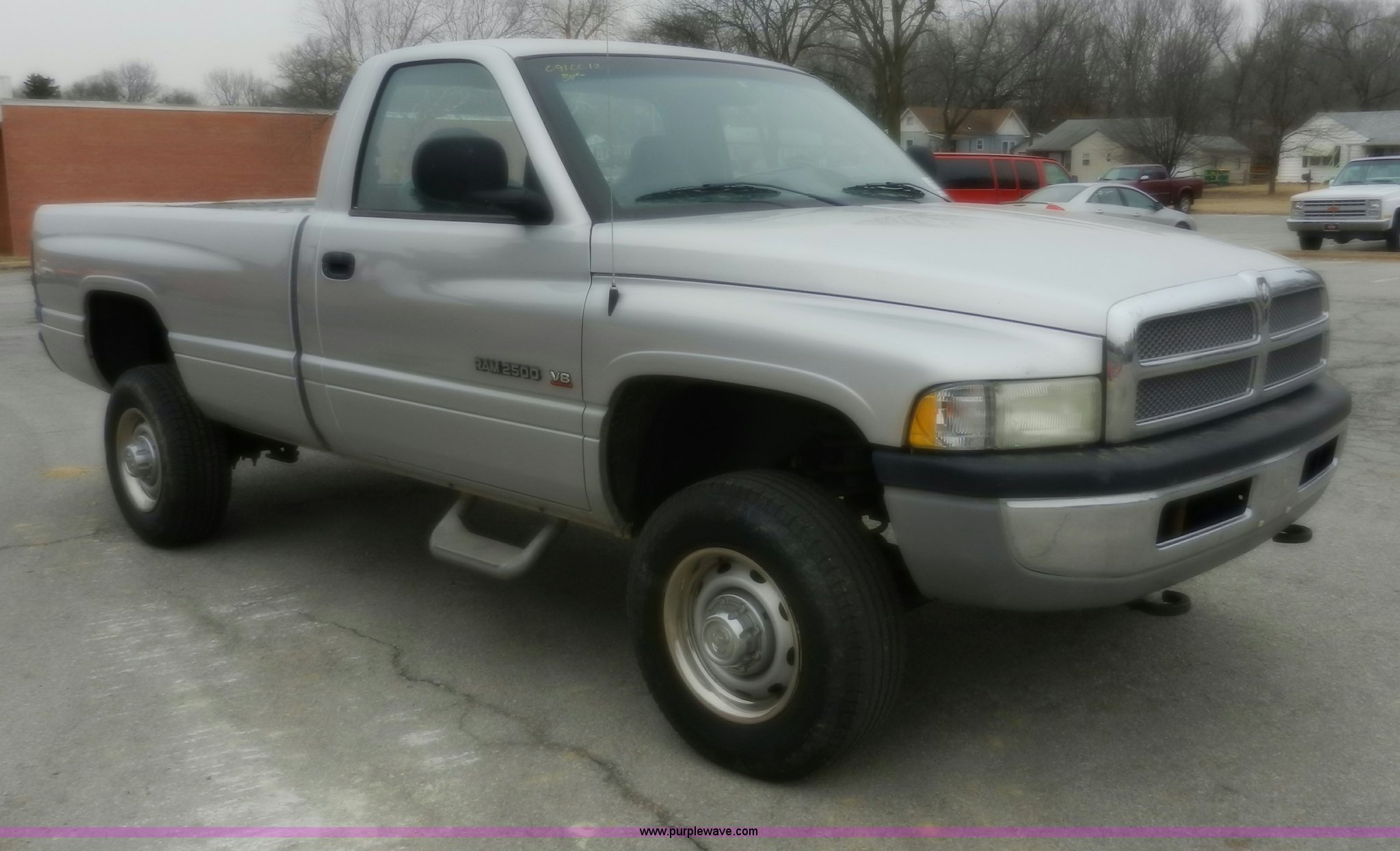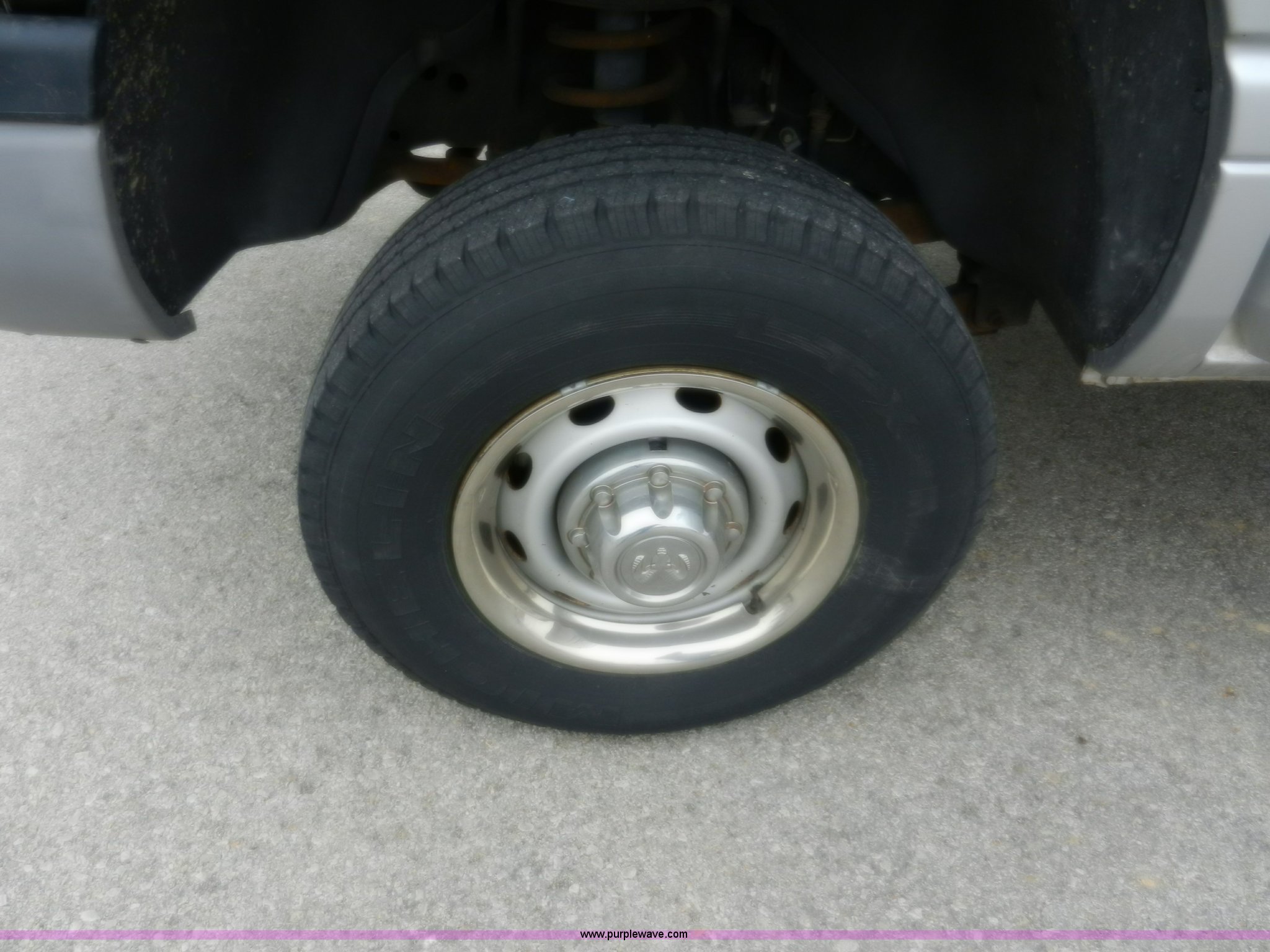 Purple Wave is selling a used Passenger Vehicle in Kansas. This item is a 2002 Dodge Ram 2500 SLT pickup truck with the following: 157,034 miles on odometer, Magnum 5.9L V8 gas engine, Automatic transmission, Four wheel drive, AC and heat, Tilt, Cruise, AM/FM, Manual windows and locks, Cloth interior, Carr step bars, Front tow hooks, Receiver hitch, Trailer wiring, 245/75R16 tires, Dash cracked, Rust, Check engine light is on, Paint faded and scratched, KDOT ID 091-0012