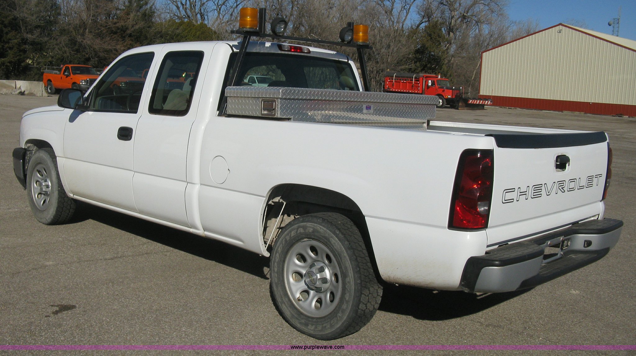 2006 Chevrolet Silverado 1500 Ext. Cab pickup truck. 167,239 miles on odometer, 4.8L V8 OHV 16V gas engine, Automatic transmission, AC and heat, Tilt, Cruise, AM/FM, Manual windows and locks, Cloth interior, Toolbox, Amber warning beacon, 245/70R17 tires, Dead battery, Paint faded and scratched, KDOT ID 052-5136. 1GCEC19V36Z231612. View equipment video. Shipping quotes available. KDOT Hutchinson. 500 N Hendricks. Hutchinson, KS 67504