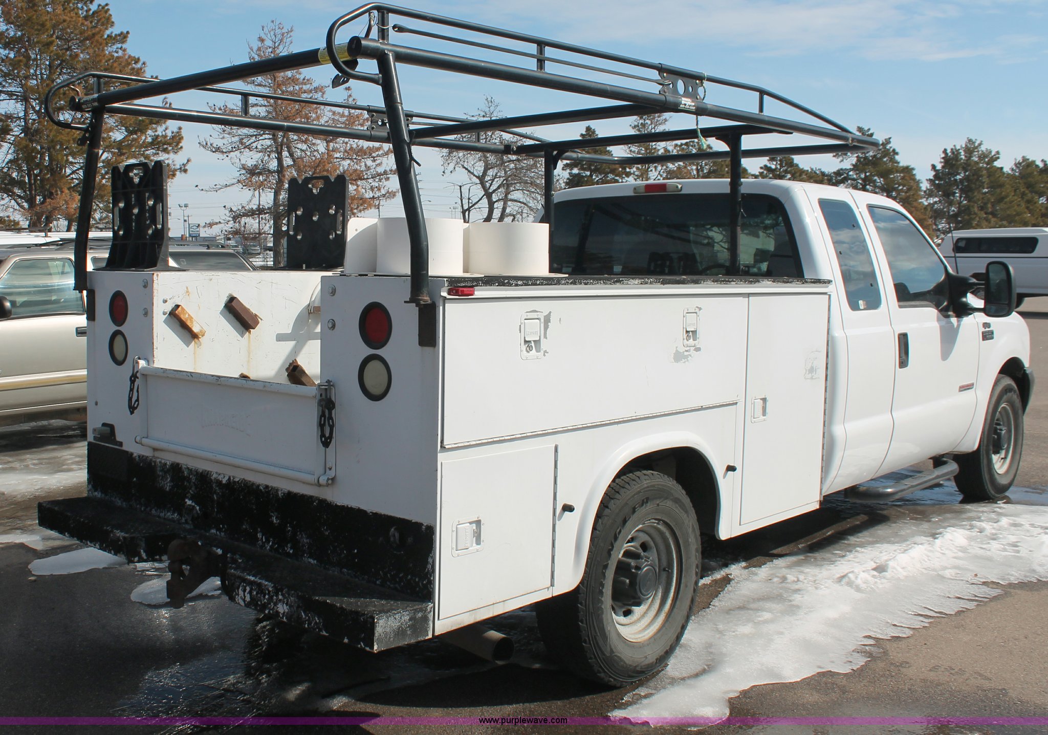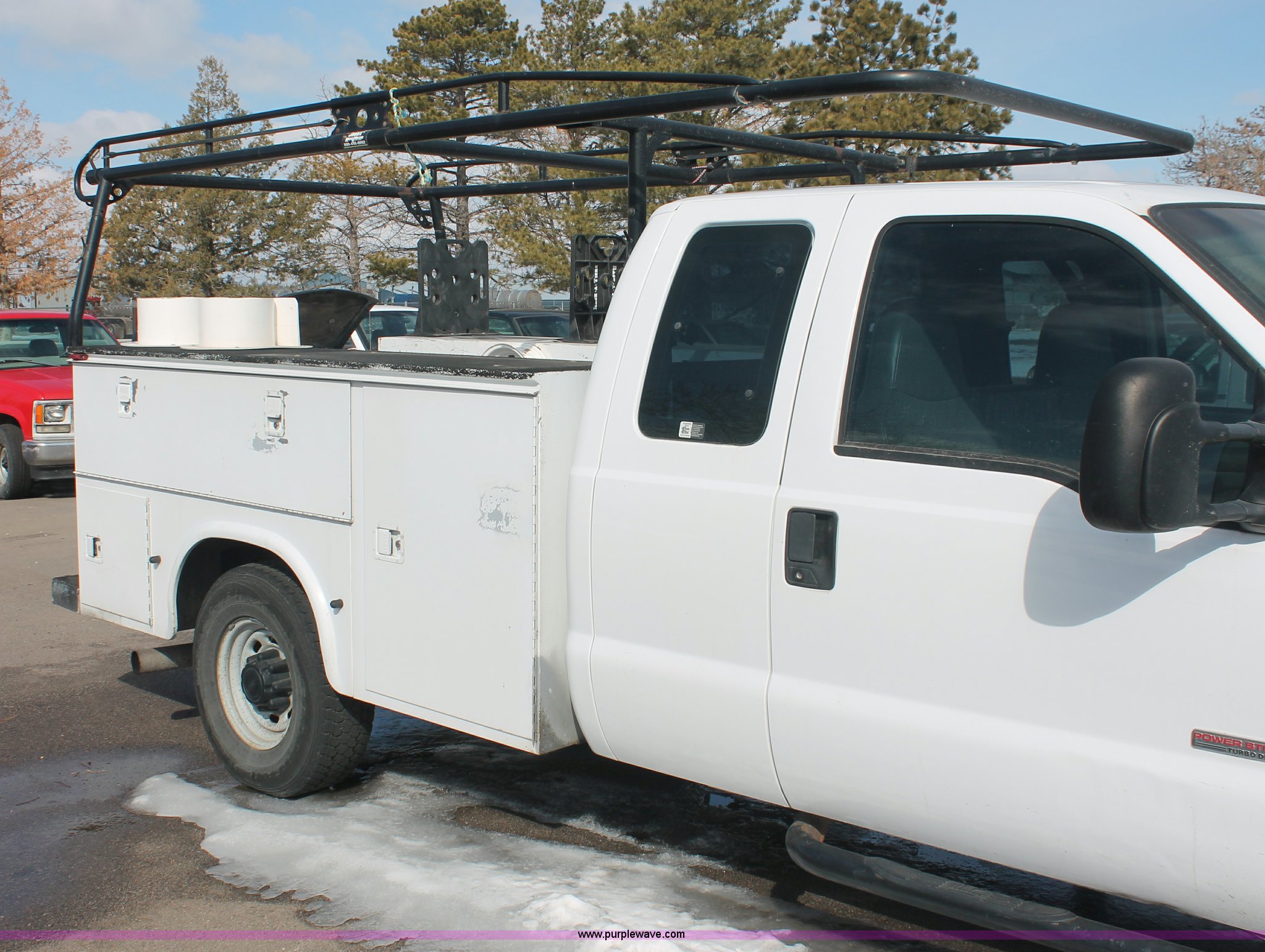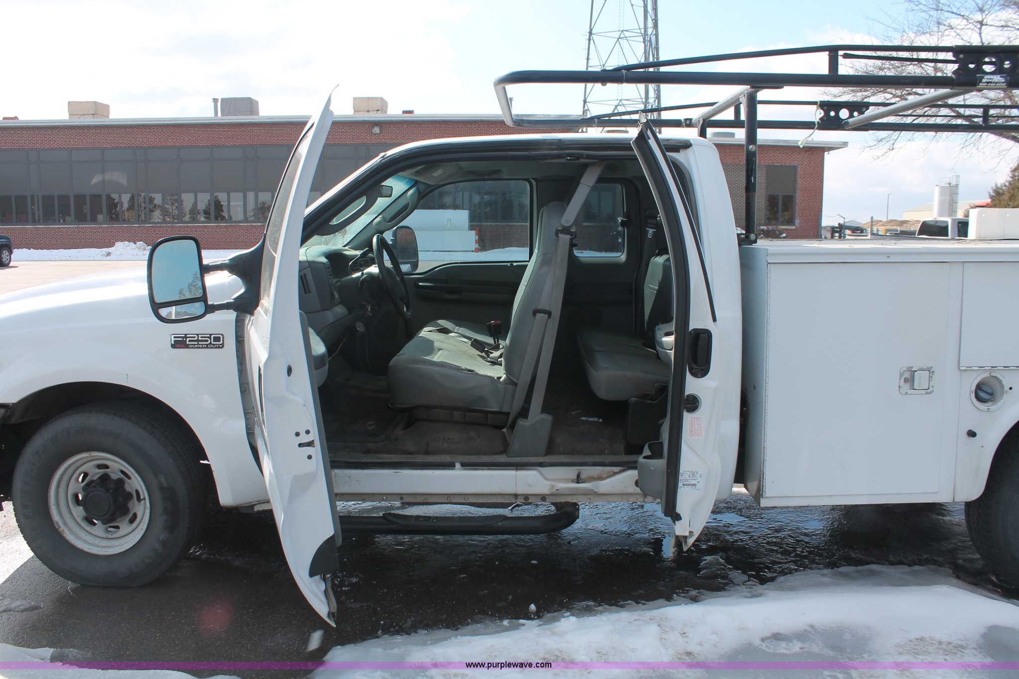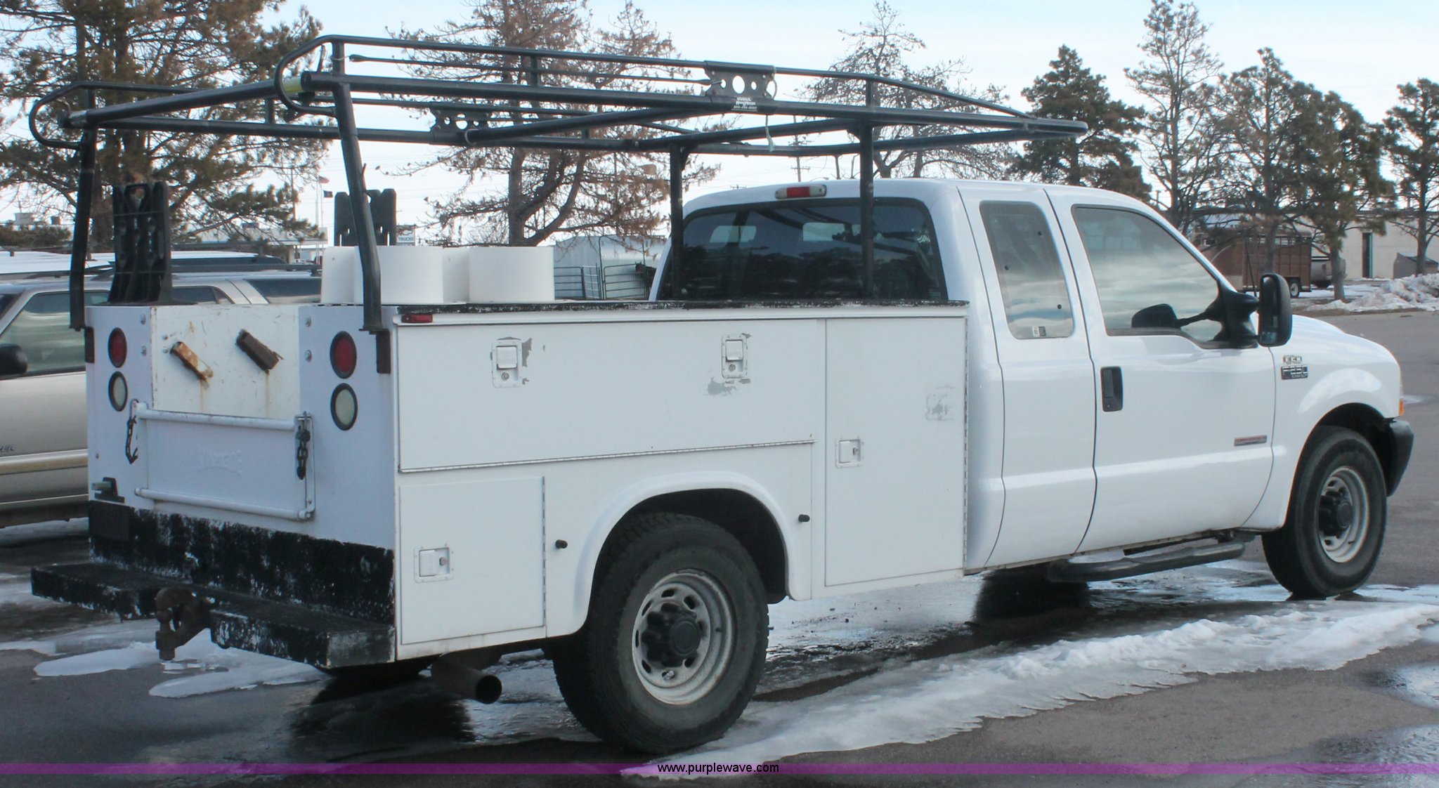 Purple Wave is selling a used Passenger Vehicle in Kansas. This item is a 2003 Ford F250 XL SuperCab pickup truck with the following: 171,701 miles on odometer, 6.0L V8 OHV 32V turbo diesel engine, Automatic transmission, AC and heat, Tilt, Cruise, AM/FM, Manual windows and locks, Cloth and vinyl interior, Knapheide 8'L utility bed, (6) compartments, Ladder racks, Westin nerf bars, Receiver hitch, Trailer wiring, 235/85R16 tires, Needs injectors, Misses badly, Vehicle must be towed, KDOT ID 163-6013