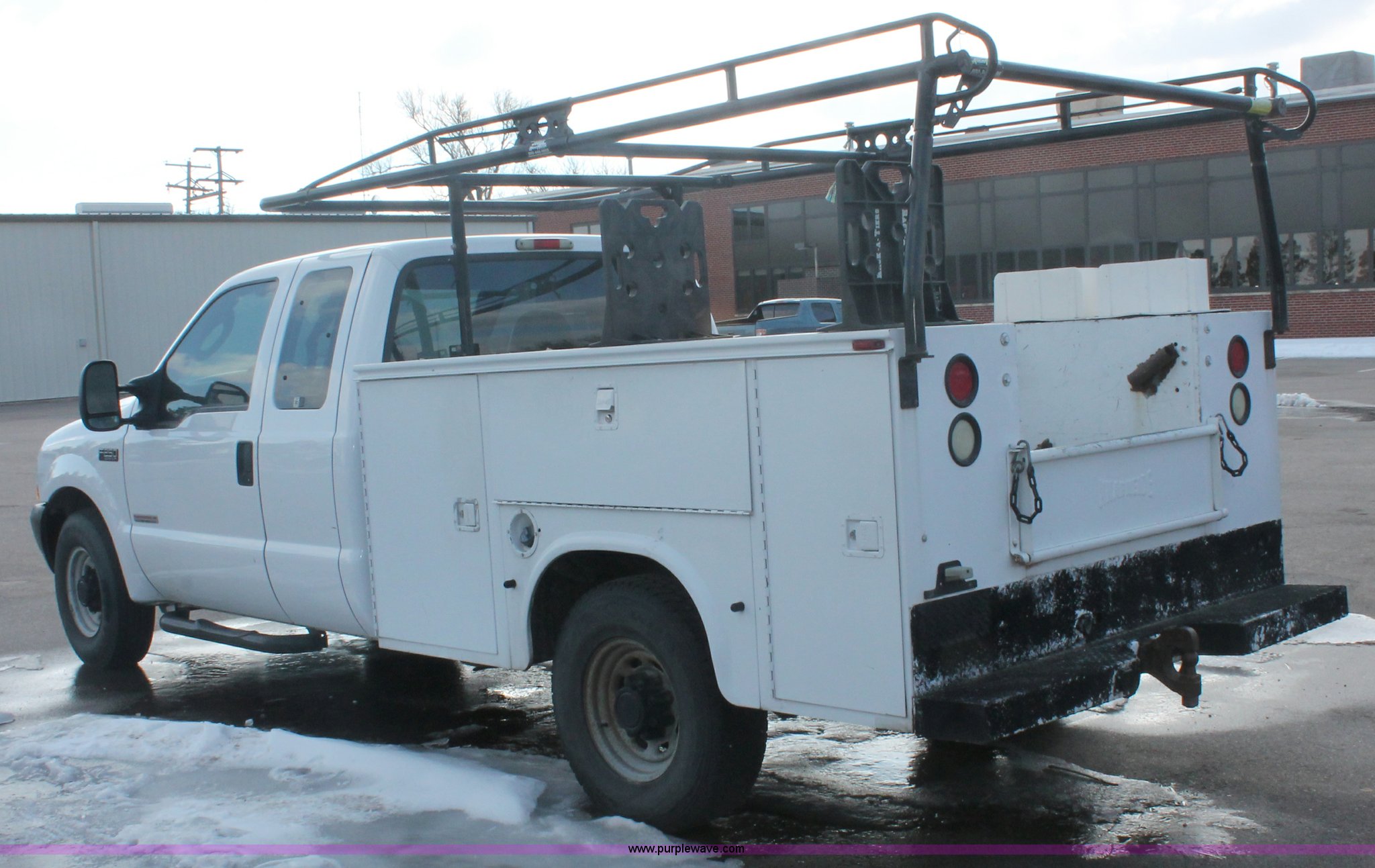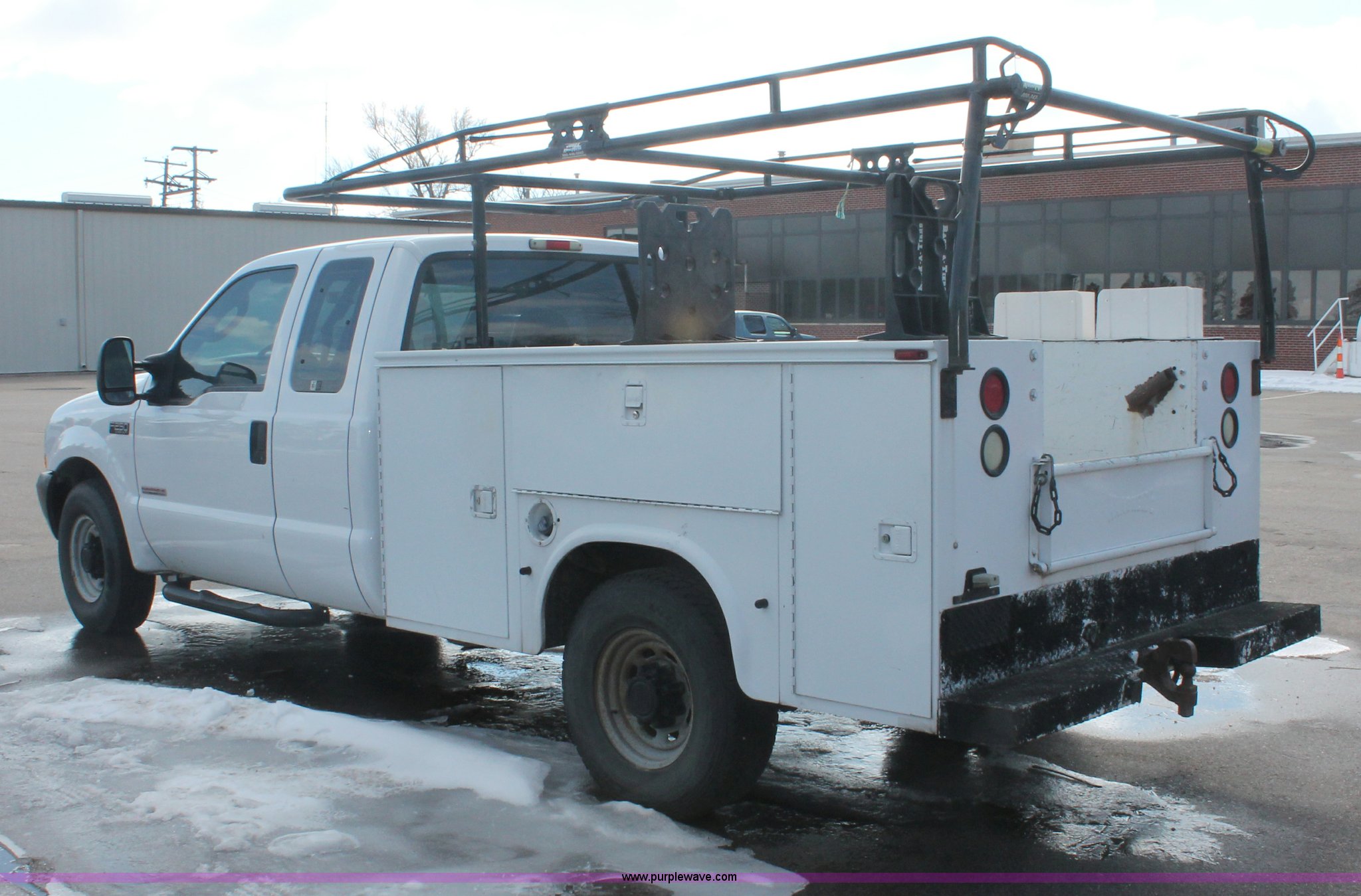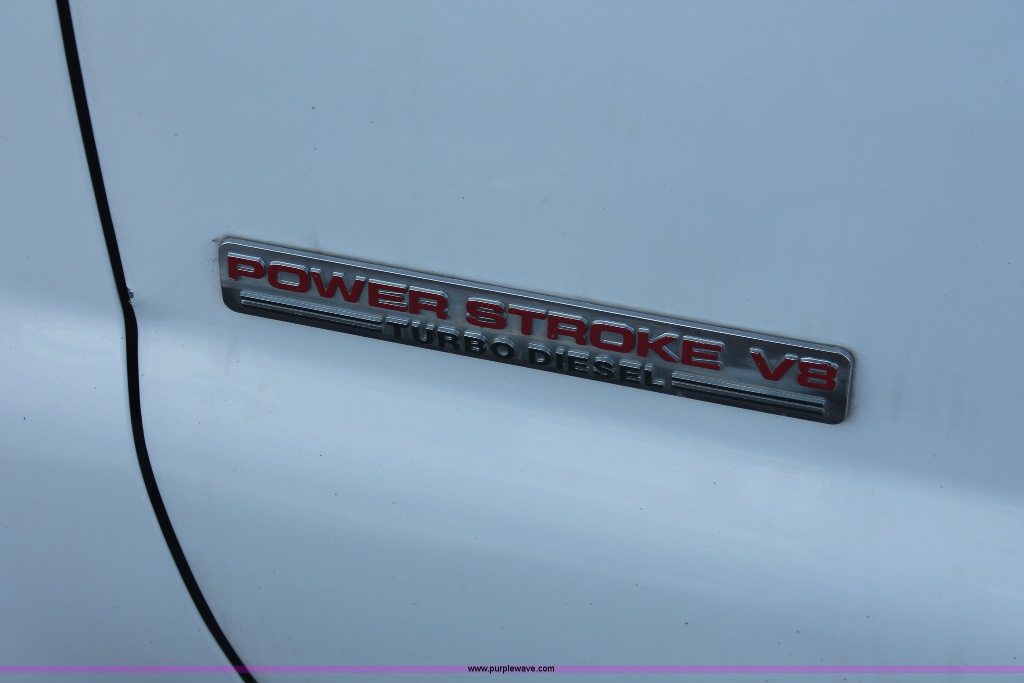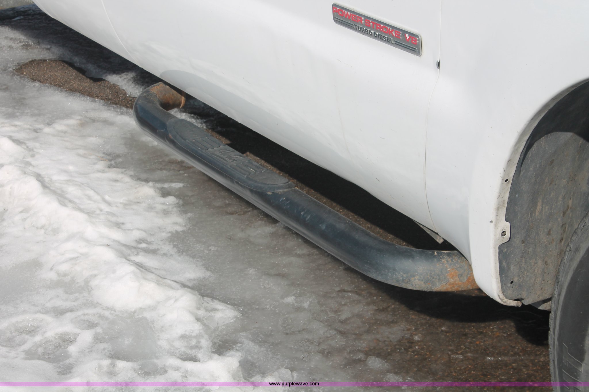 Purple Wave is selling a used Passenger Vehicle in Kansas. This item is a 2003 Ford F250 XL SuperCab pickup truck with the following: 171,701 miles on odometer, 6.0L V8 OHV 32V turbo diesel engine, Automatic transmission, AC and heat, Tilt, Cruise, AM/FM, Manual windows and locks, Cloth and vinyl interior, Knapheide 8'L utility bed, (6) compartments, Ladder racks, Westin nerf bars, Receiver hitch, Trailer wiring, 235/85R16 tires, Needs injectors, Misses badly, Vehicle must be towed, KDOT ID 163-6013
