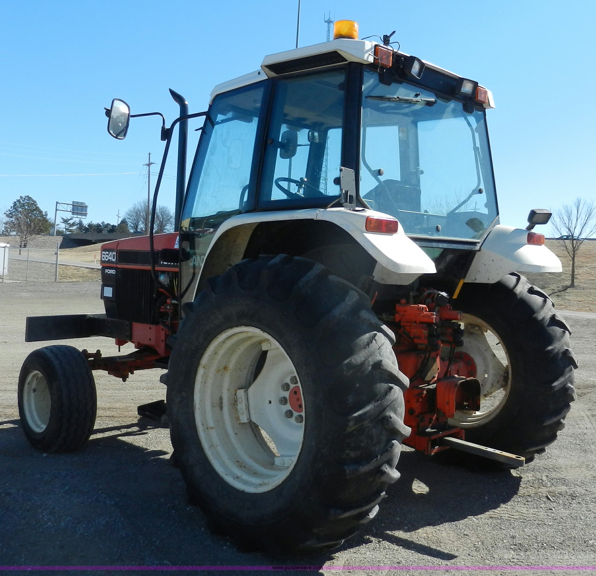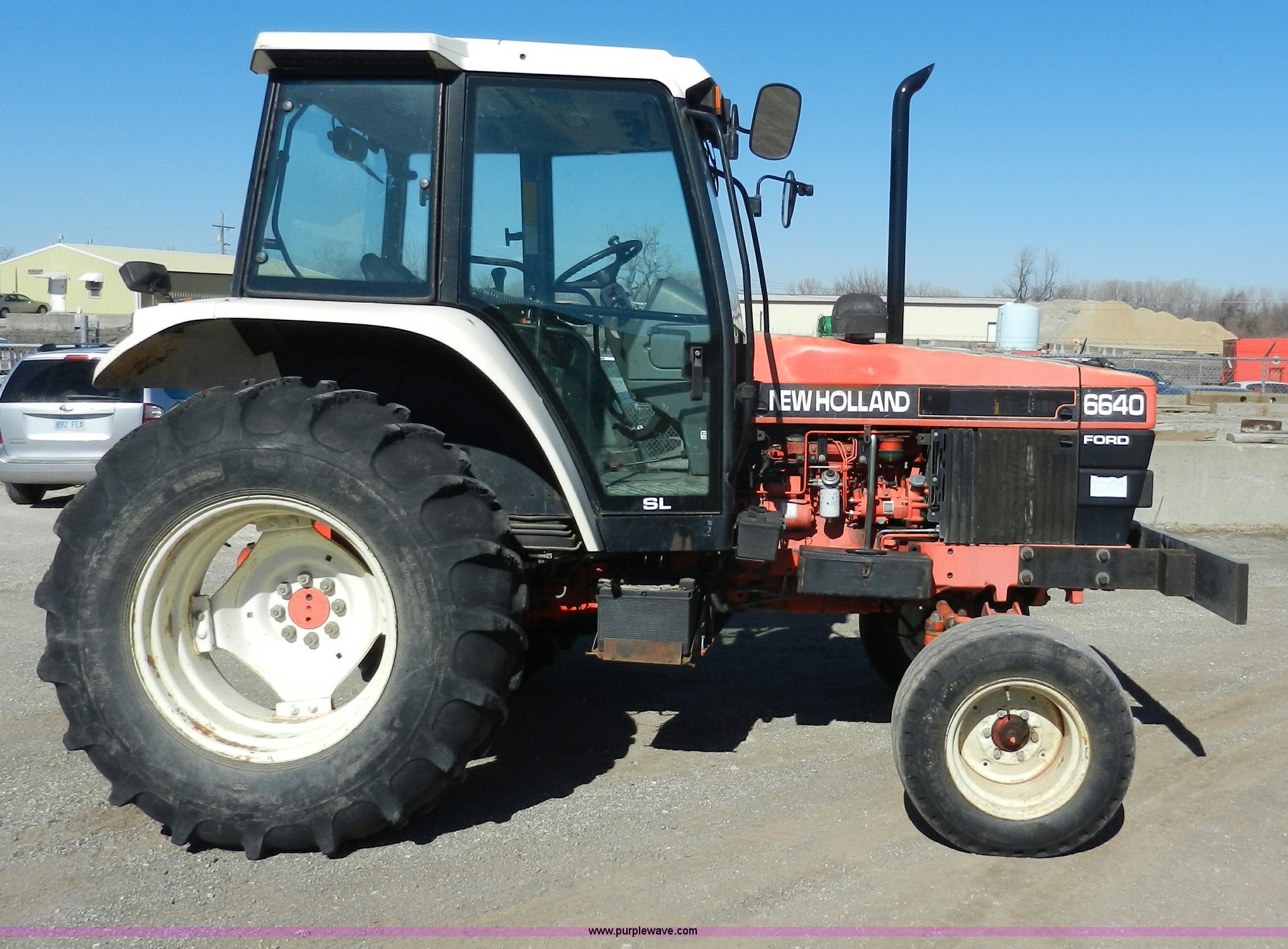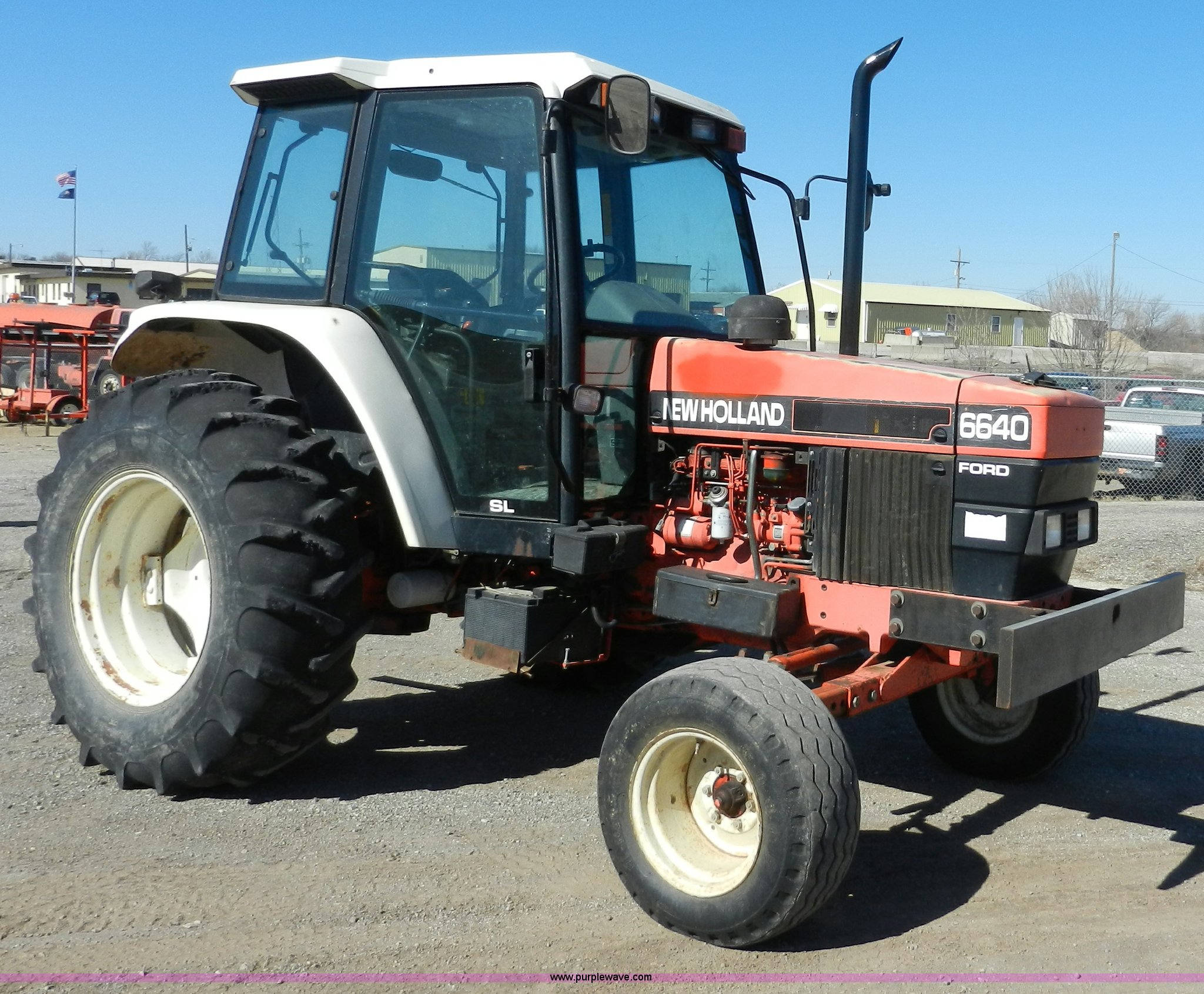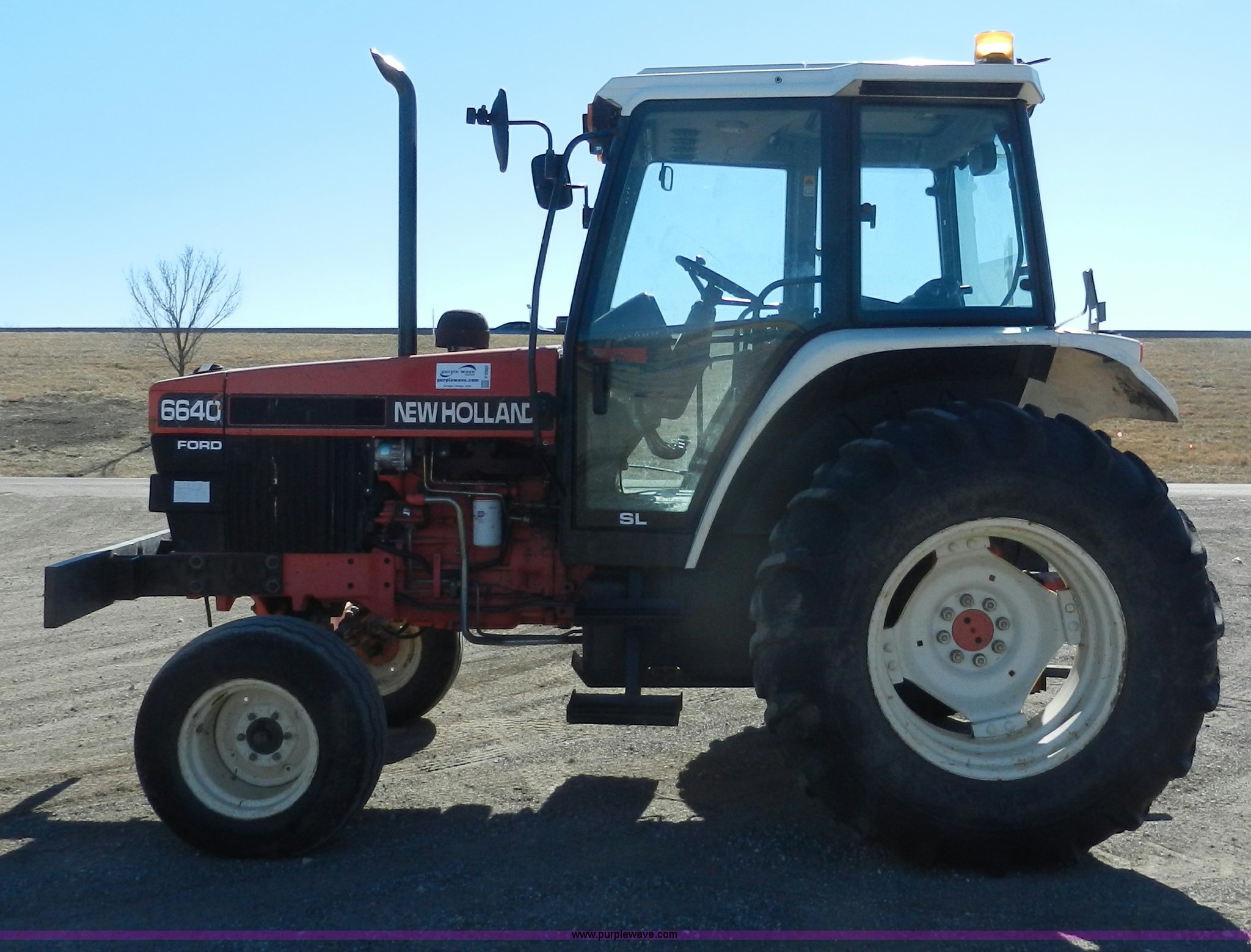 Purple Wave is selling a used Tractor in Kansas. This item is a 1998 New Holland 6640SL tractor with the following: 2,484 hours on meter, Four cylinder diesel engine, Synchro transmission, 12F-12R gears, AC and heat, AM/FM, Tilt steering wheel, 540 PTO, (4) rear hydraulic remotes, 11L-16 front tires, 18.4-30 rear tires, Missing three point arms, Clutch slave cylinder leaks, Serial 087428B, KDOT ID 352-1118