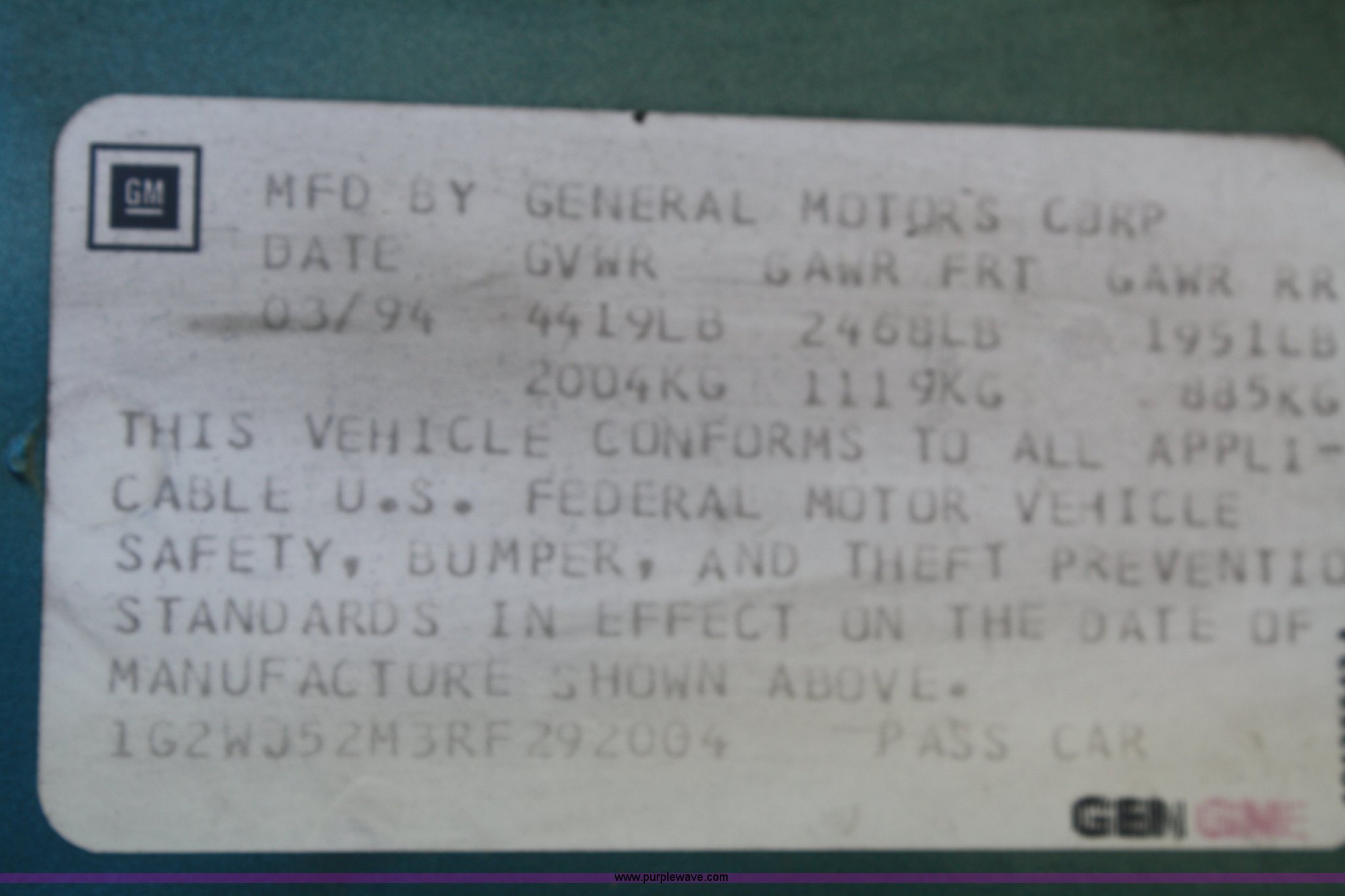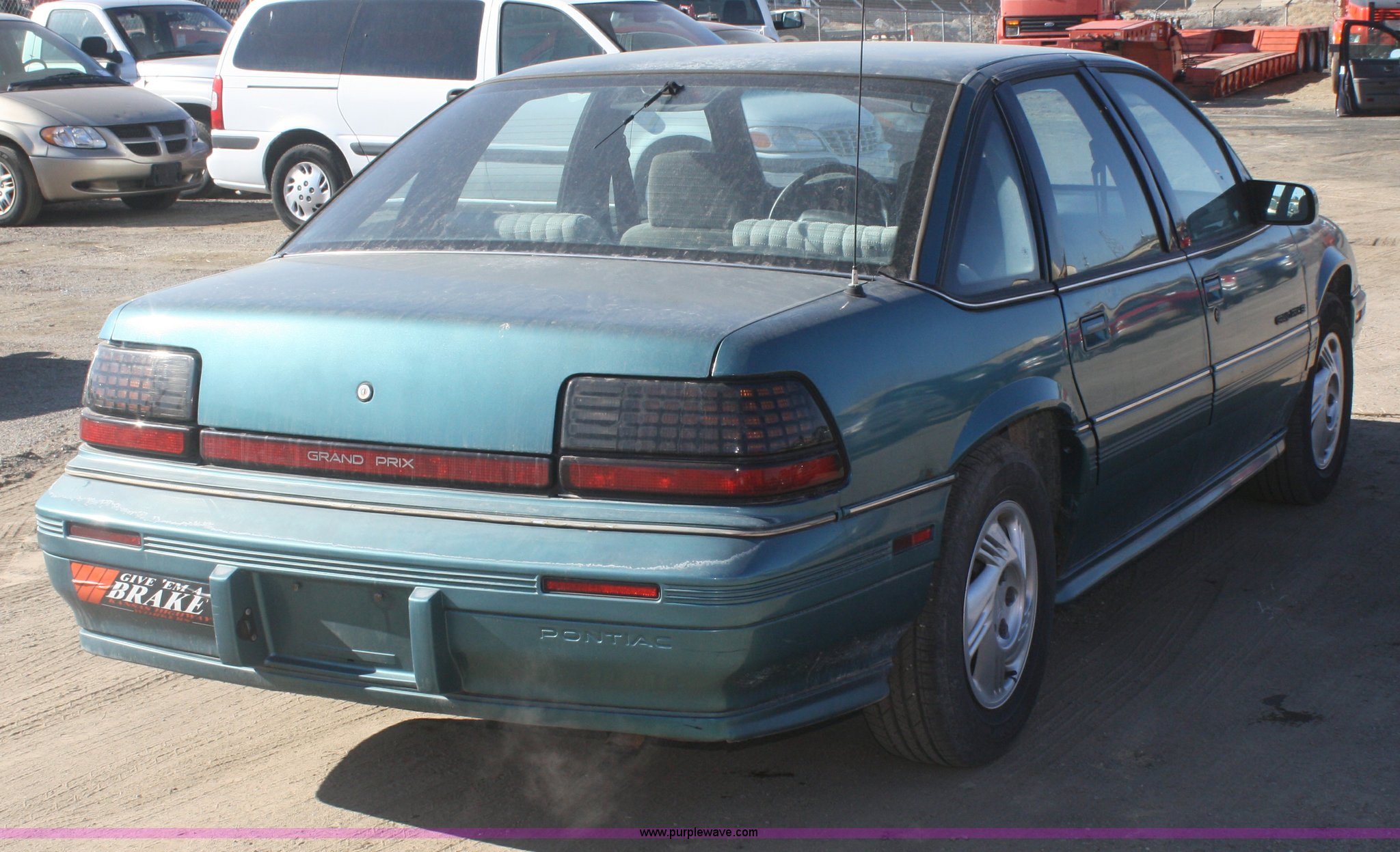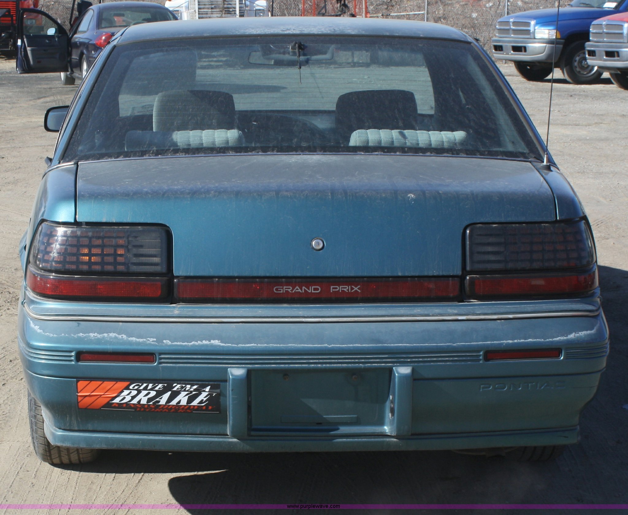 Purple Wave is selling a used Passenger Vehicle in Kansas. This item is a 1994 Pontiac Grand Prix SE with the following: 111,150 miles on odometer, 3.1L V6 OHV 12V gas engine, Automatic transmission, AC and heat, Tilt, Cruise, AM/FM, Power windows, locks, and mirrors, Cloth interior, Rear window defrost, 205/70R15 tires, Rust, Paint faded and scratched, KDOT ID 006-1074