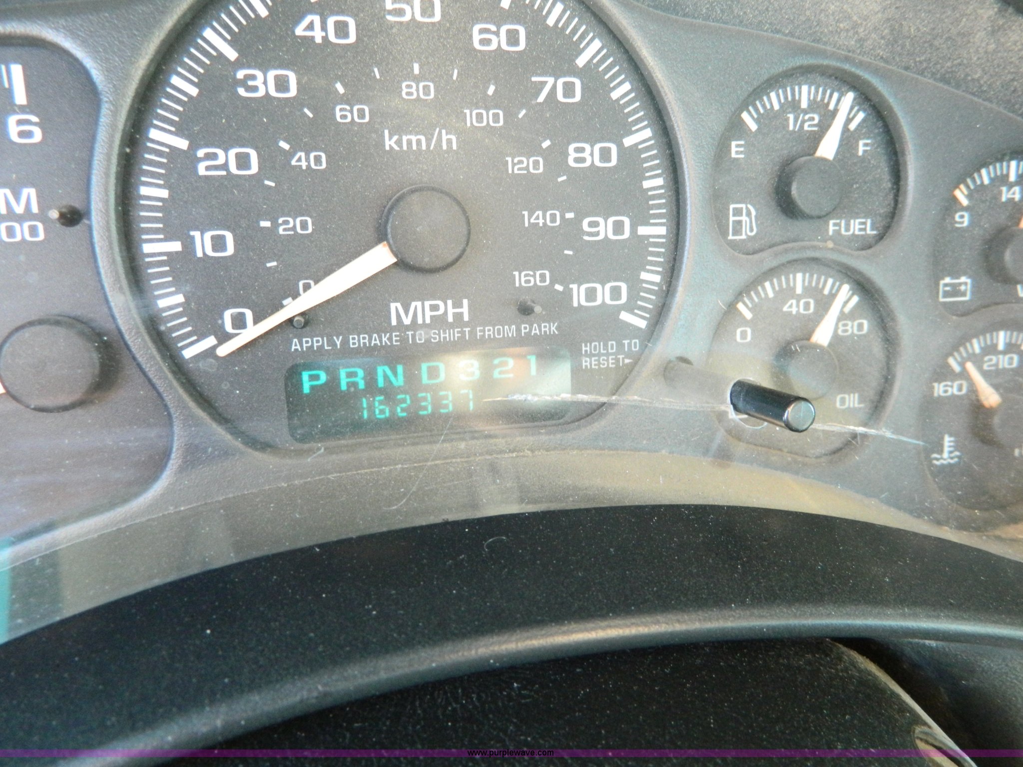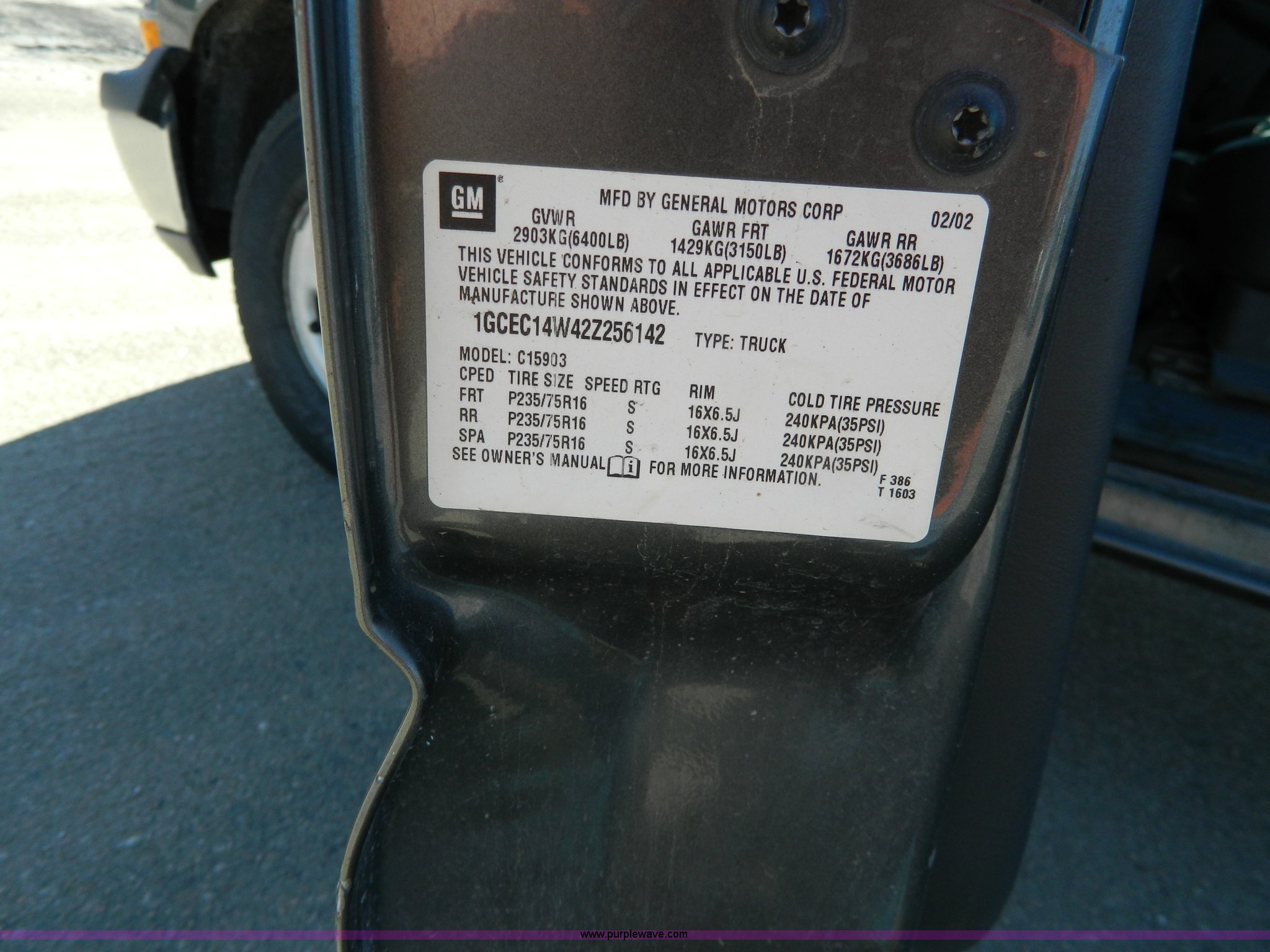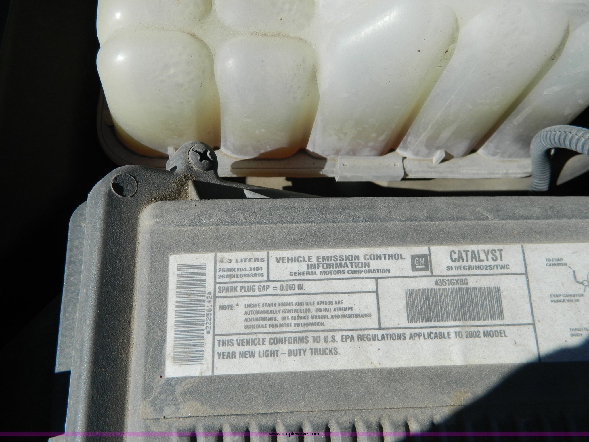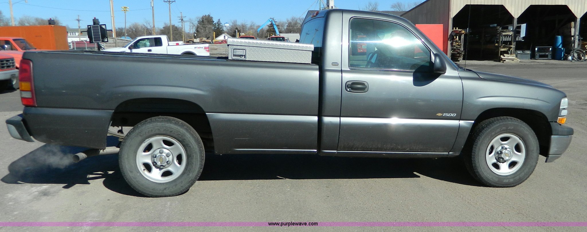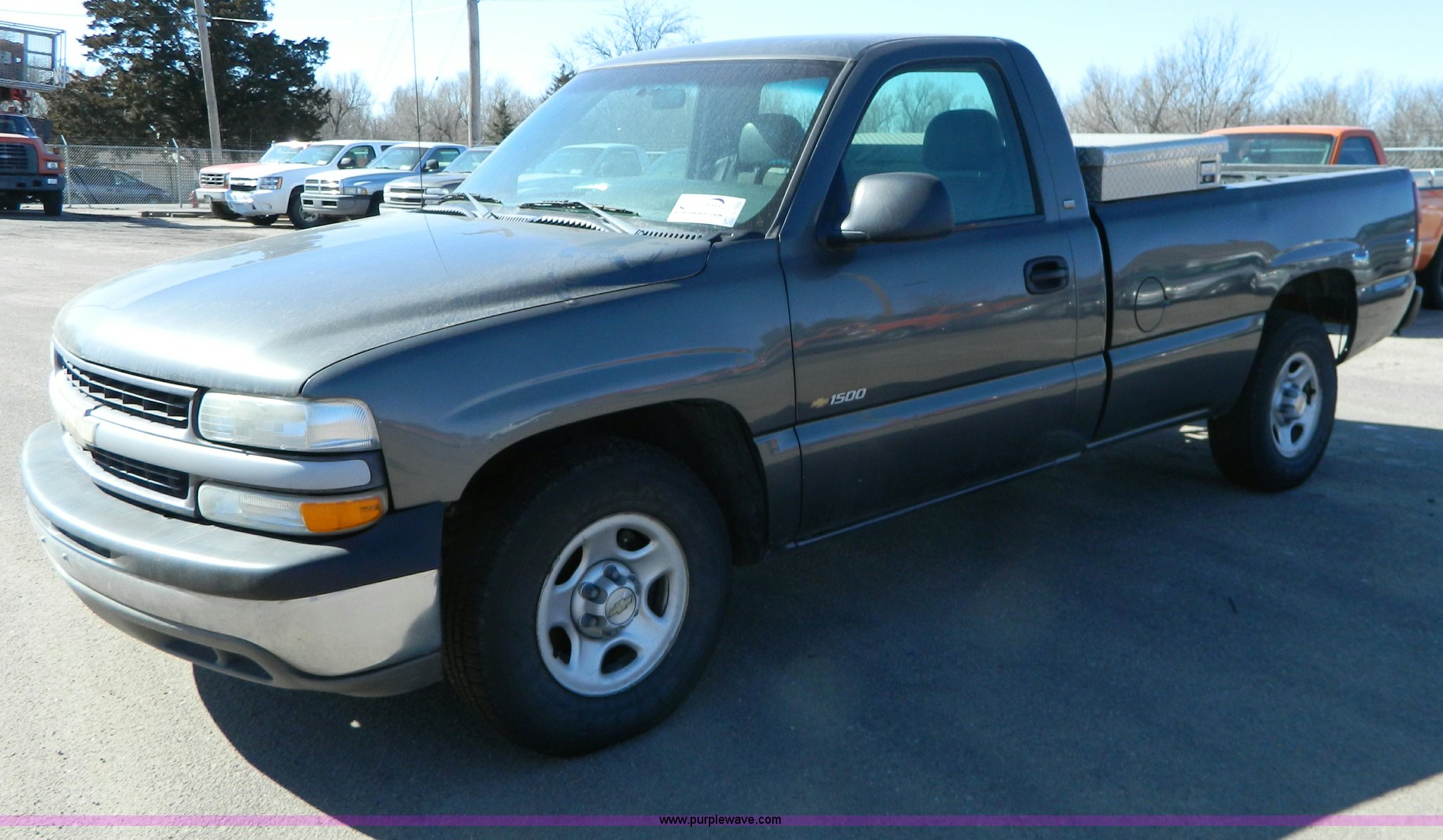 Purple Wave is selling a used Passenger Vehicle in Kansas. This item is a 2002 Chevrolet Silverado 1500 pickup truck with the following: 162,336 miles on odometer, 4.3L V6 OHV 12V gas engine, Automatic transmission, AC and heat, Tilt, Cruise, AM/FM, Manual windows and locks, Vinyl interior, Cross bed toolbox, Passenger door dented, Driver's seat needs reupholstered, Dash cracked, Windshield pitted, Paint faded and scratched, KDOT ID 052-3162
