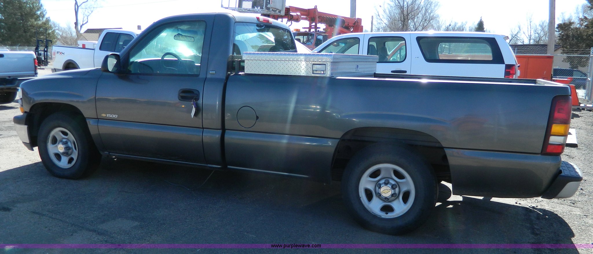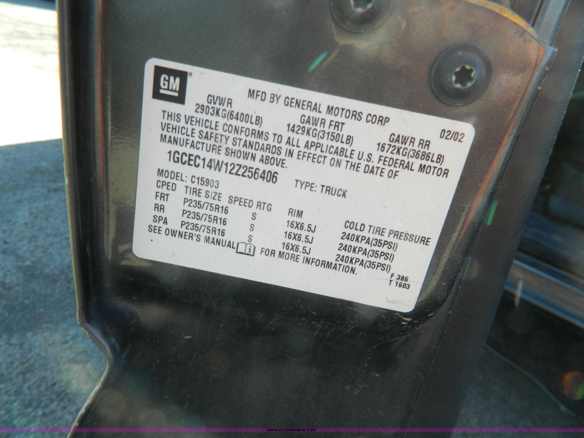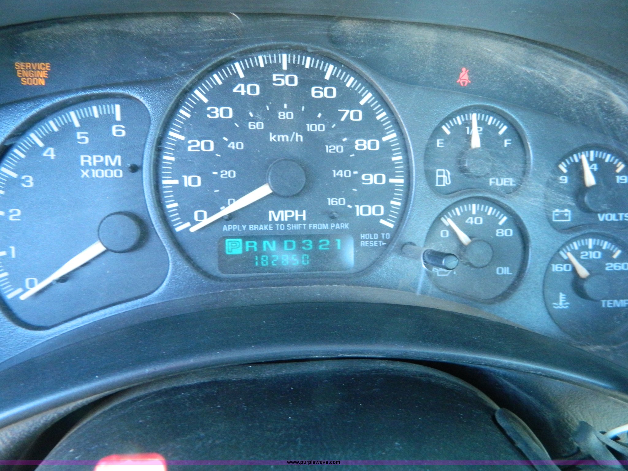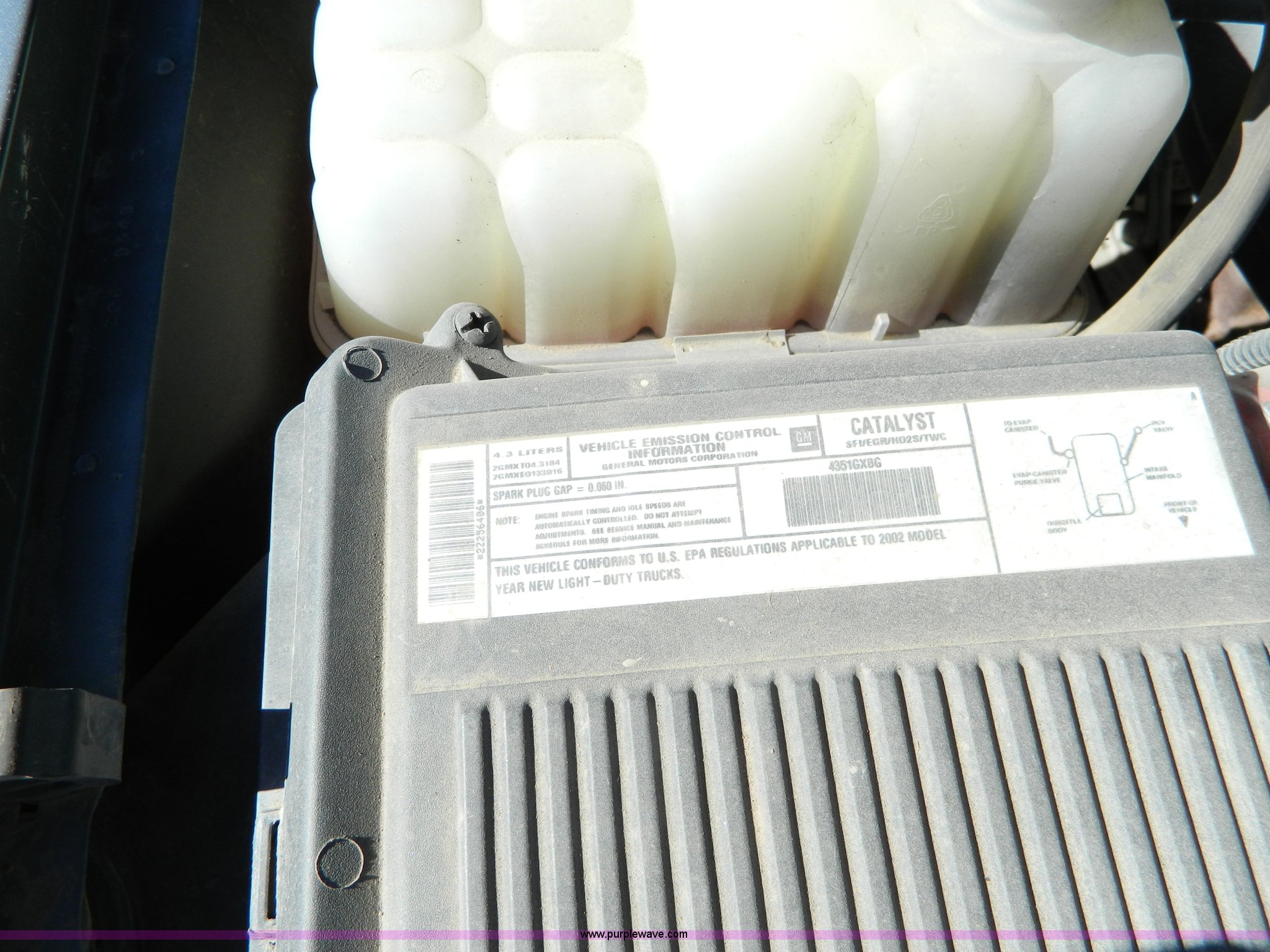 Purple Wave is selling a used Passenger Vehicle in Kansas. This item is a 2002 Chevrolet Silverado 1500 pickup truck with the following: 182,850 miles on odometer, 4.3L V6 OHV 12V gas engine, Automatic transmission, AC and heat, Tilt, Cruise, AM/FM, Manual windows and locks, Cloth seat, Vinyl floor, Cross bed toolbox, Service engine light is on, Driver's seat needs reupholstered, Oil leaks, Tires poor, Paint faded and scratched, KDOT ID 052-3132