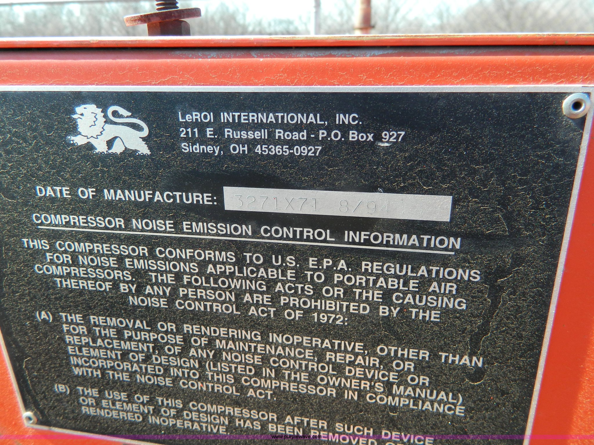 Take a look at this used 1994 Leroi Q175DJE air compressor being sold on March 21st, 2013 in the SOLD! Thursday March 21 Kansas Department of Transportation Auction made by Leroi. Take a look at all of the item information below or take a look at similar auctions for Compressors.