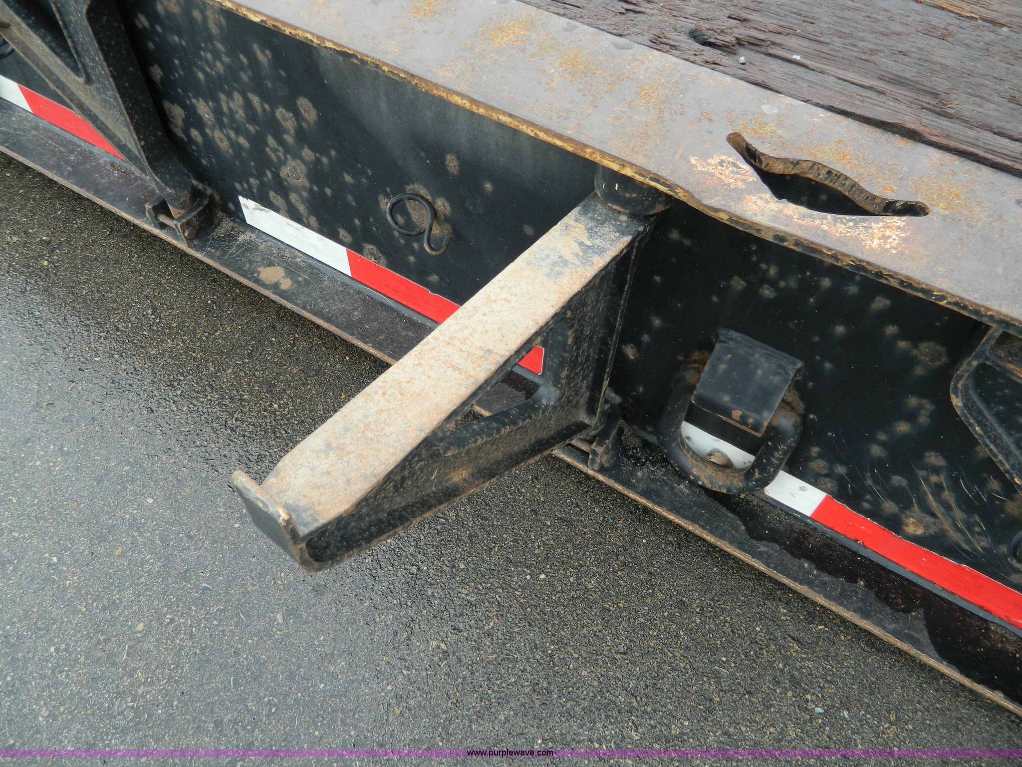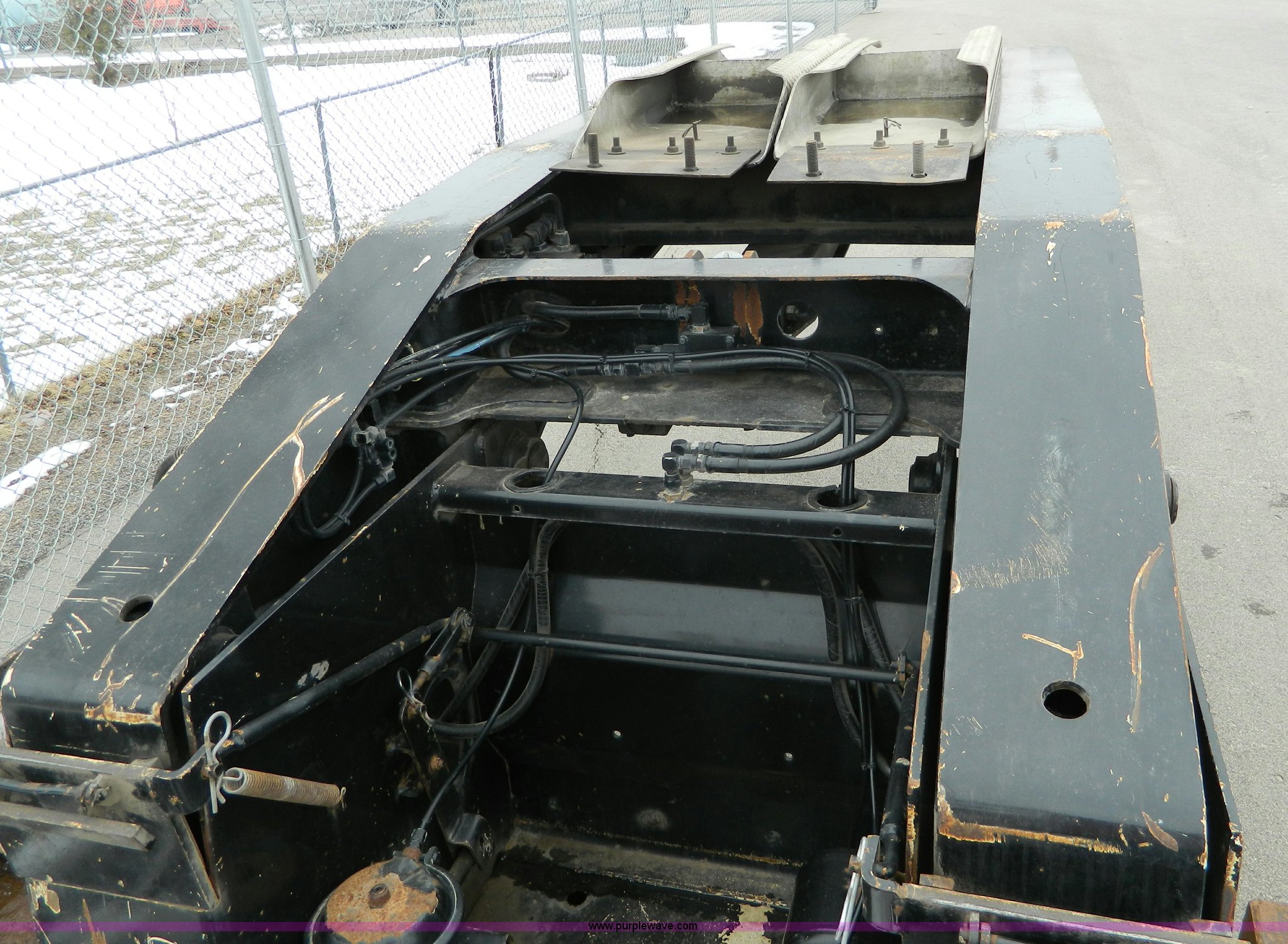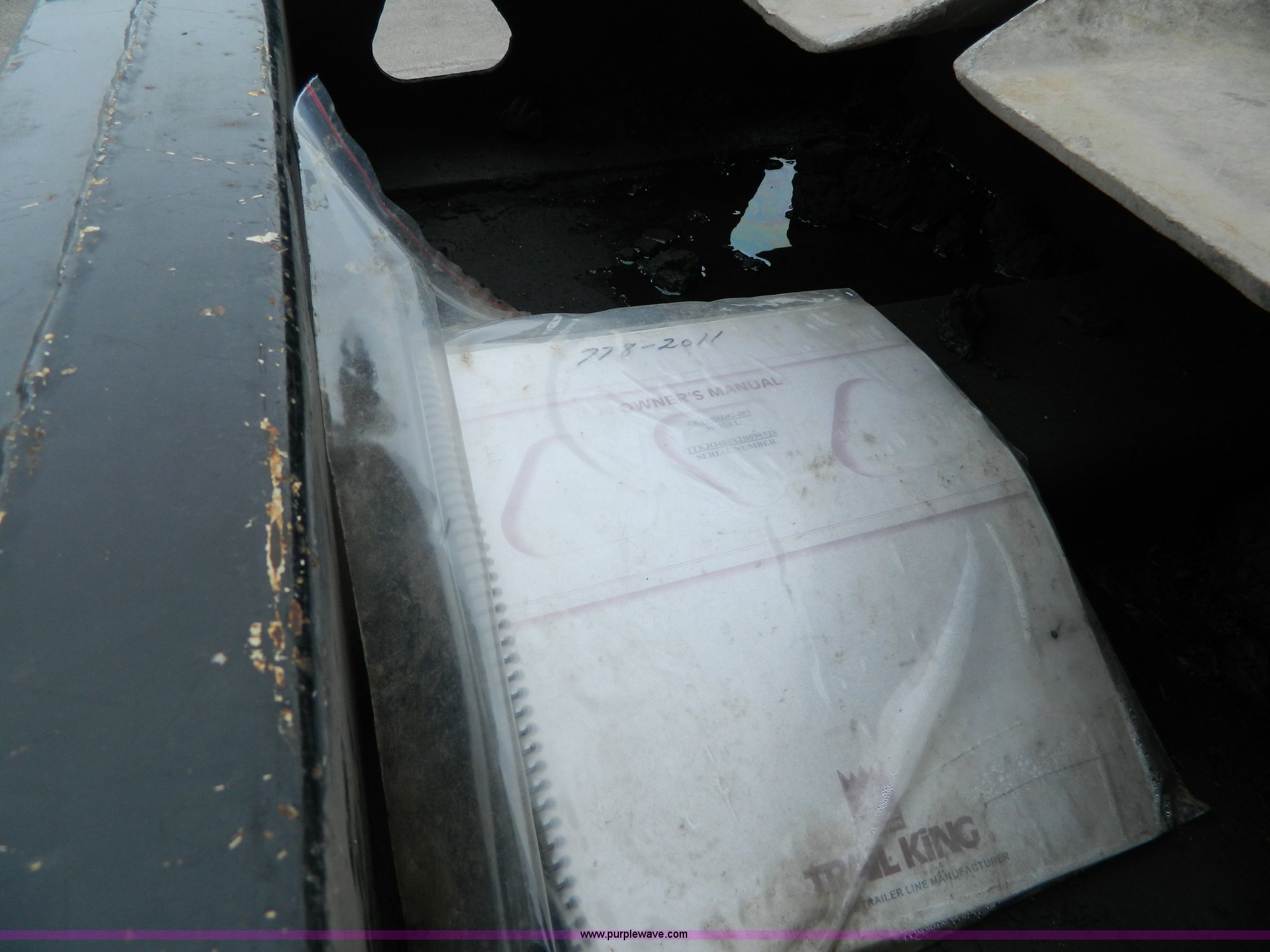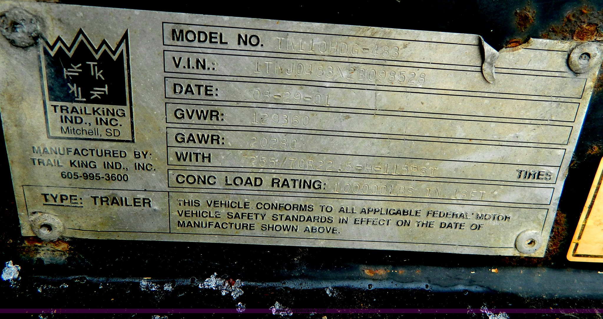 Purple Wave is selling a used Equip. Trailer in Kansas. This item is a 2002 Trail King TK110HDG-483 triple axle lowboy trailer with the following: 24'L x 102"W main deck, 12'L upper deck, 10'L neck, 2'L x 20"W folding ramps, 12"W side folding extensions, 10,000 lbs operating capacity, Removable gooseneck, Dump valve, Treated plate wheel covers, Parker hydraulic fittings, D-ring tie downs, Recently replaced brakes, 255/70R22.5 tires, KDOT ID 778-2011