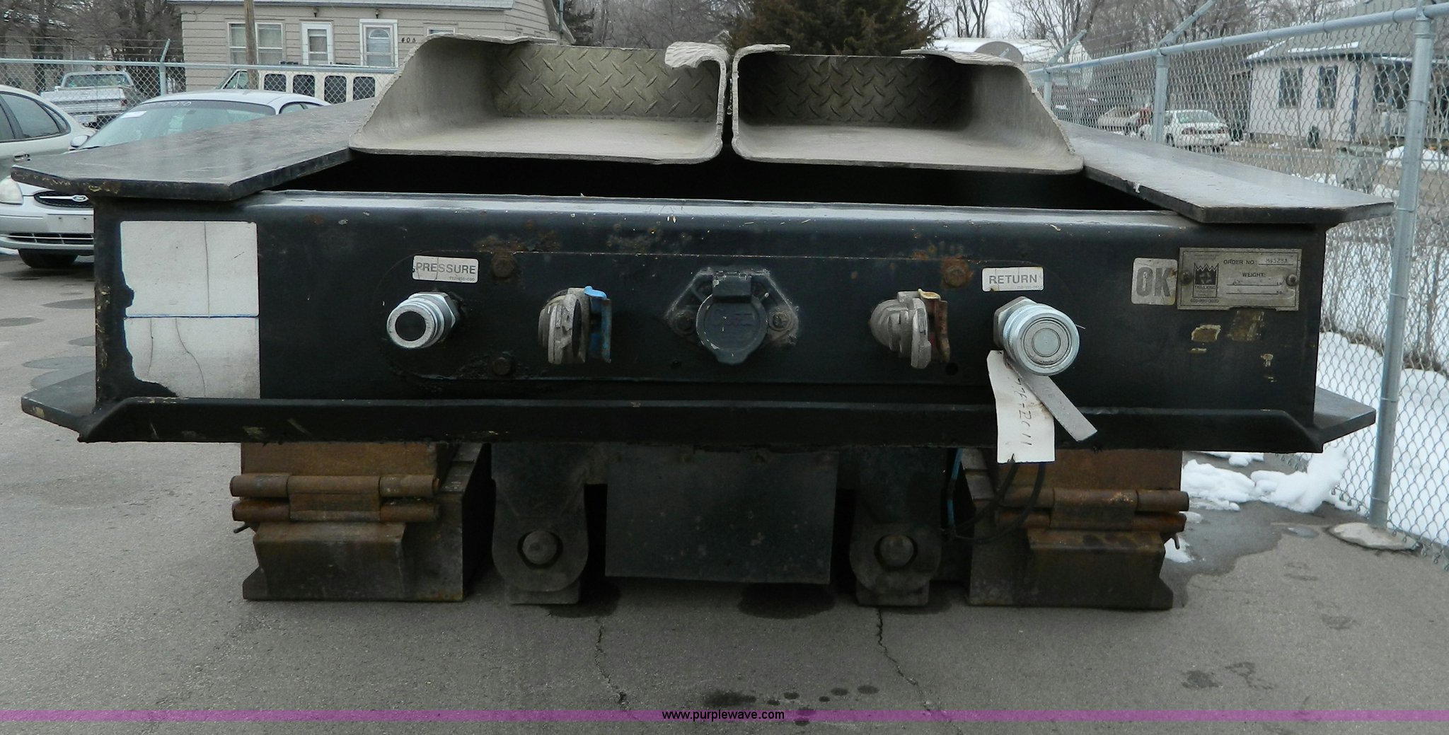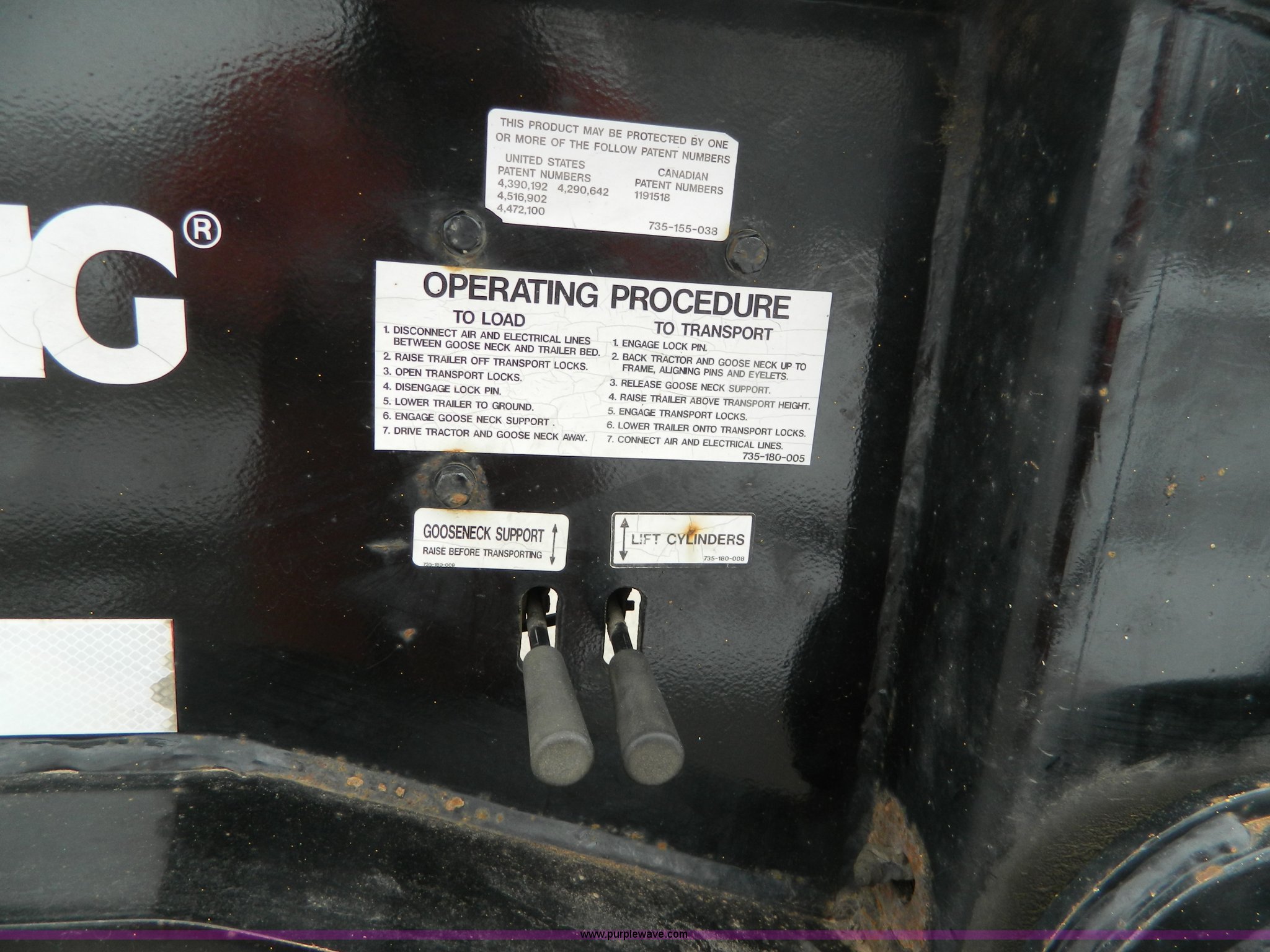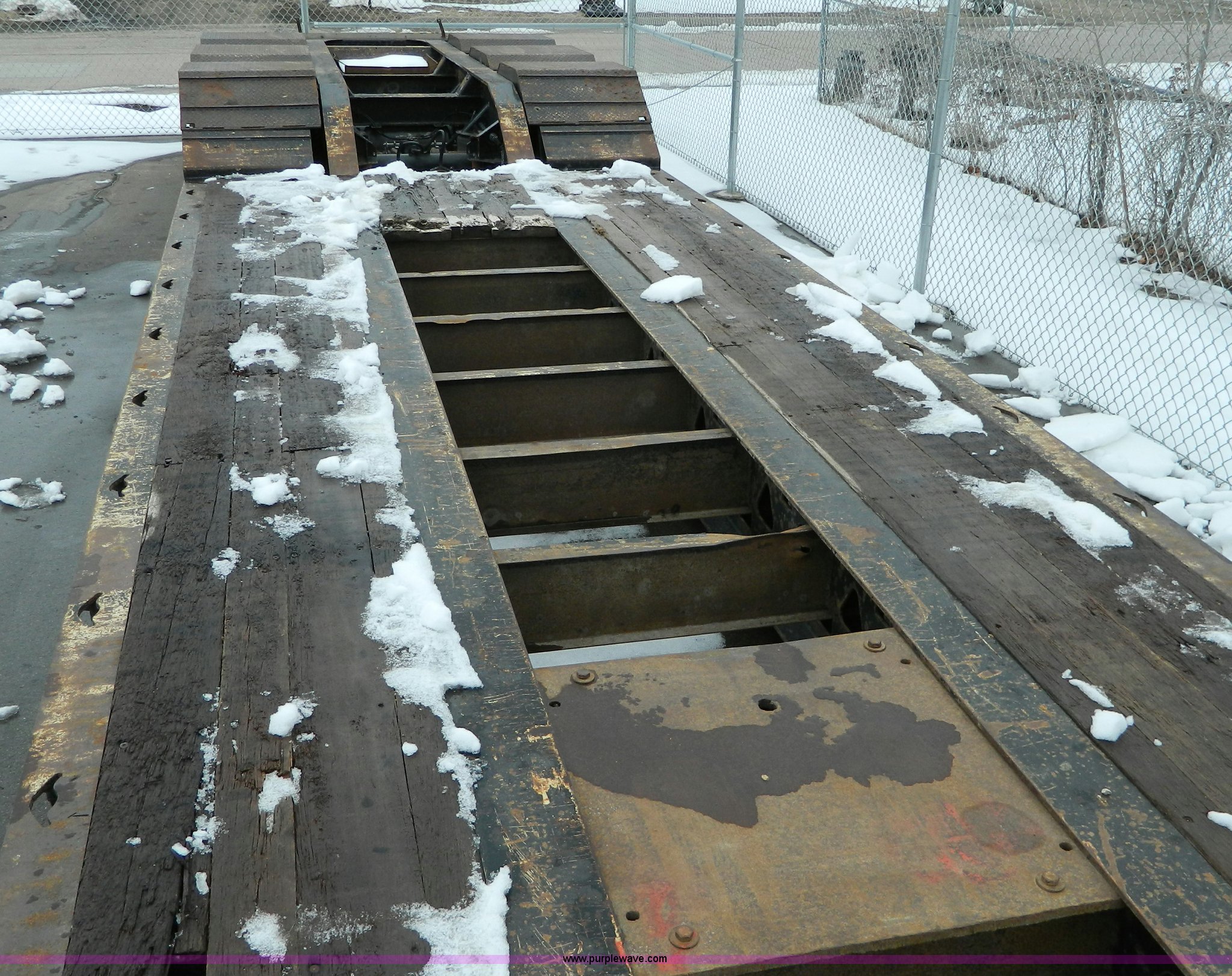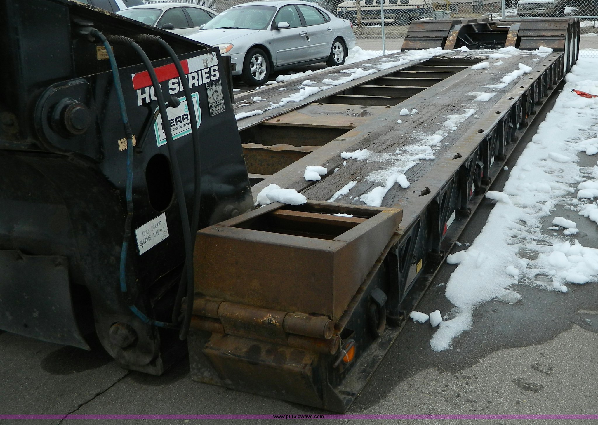 Purple Wave is selling a used Equip. Trailer in Kansas. This item is a 2002 Trail King TK110HDG-483 triple axle lowboy trailer with the following: 24'L x 102"W main deck, 12'L upper deck, 10'L neck, 2'L x 20"W folding ramps, 12"W side folding extensions, 10,000 lbs operating capacity, Removable gooseneck, Dump valve, Treated plate wheel covers, Parker hydraulic fittings, D-ring tie downs, Recently replaced brakes, 255/70R22.5 tires, KDOT ID 778-2011