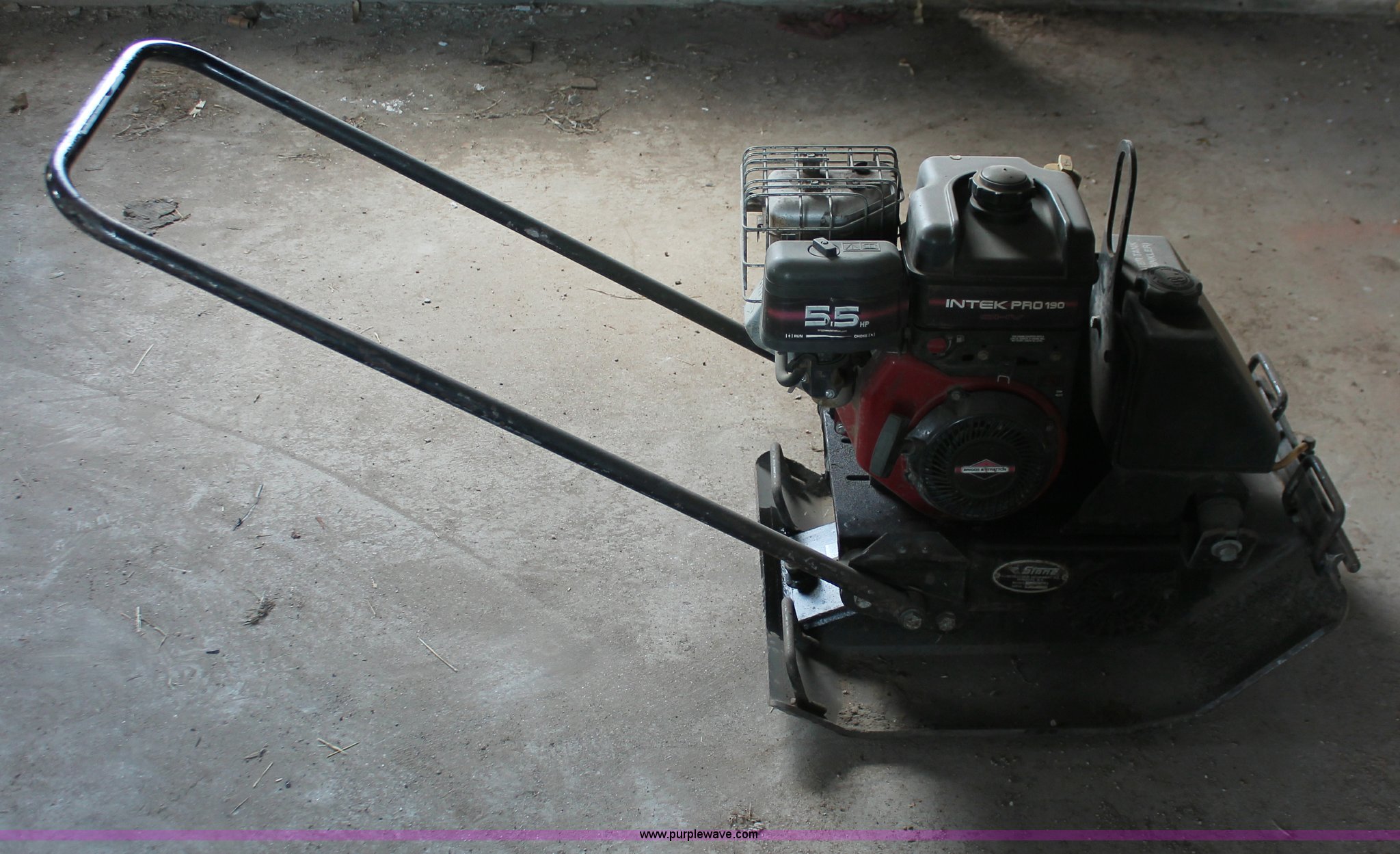 Purple Wave is selling a used Walk Behind Compactor in Kansas. This item is a 2000 Stone S38A vibratory plate compactor with the following: Briggs & Stratton 5.5 HP gas engine, Serial 2900080, KDOT ID 476-6020