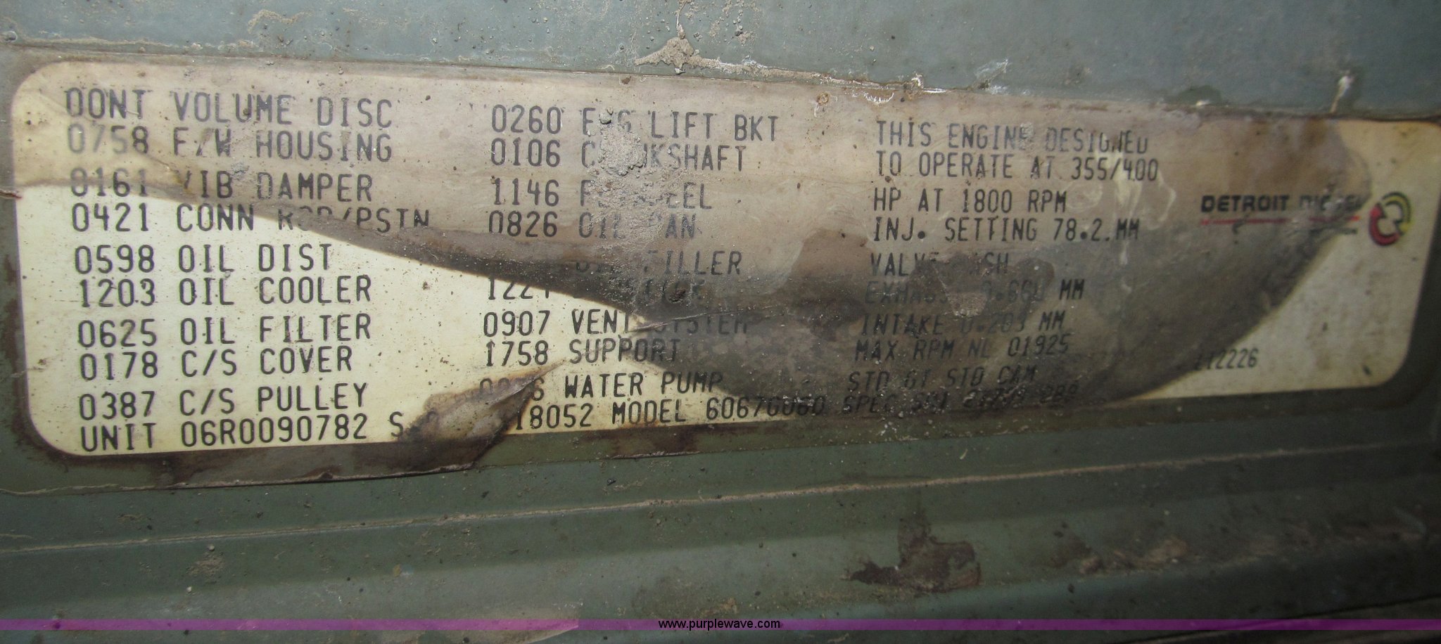 Purple Wave is selling a used Grain Truck in Nebraska. This item is a 1993 Freightliner FLD120 silage truck with the following: 278,548 miles on odometer, Detroit 60 12.7L L6 diesel engine, 355/400 HP, Rockwell RM/RMX nine speed manual transmission, Twin screw, Differential lock, AC and heat, Panasonic AM/FM/cassette/weatherband, Air suspension seat, Passenger daylight door, Exterior visor, Plastic bumper, Dual 120 gallon fuel tanks, Aulick 2467 box, Side boards and end cap extensions included, Stored in box, Used to haul grain and silage, Hydraulic end gate, Three stage dual rams, Single rear exhaust stack, Chelsea Paker PTO, Air and spring suspension, Air brakes, Jake brake, Chrome hub caps and nut covers, 262" wheelbase, 11R22.5 tires, GVWR 52,000 lbs, FAWR 12,000 lbs, IAWR 20,000 lbs, RAWR 20,000 lbs, Highway safety triangles, Radiator replaced in July 2012, Clutch need adjusted, Grille damage, Cracked windshield