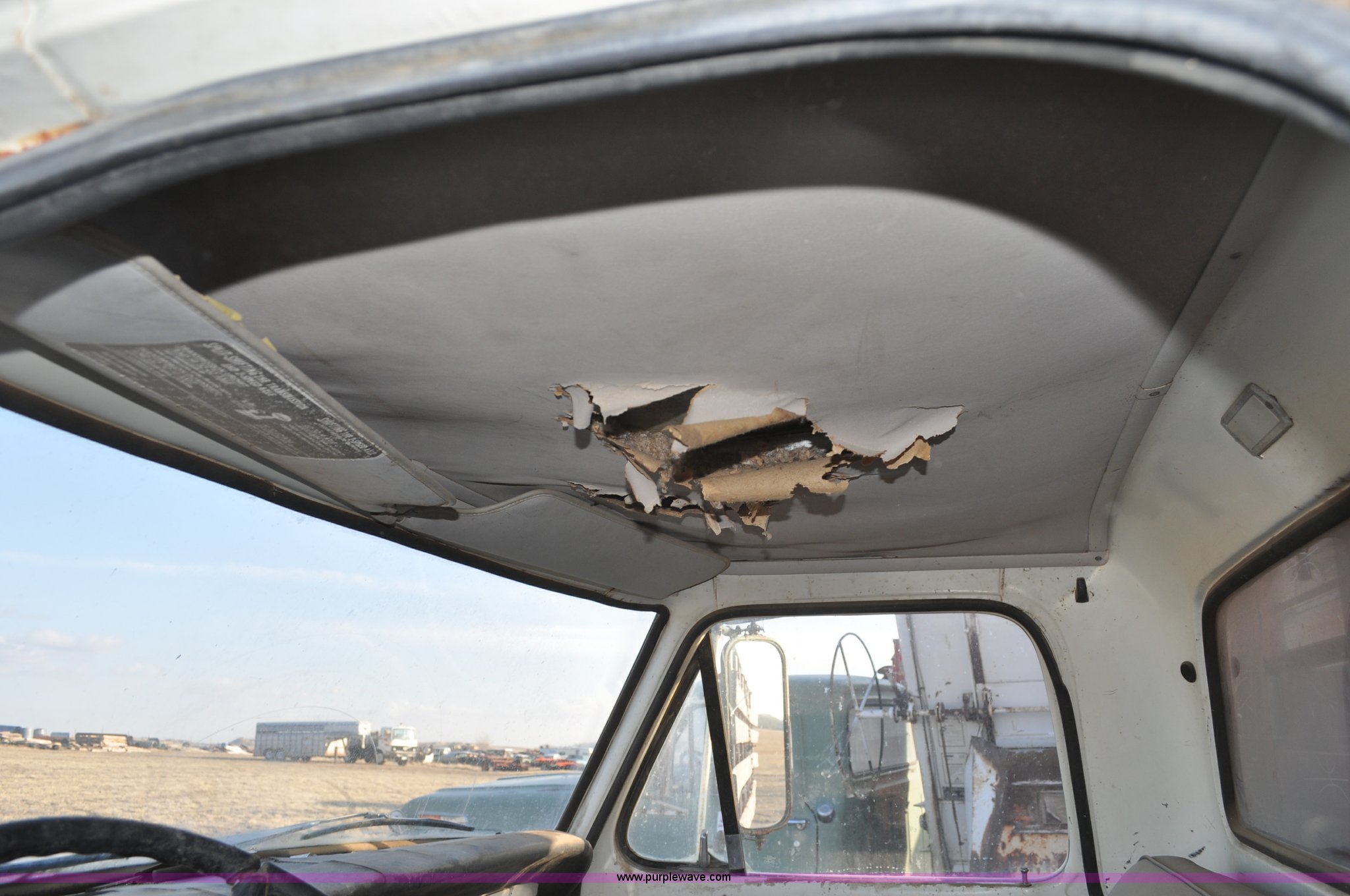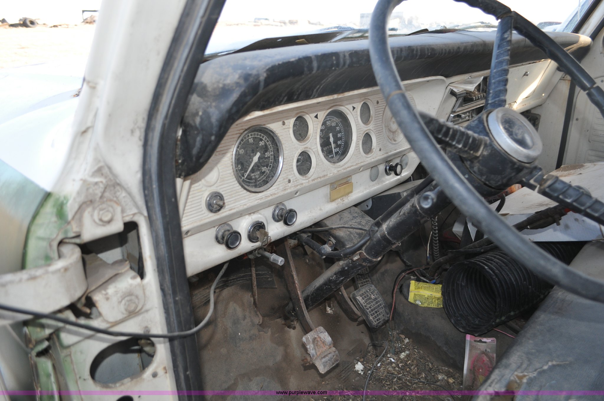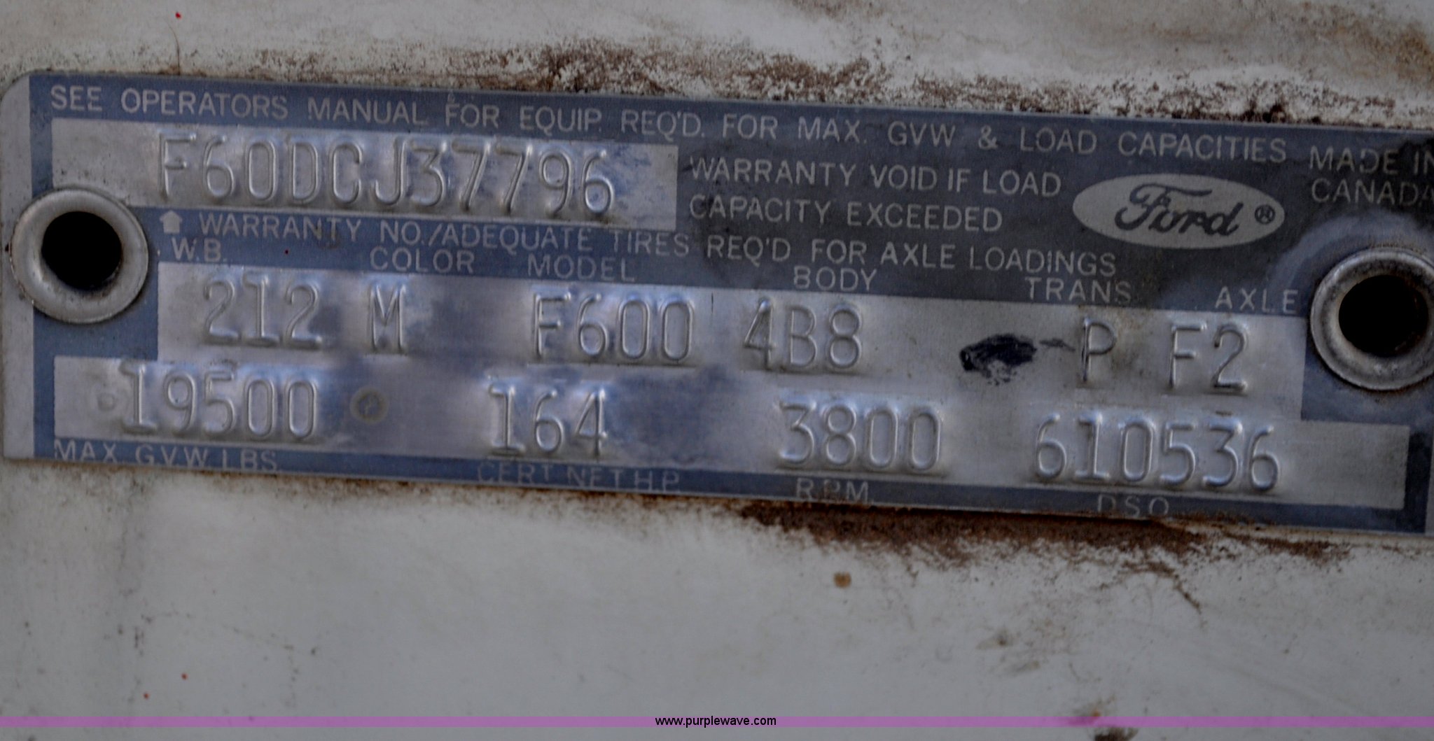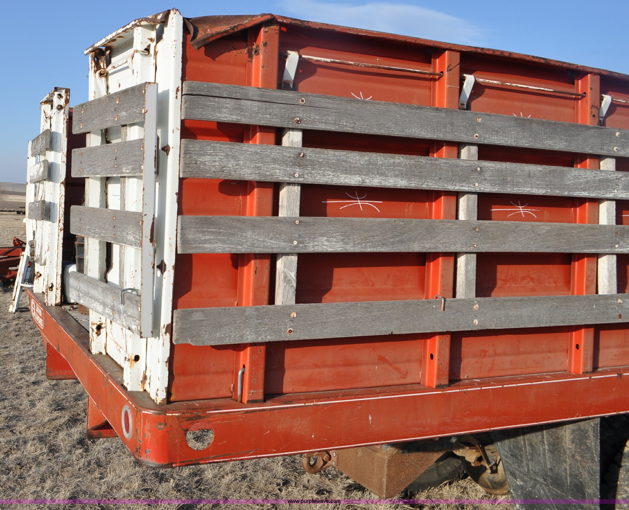 Purple Wave is selling a used Grain Truck in Nebraska. This item is a 1970 Ford F600 grain truck with the following: 80,178 miles on odometer, Ford 330 CID V8 gas engine, Manual transmission, Heat, Manual windows and locks, Omaha Standard grain box, 18'L x 94"W, 40"H sides, Stock racks, Hoist, Wood floor, Pintle hitch, 9.00-20 tires, No battery, Bent drive shaft, Body damage, GVWR 19,500 lbs, Unknown running condition, No keys